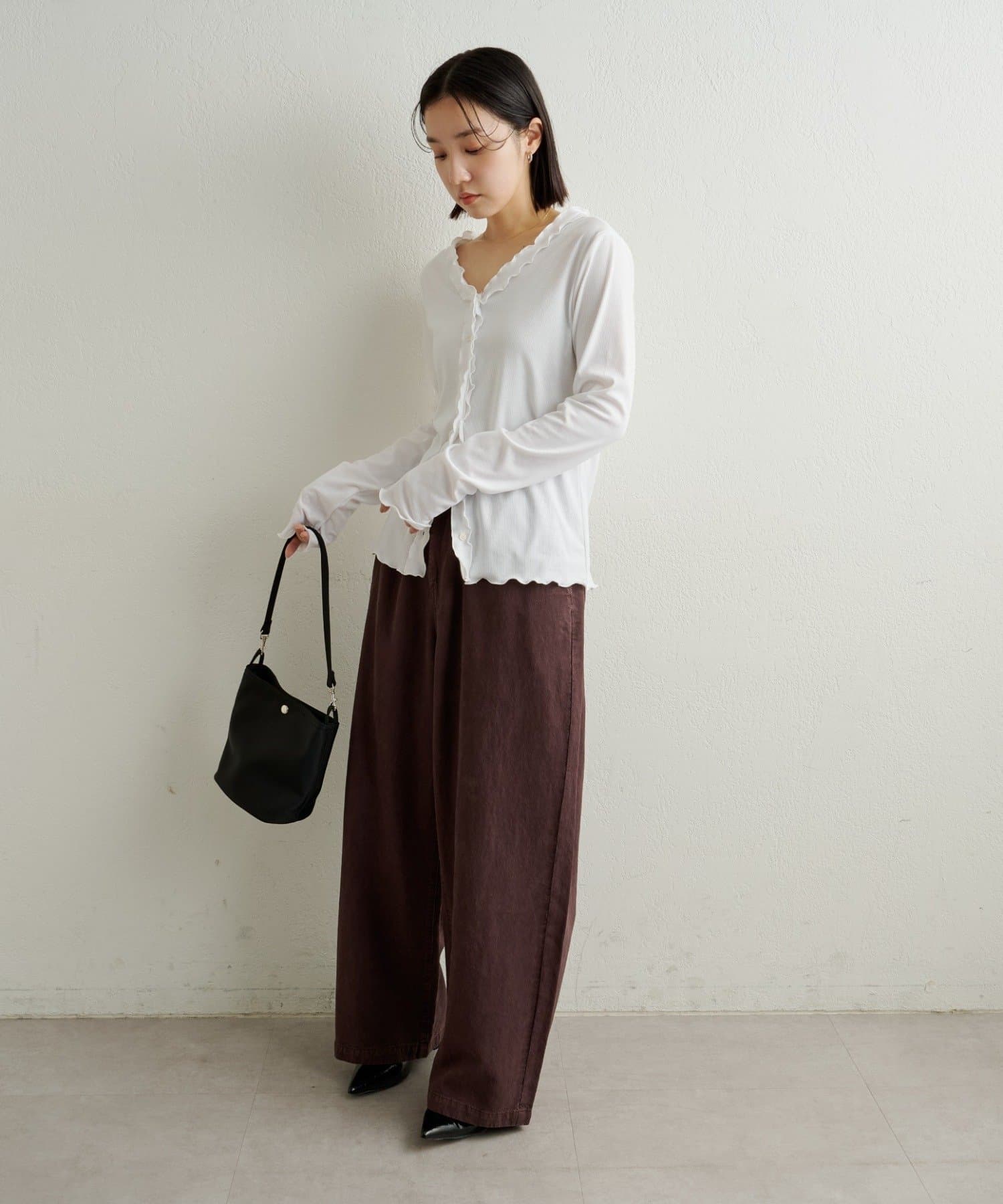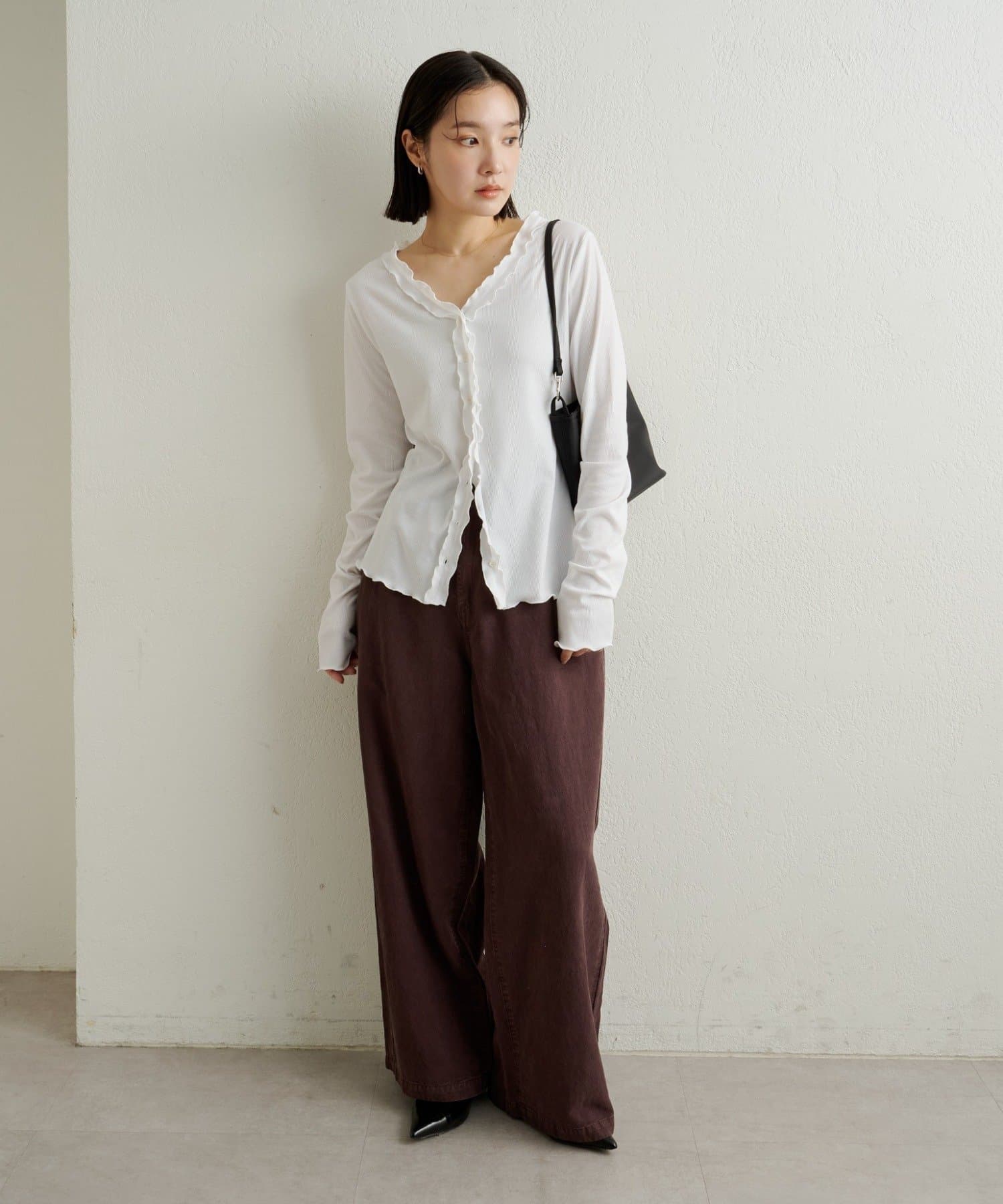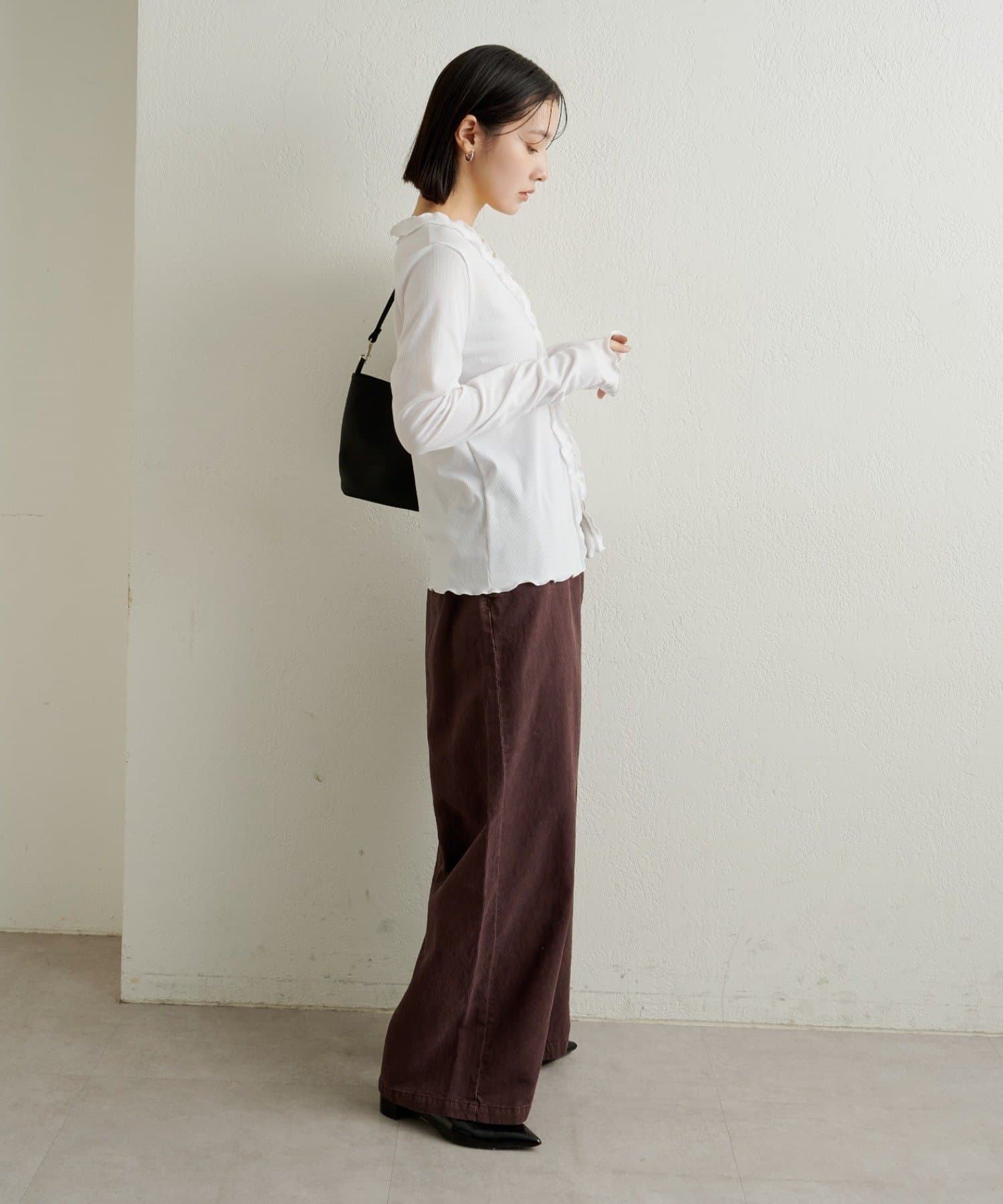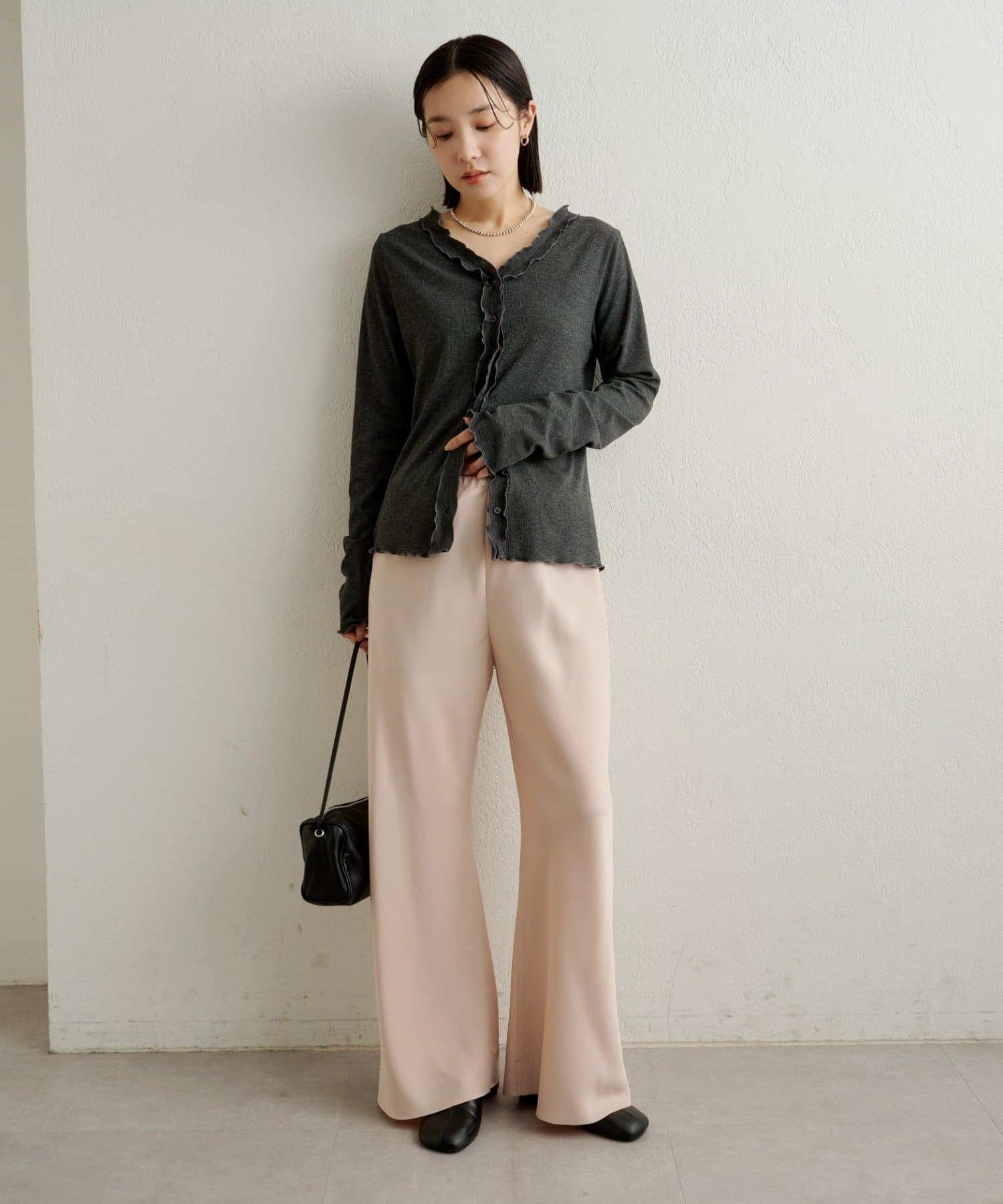 さりげないフリルが大人可愛いフリルリブカーディガン