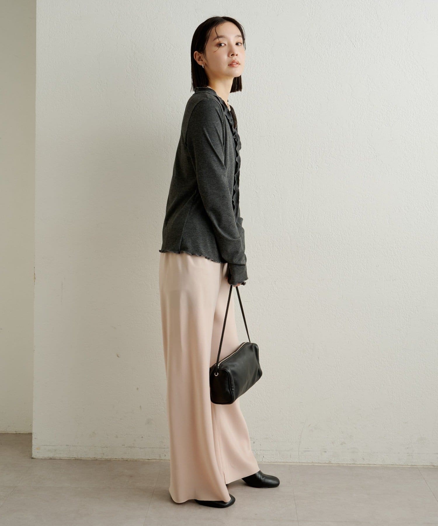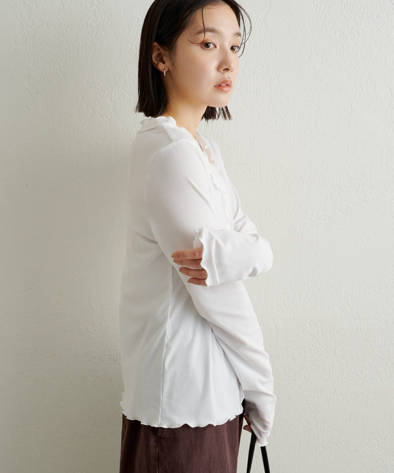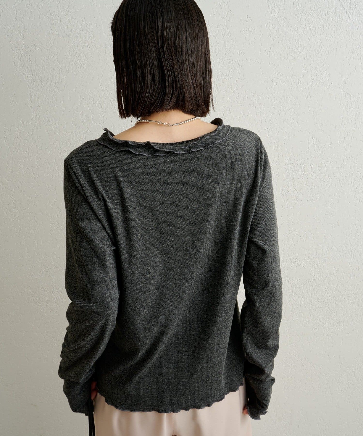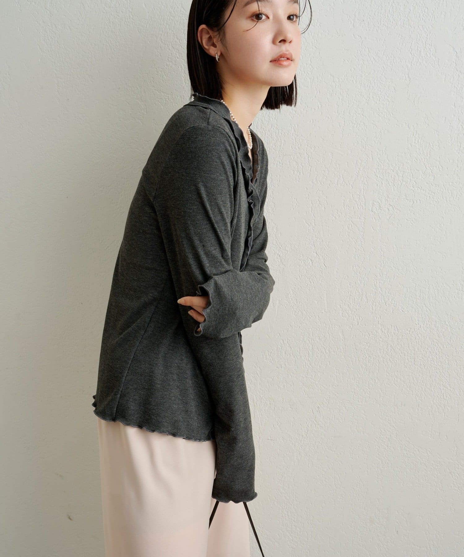 ・リブ素材の身体のラインに沿ったシルエットが華奢見え効果抜群◎