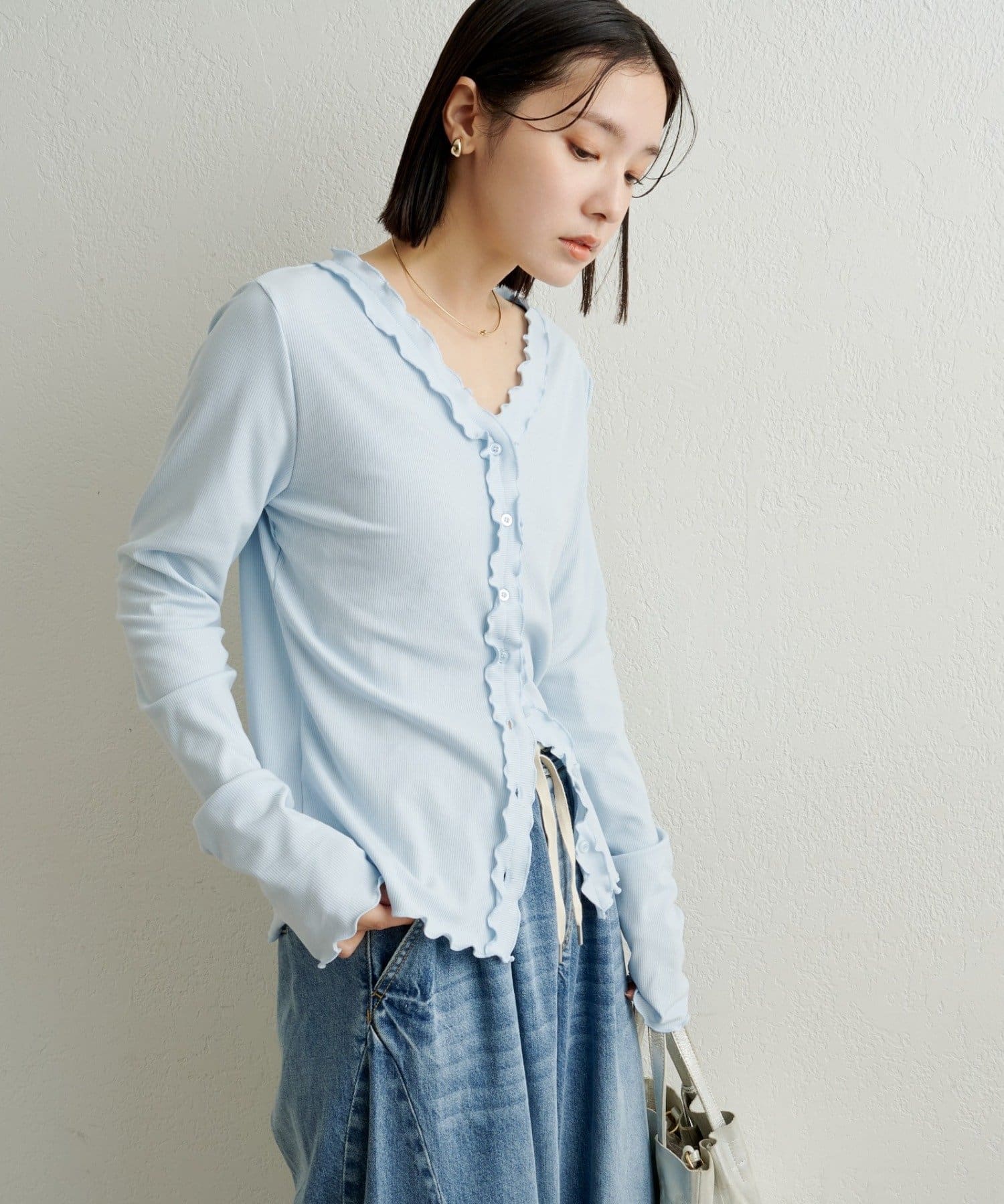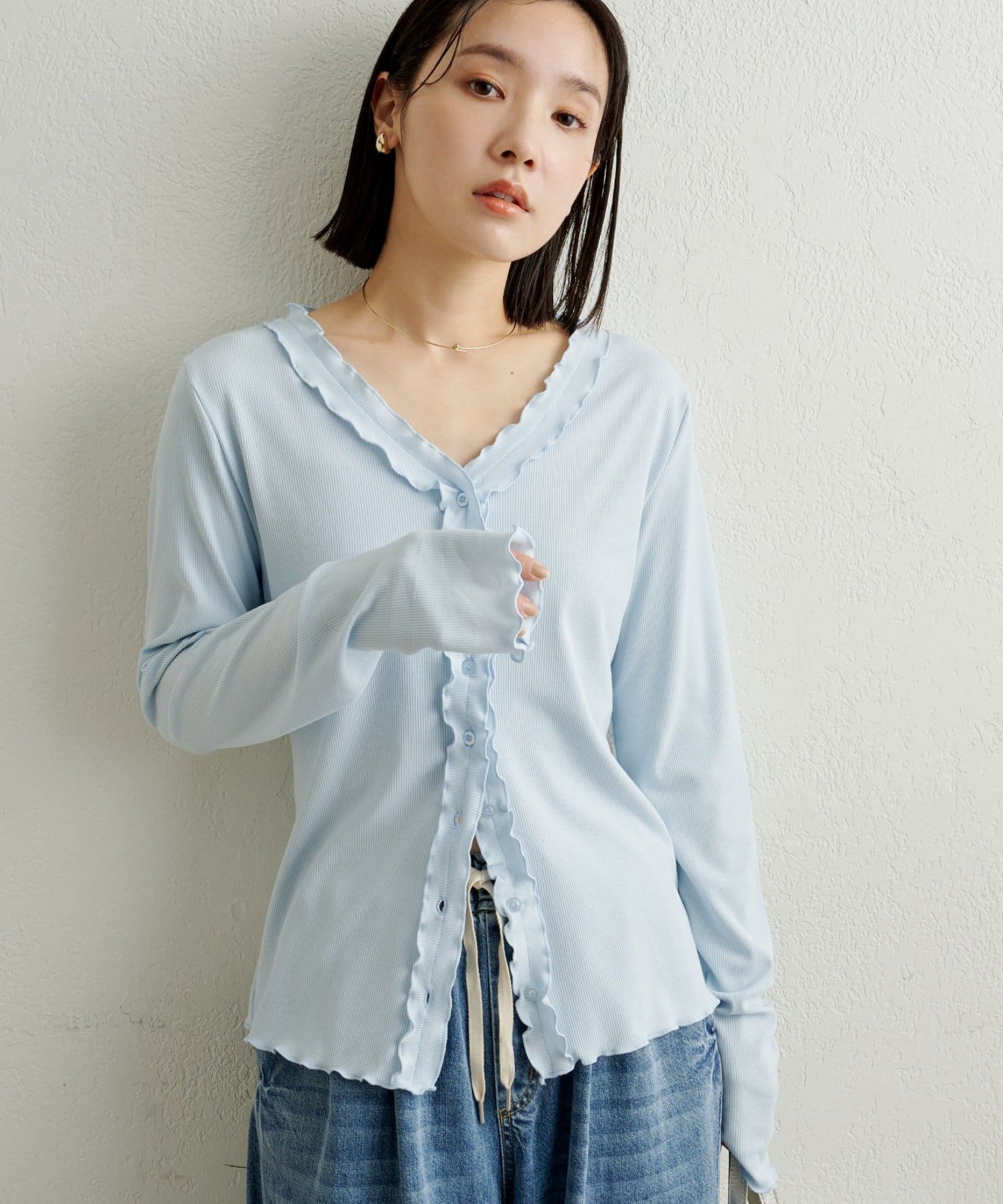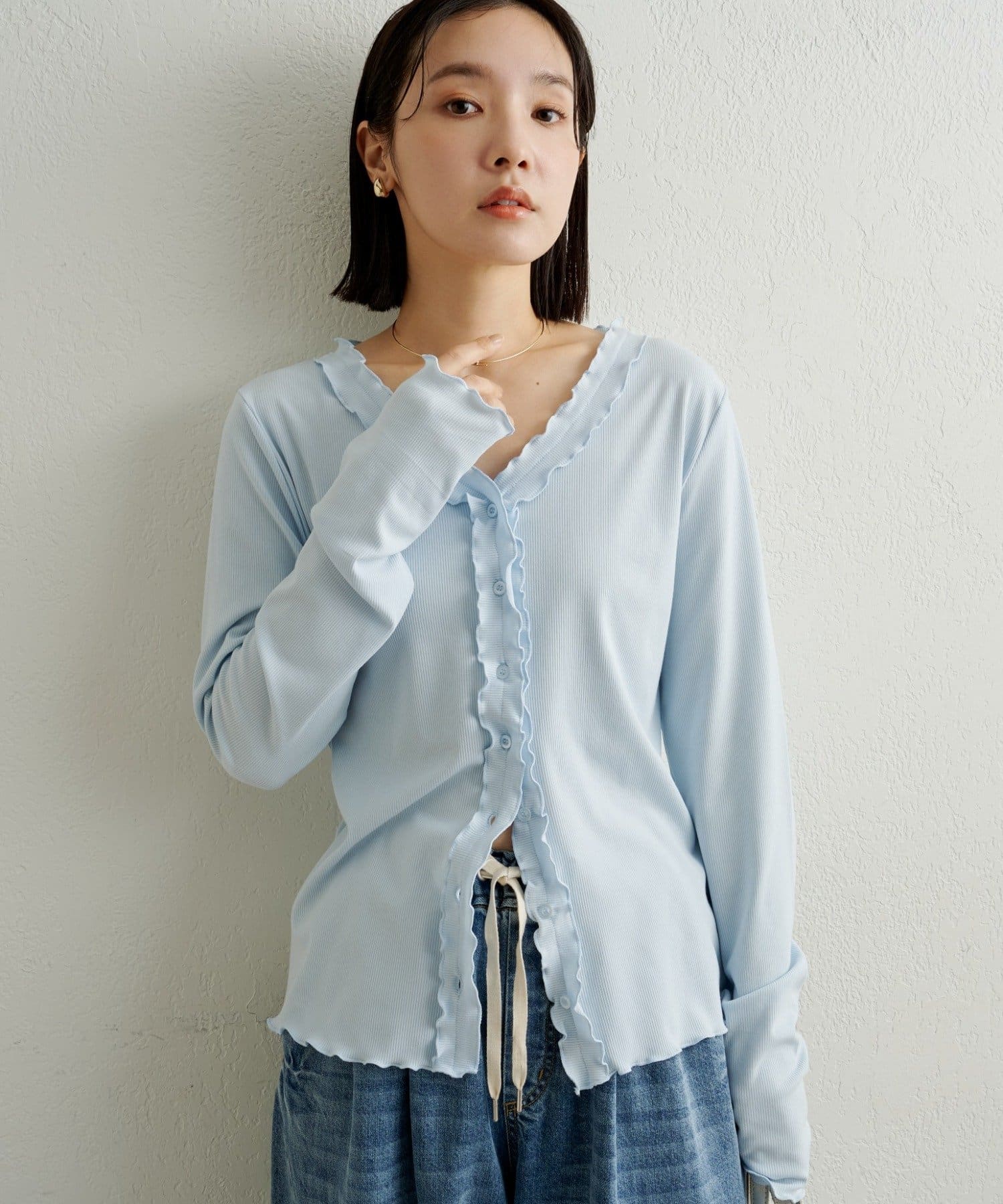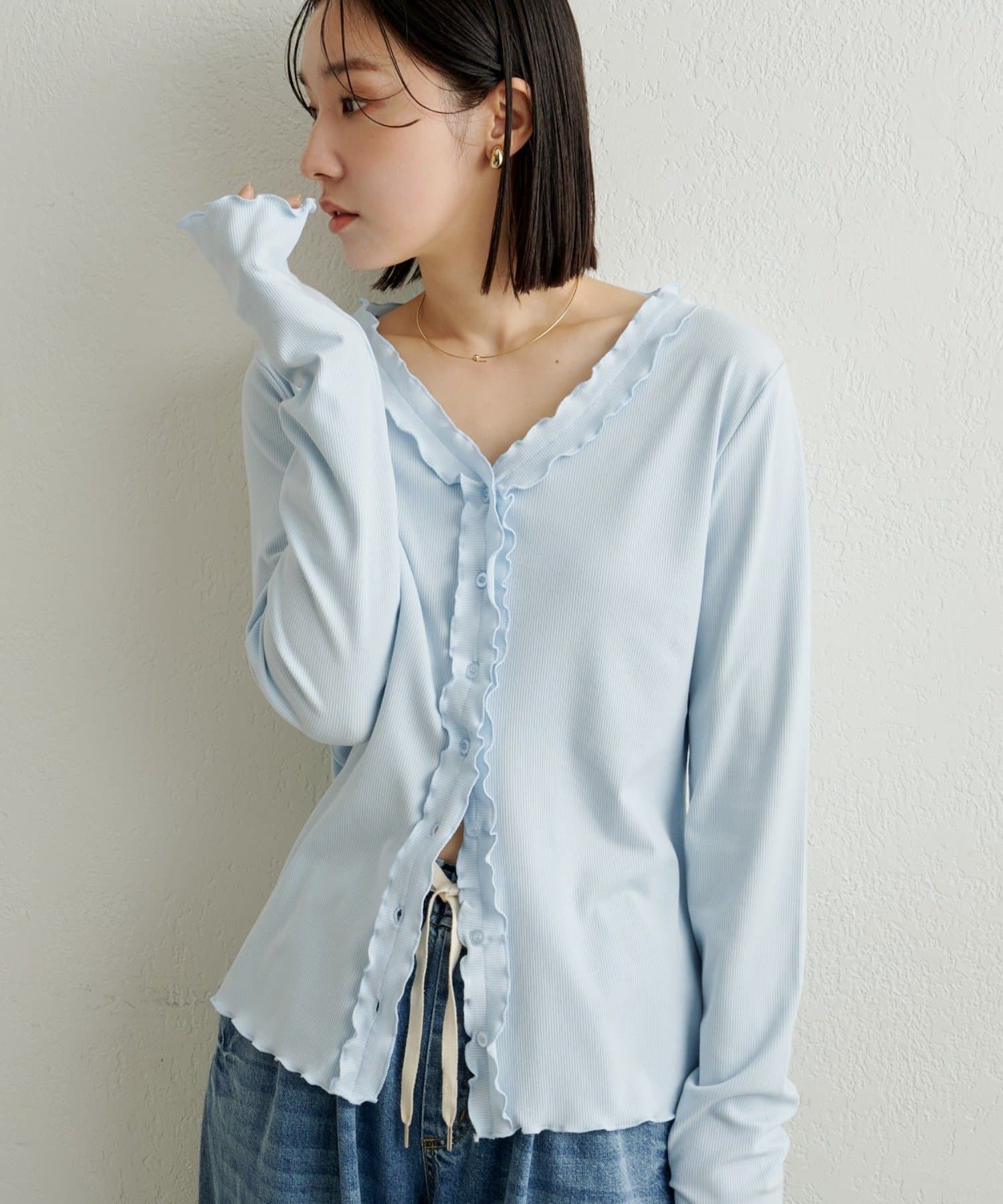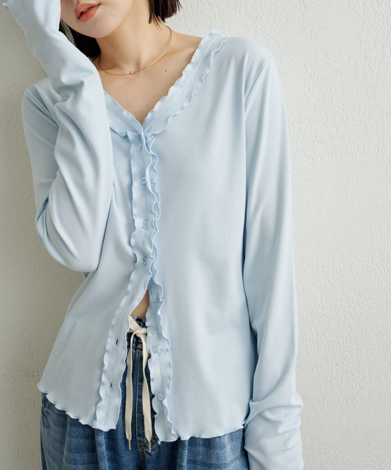 フリルリブカーディガン