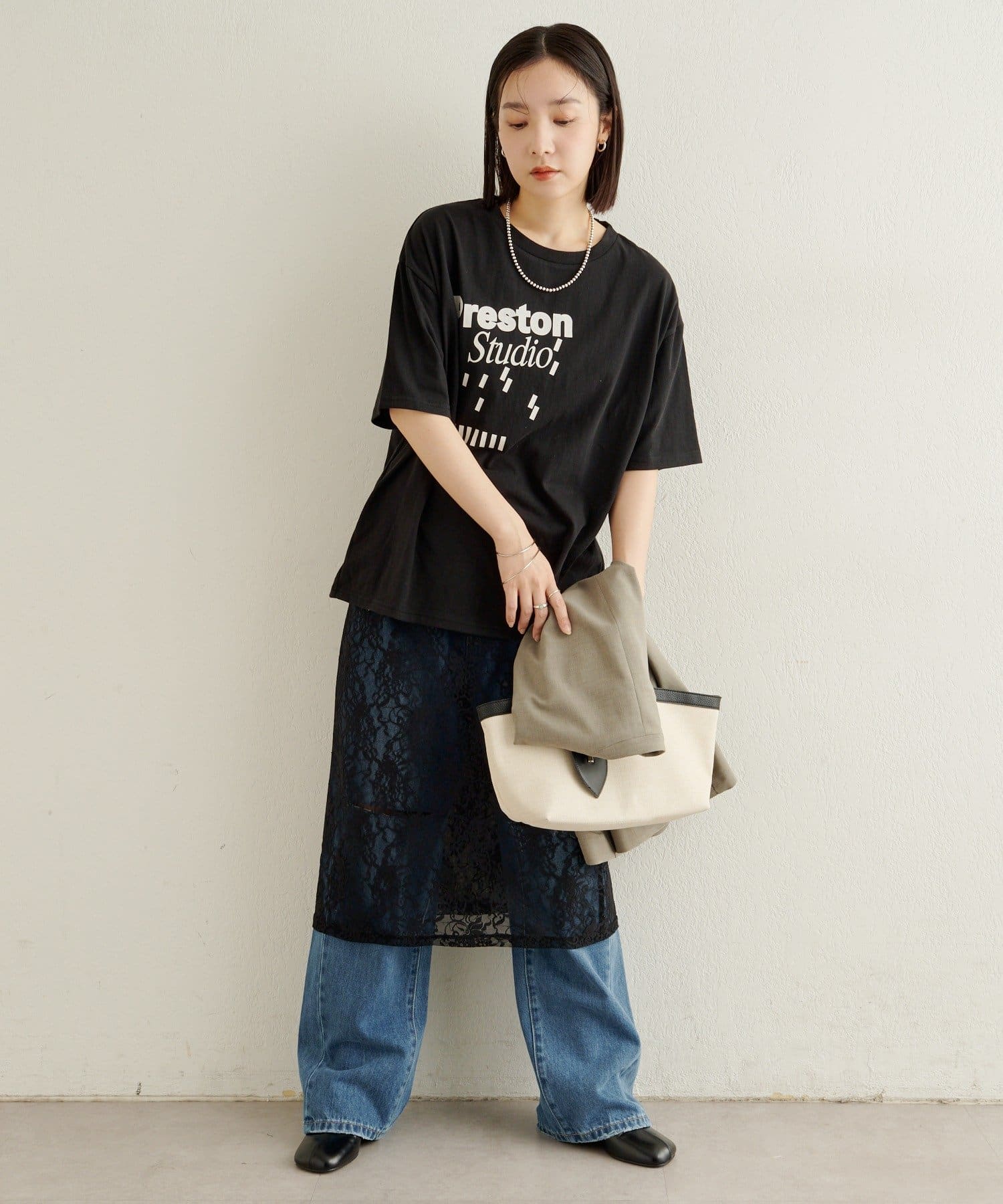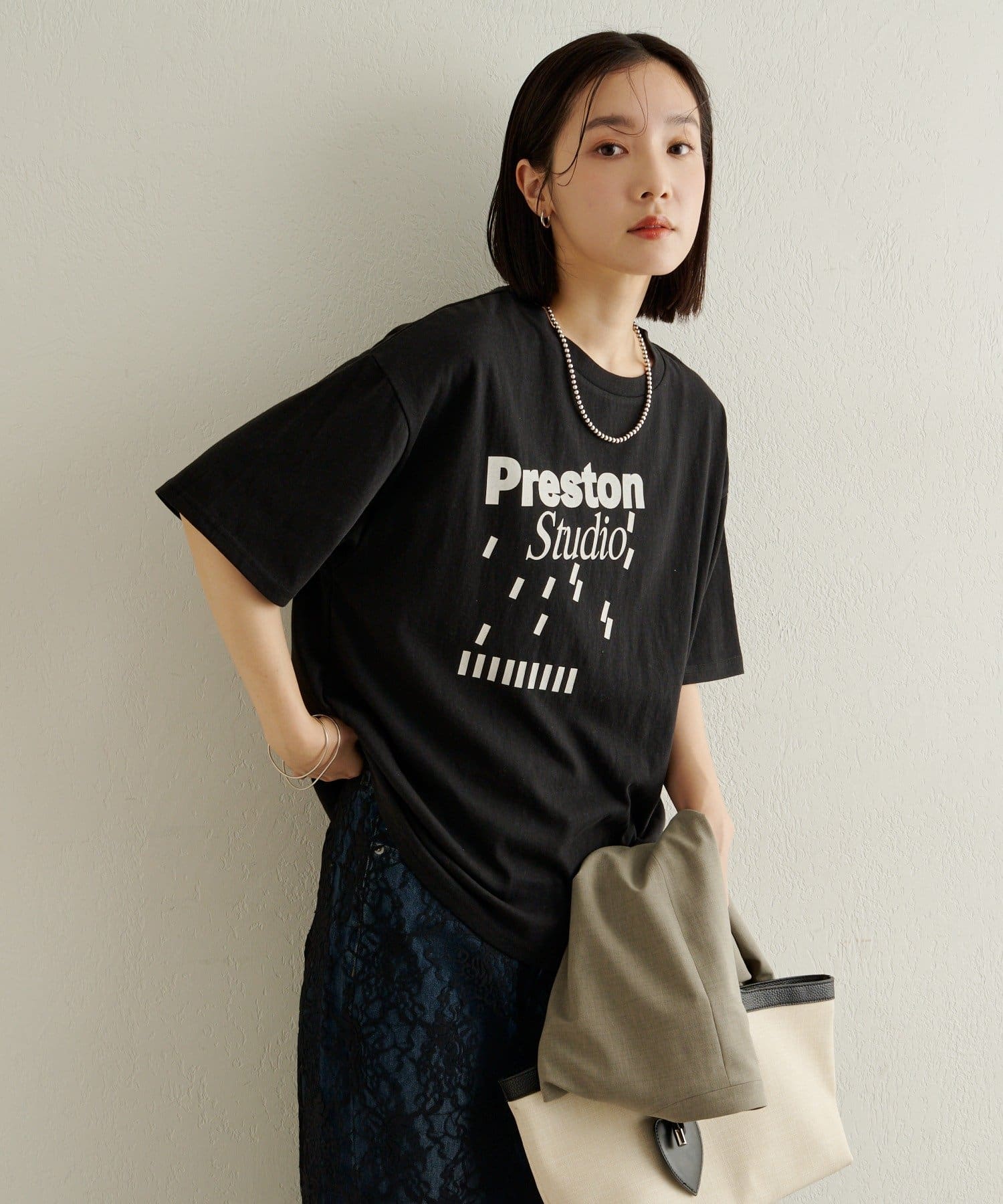 ・いつものスタイリングに程よくラフさを加えてくれるロゴT。