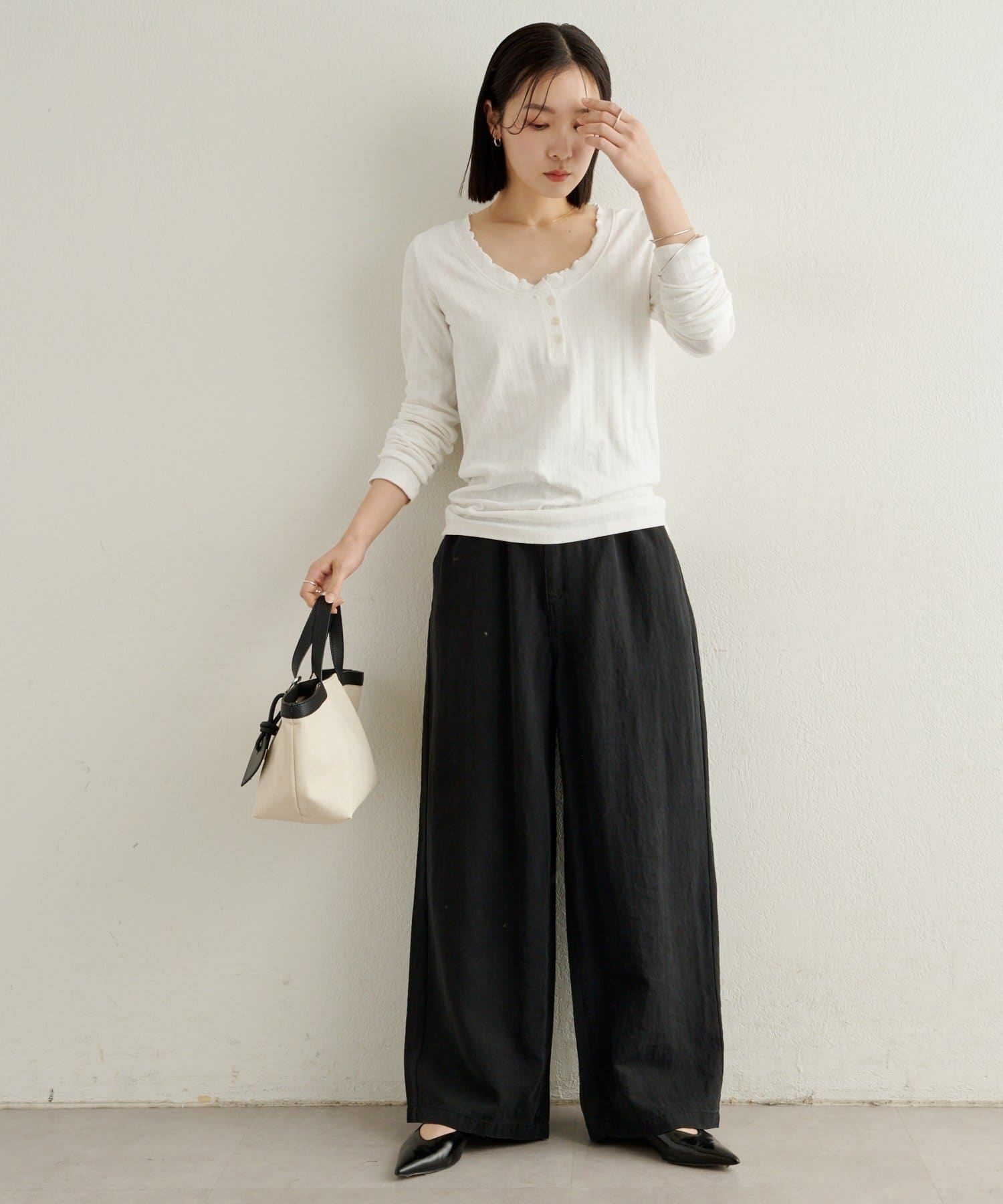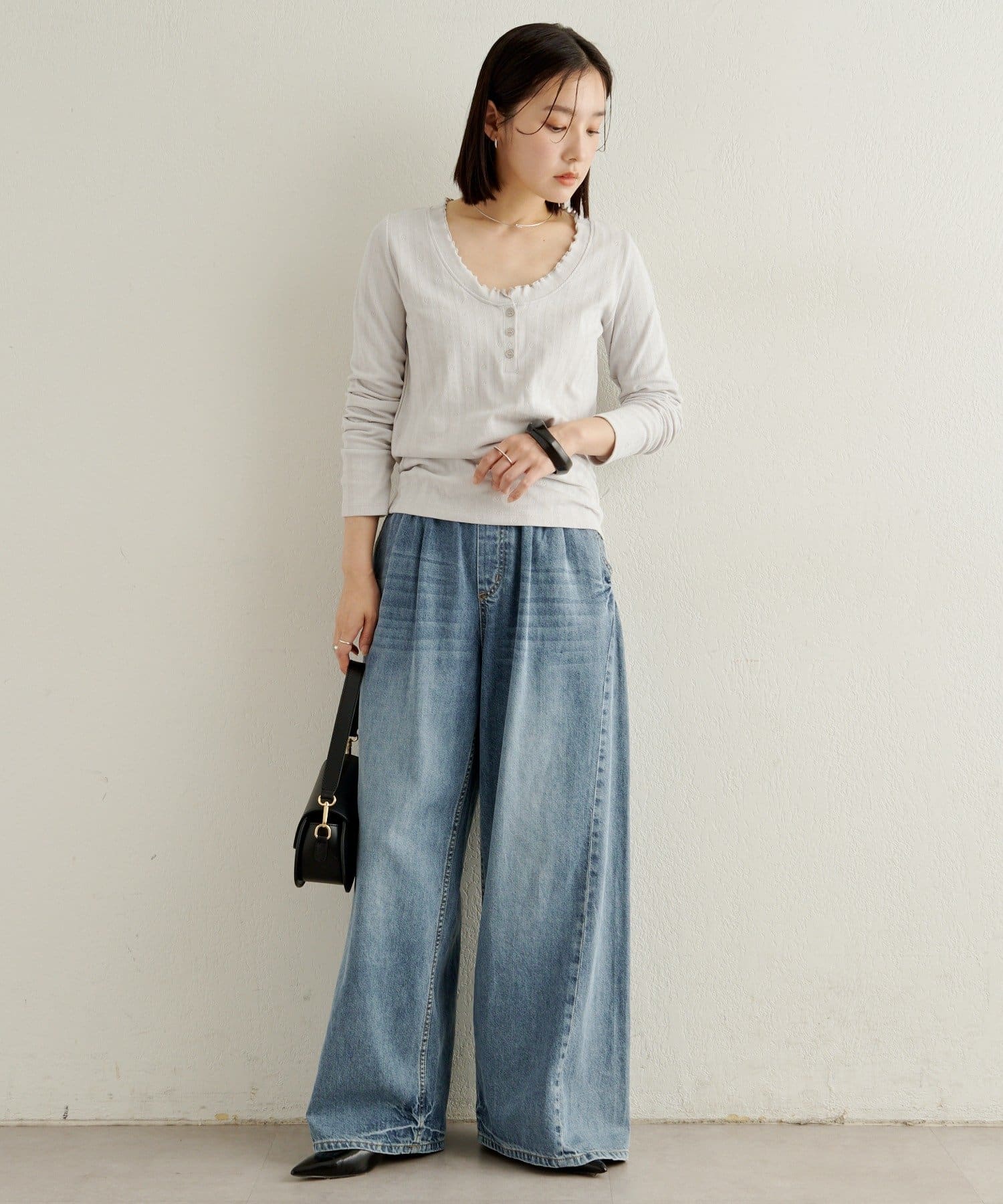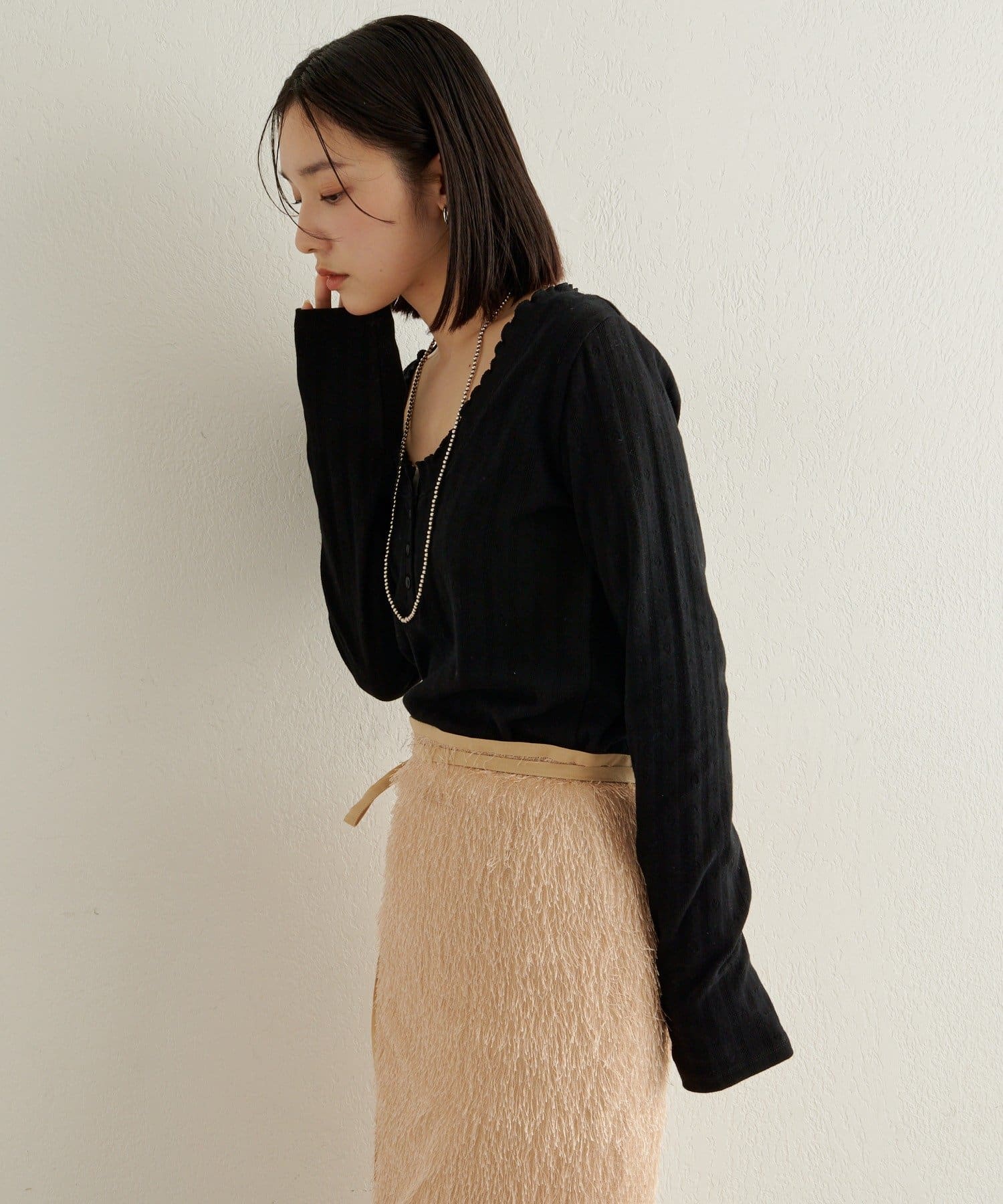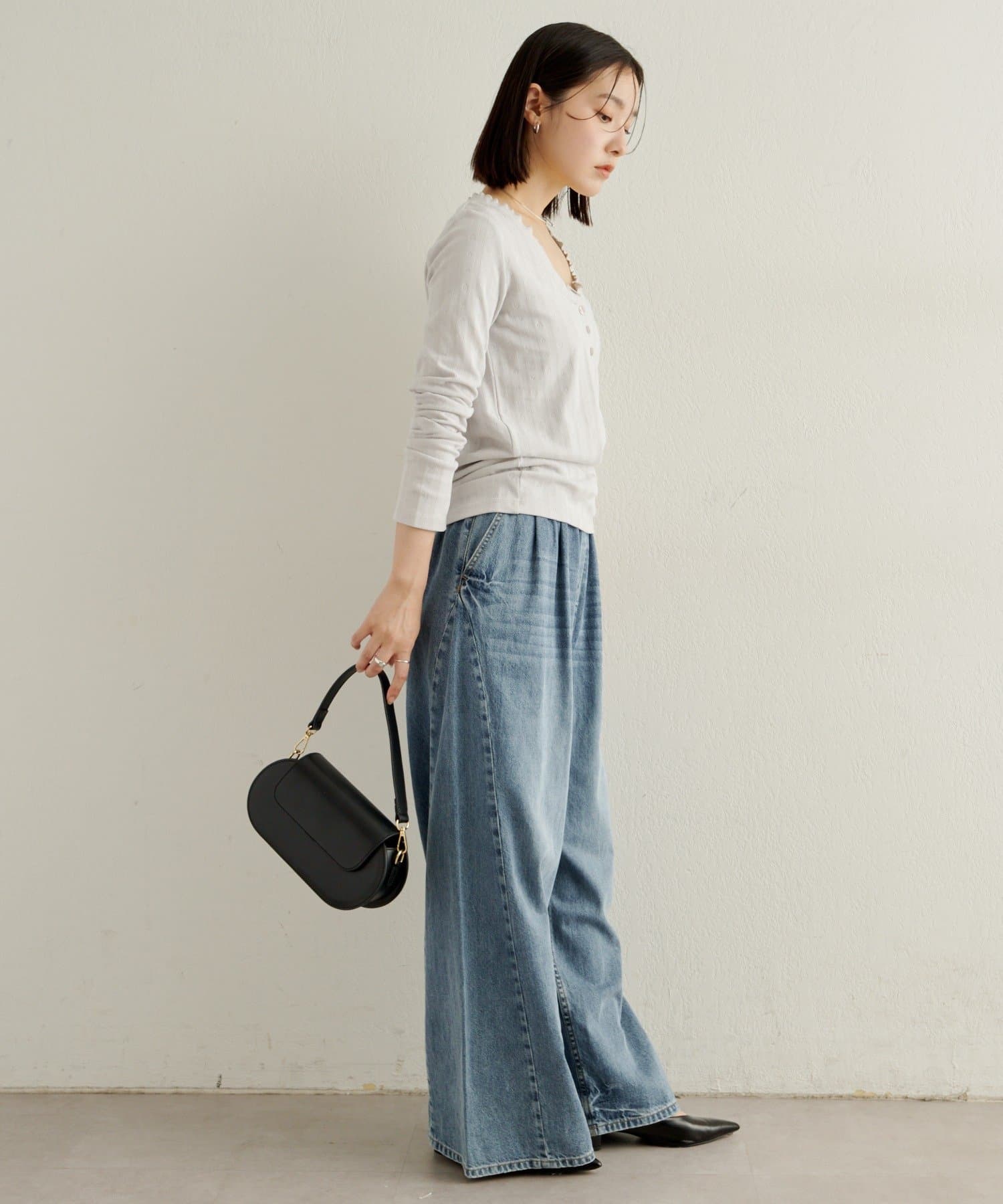 ・首元が広めに開いたUネックがデコルテラインを綺麗に見せてくれ、華奢見えが叶います。