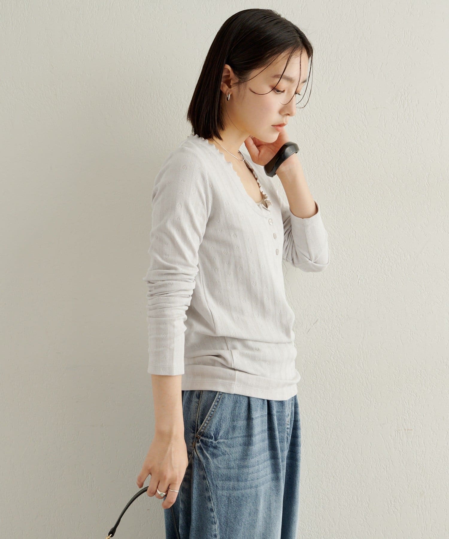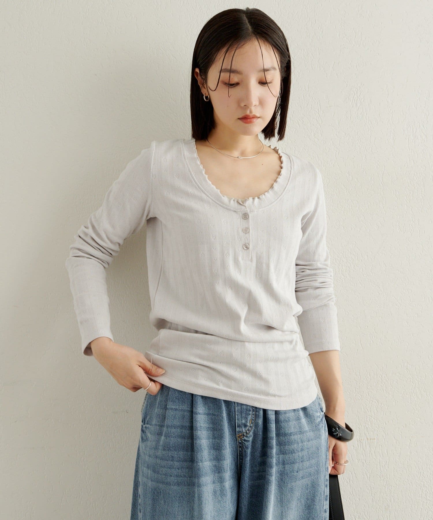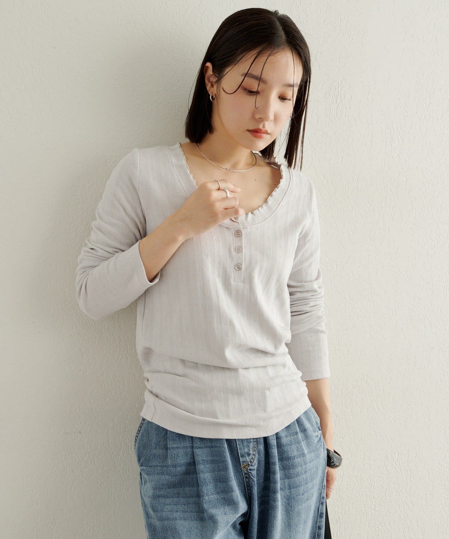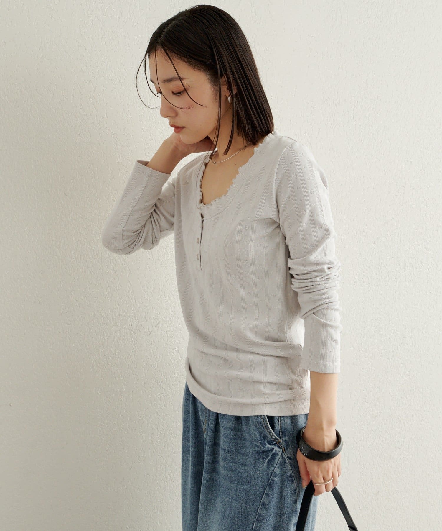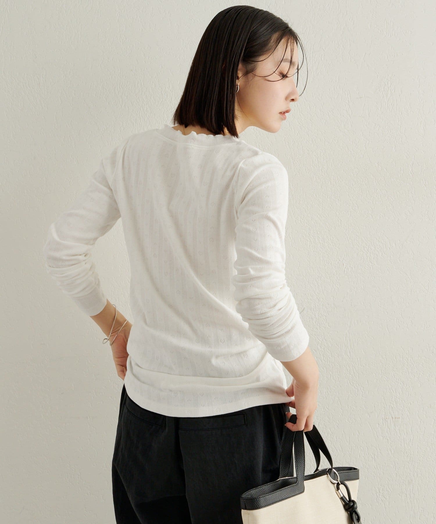 幅広い着こなしが叶うの針抜きロングTシャツ