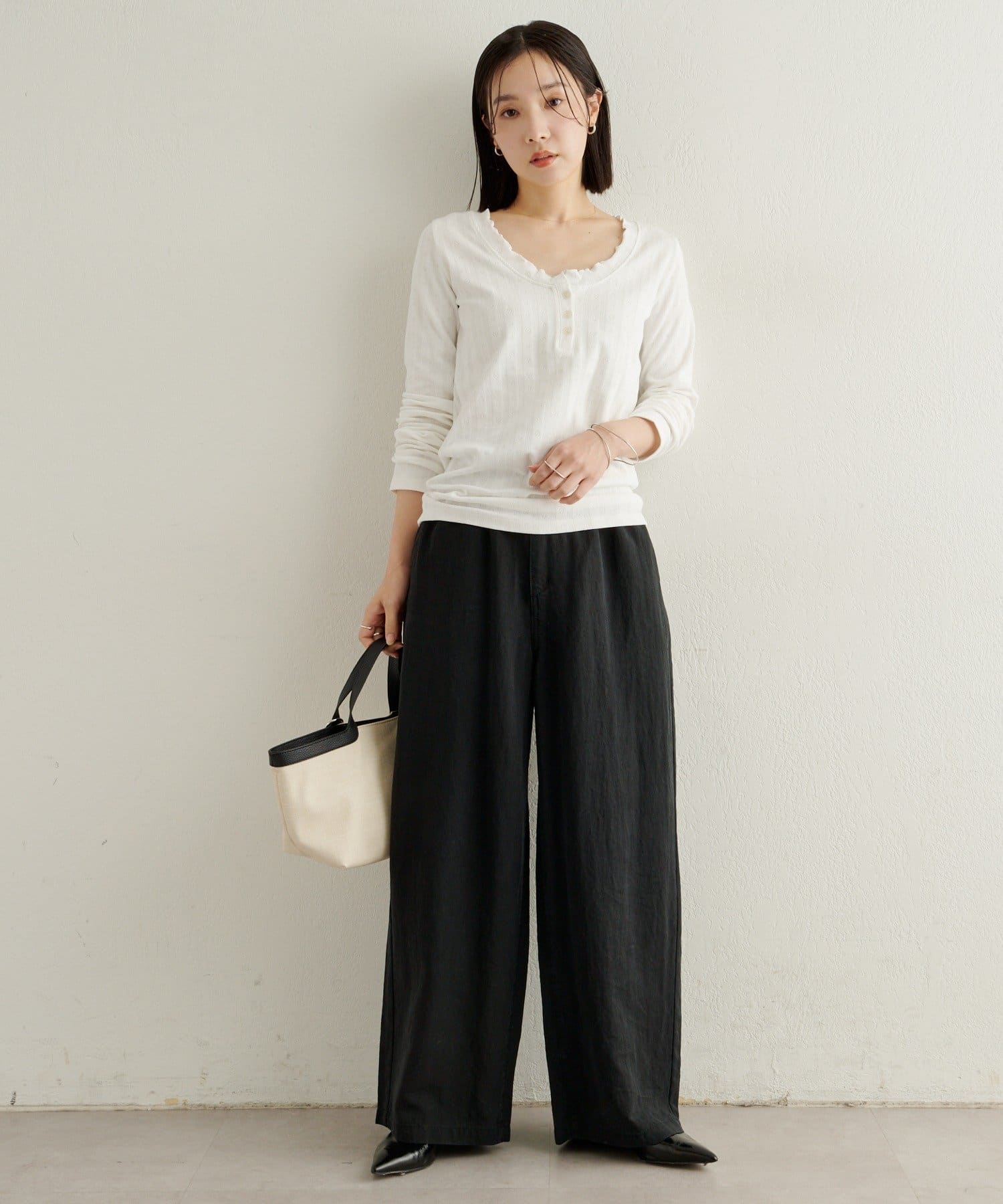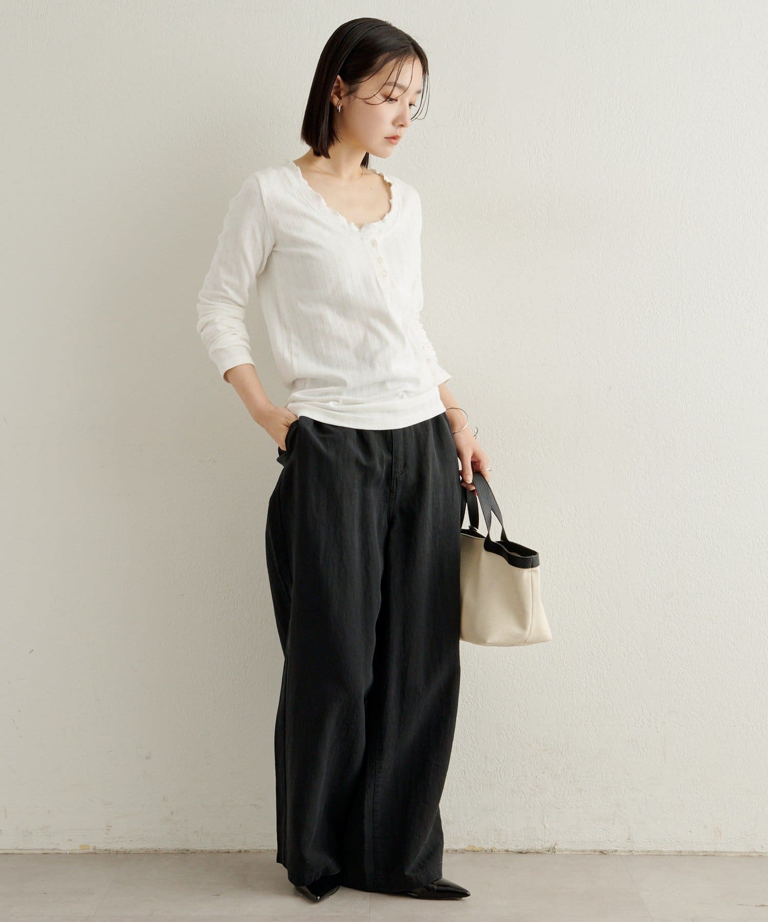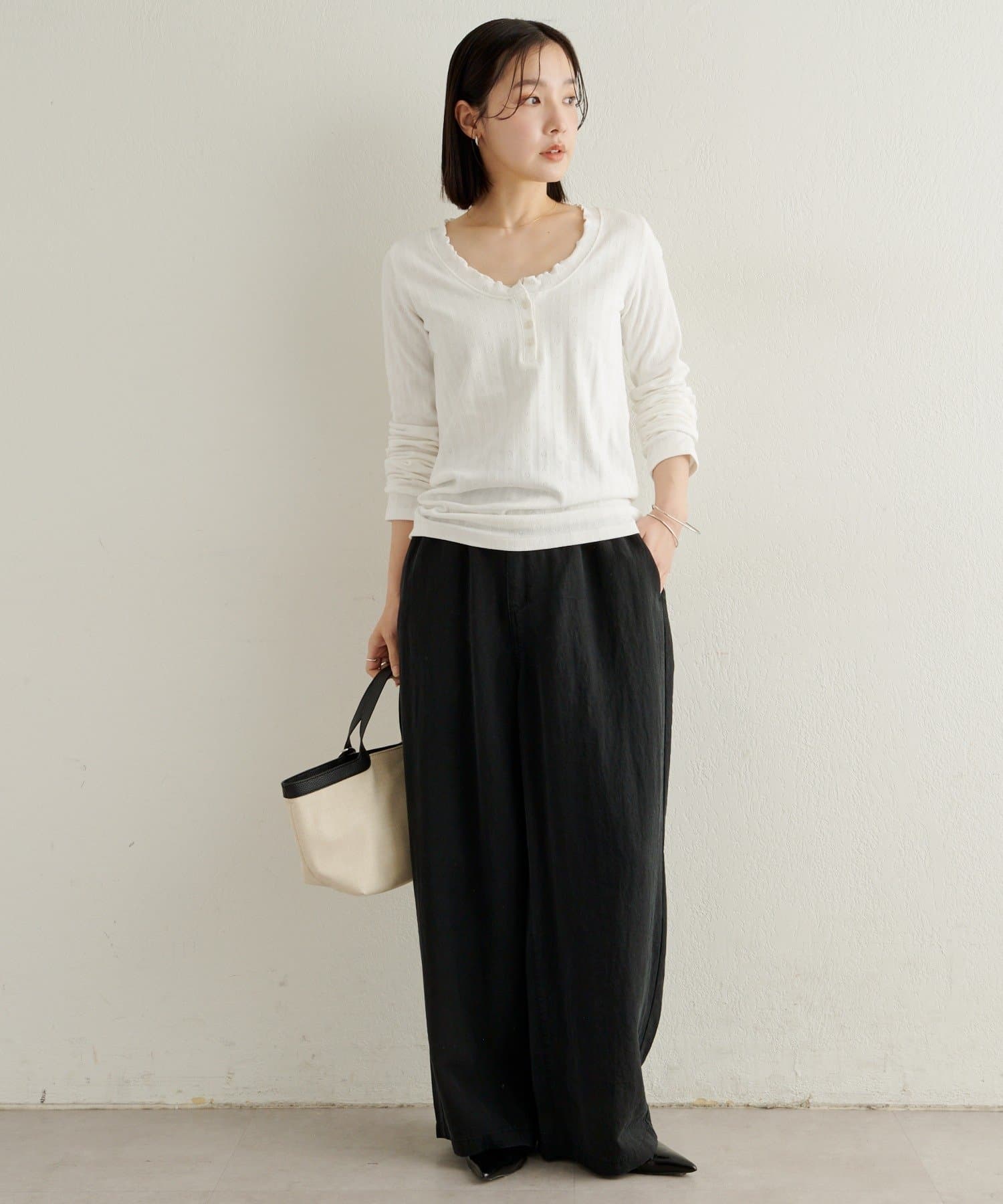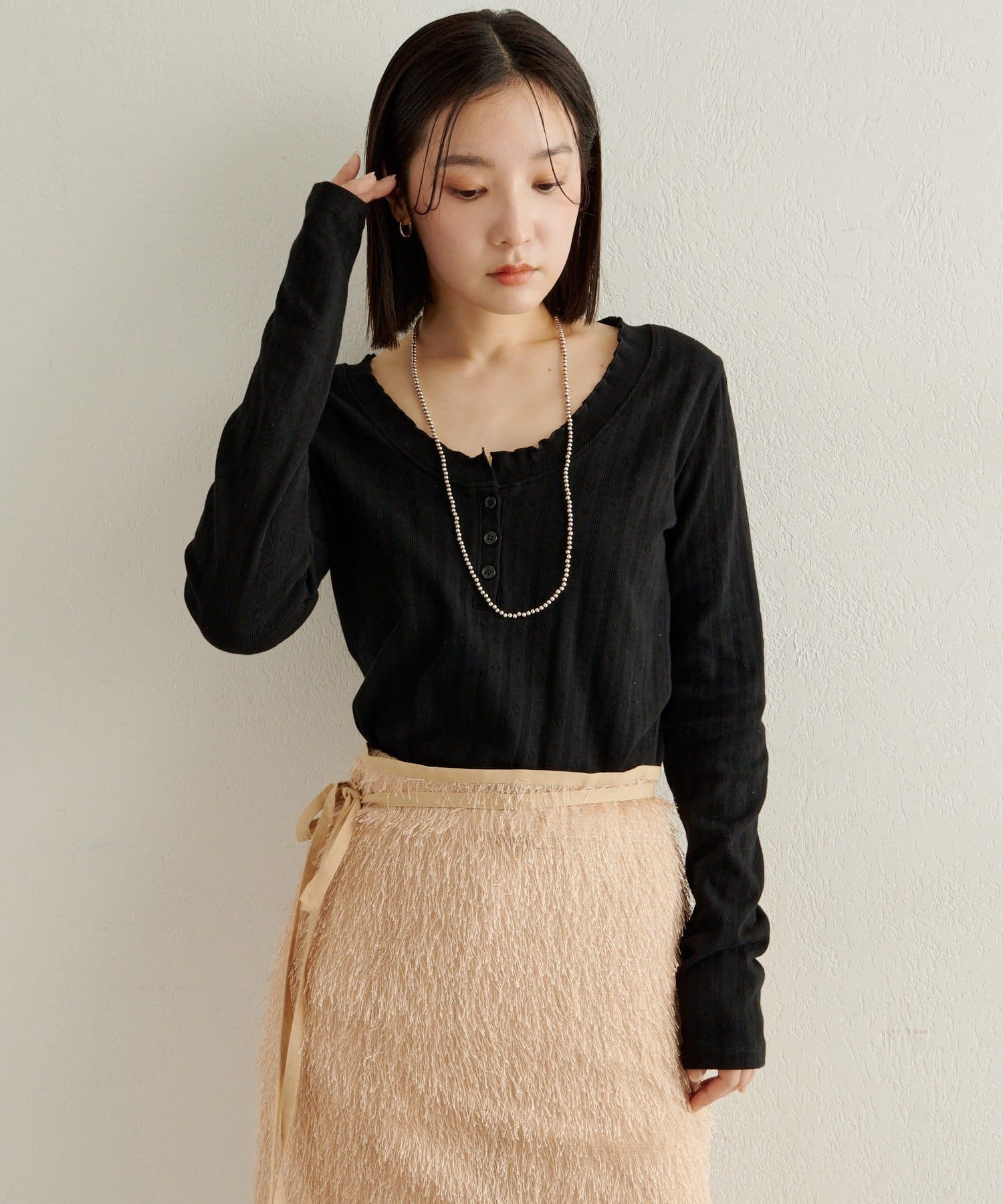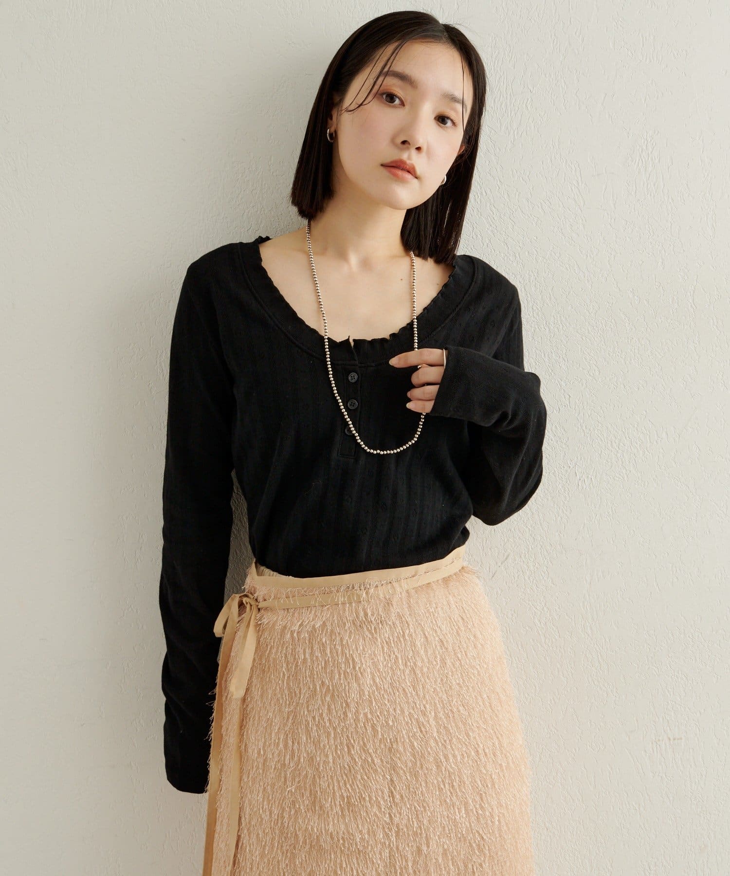 幅広い着こなしが叶うの針抜きロングTシャツ