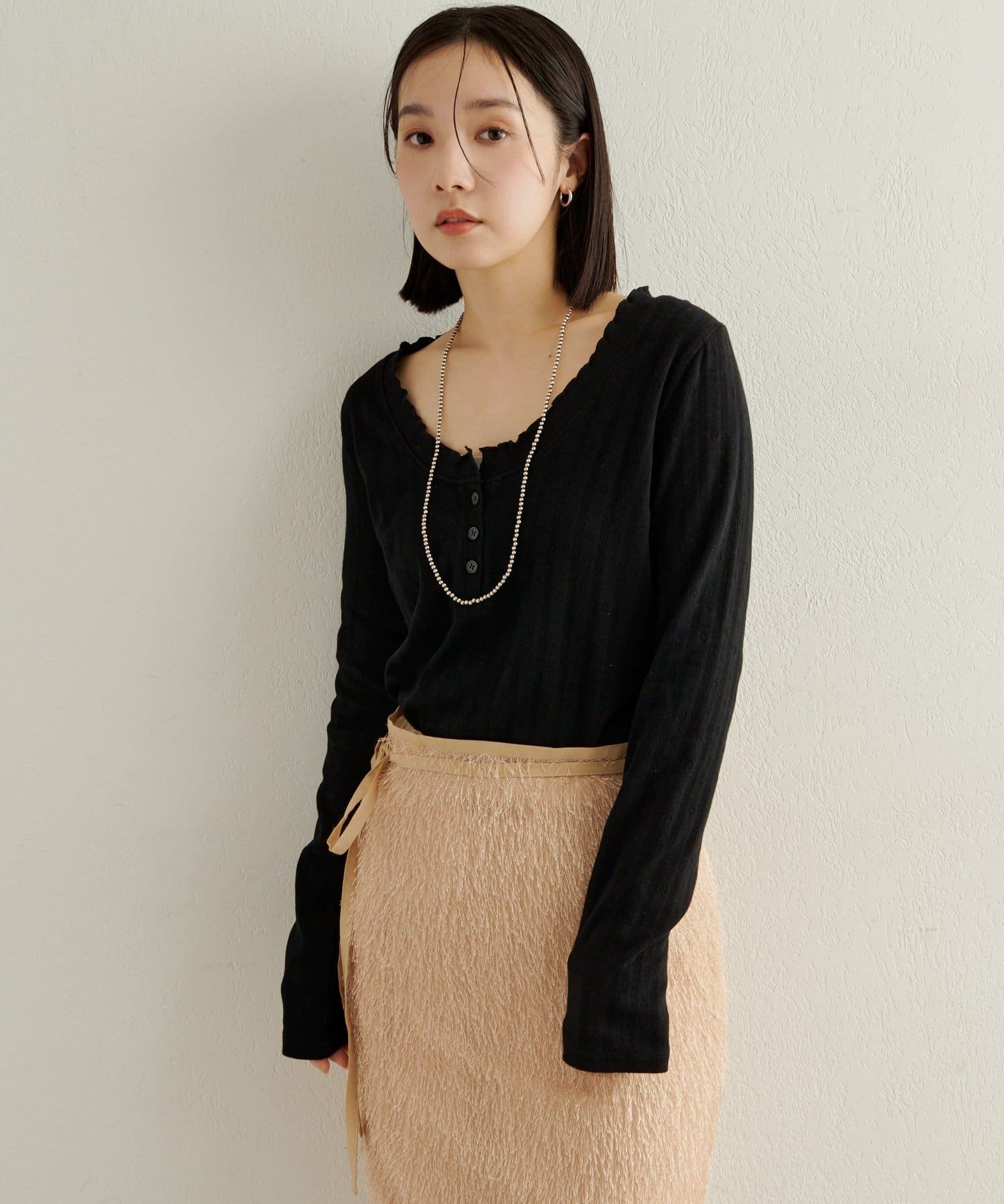 ・シンプルながらも首元のフリルが女性らしさを演出してくれます。