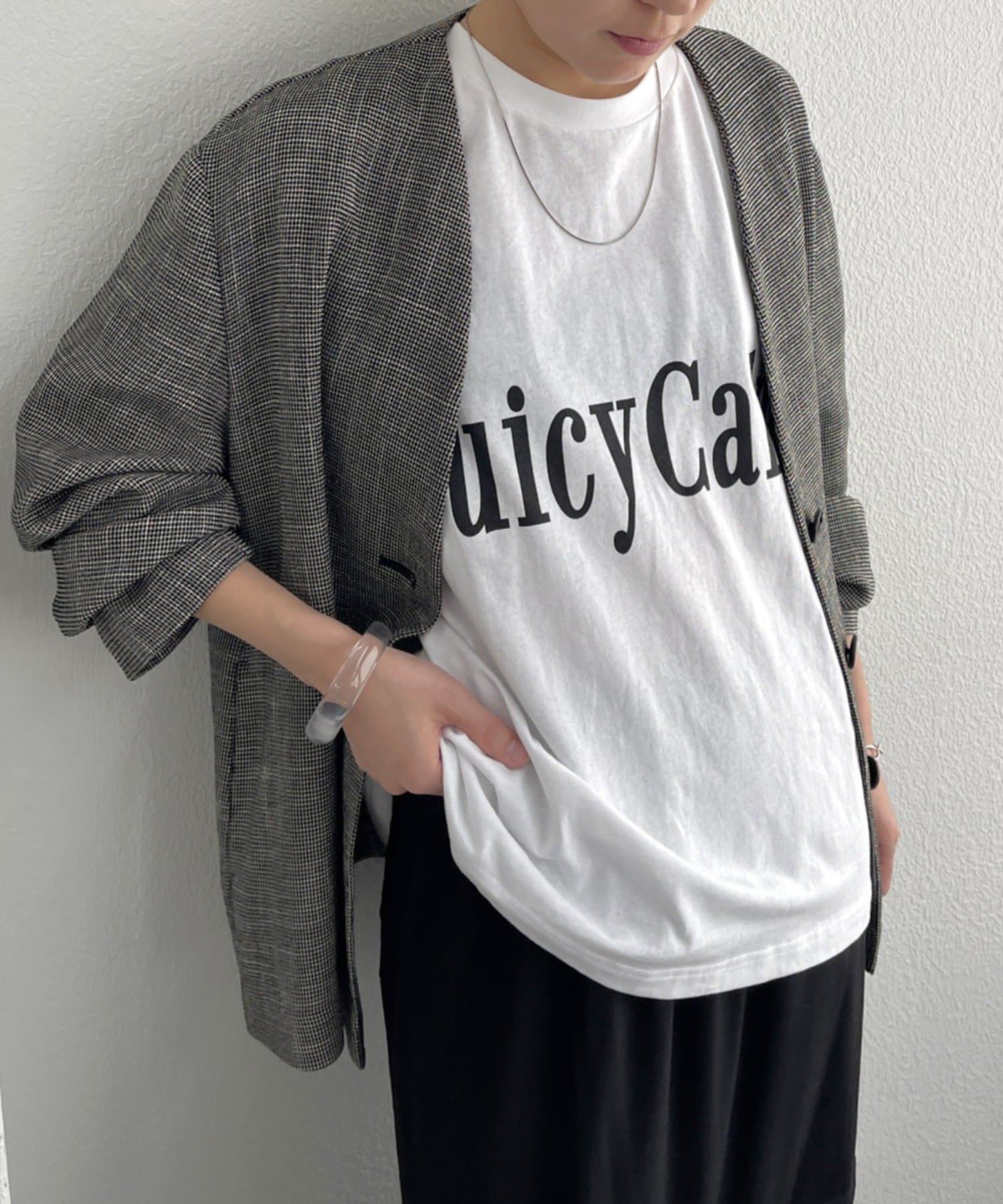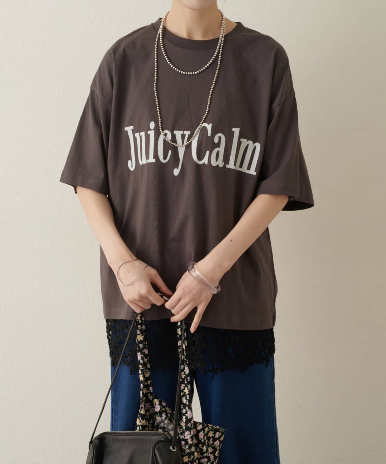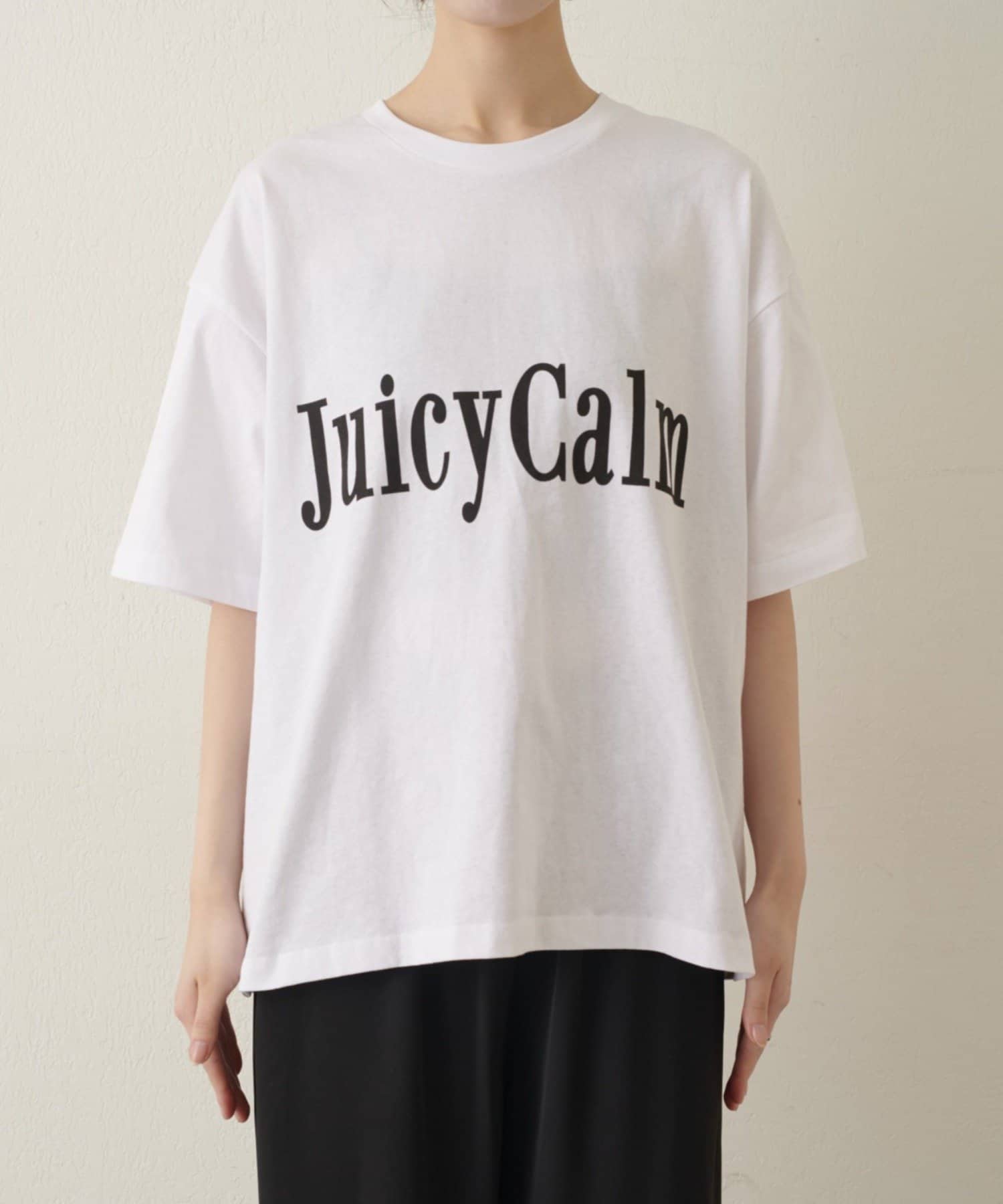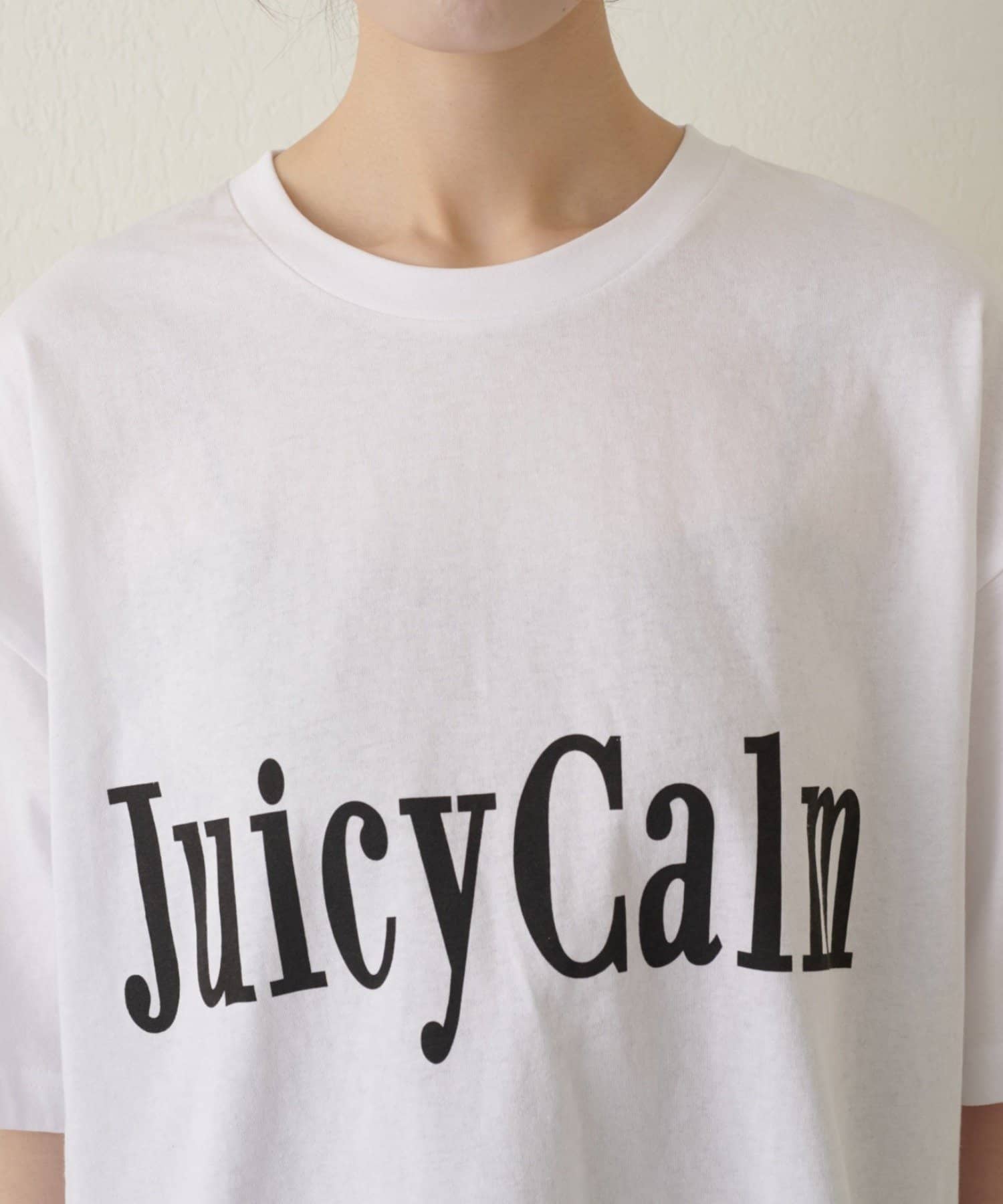 Omekashiの2026springテーマでもある"JUICY CALM"のロゴが目を惹くTシャツ