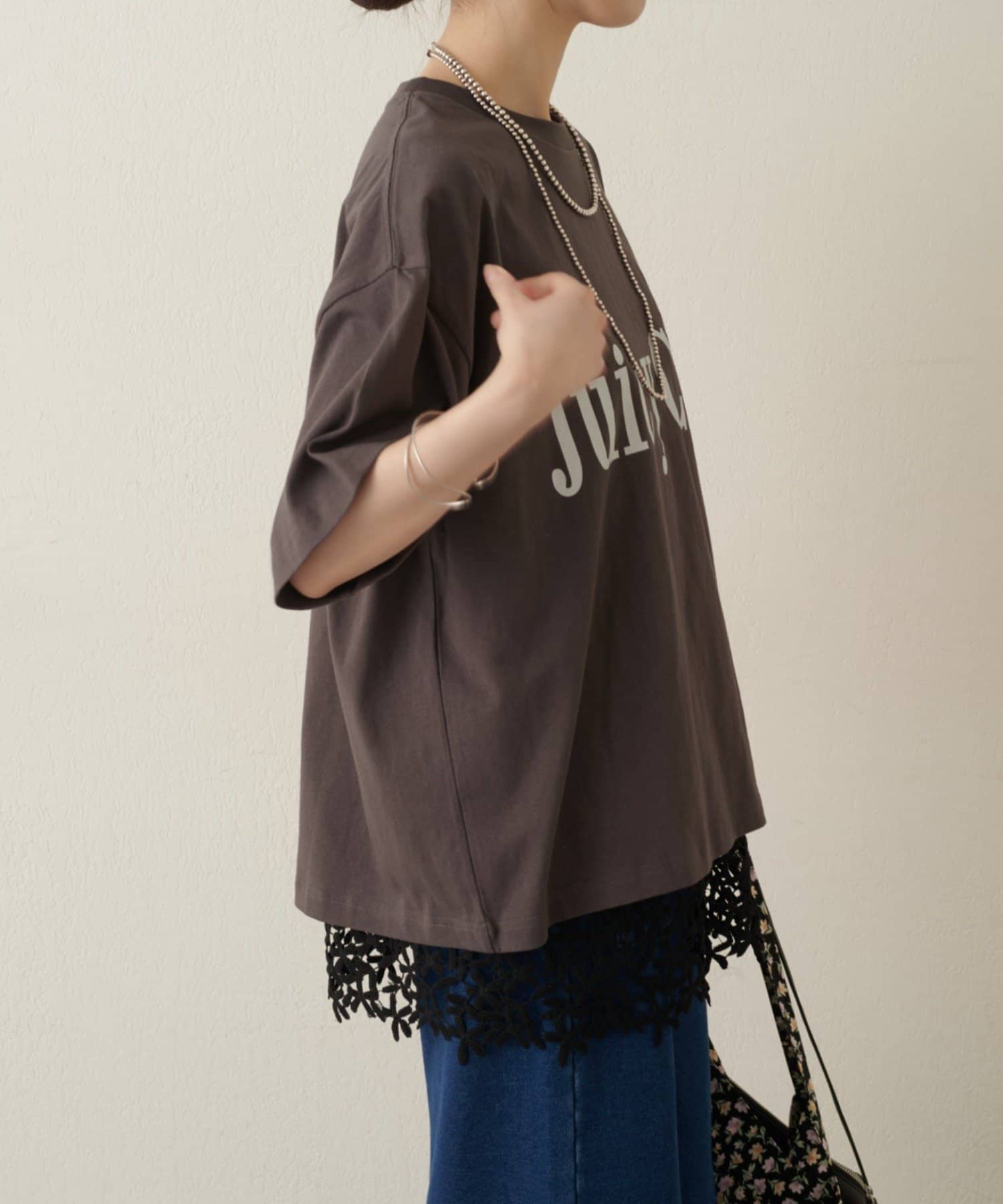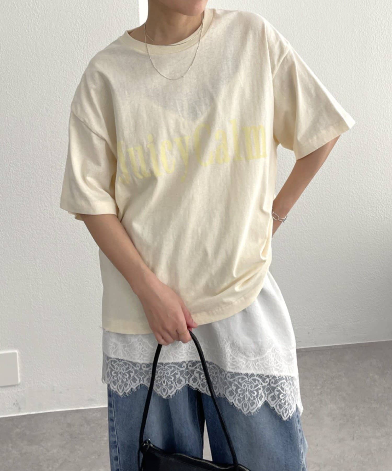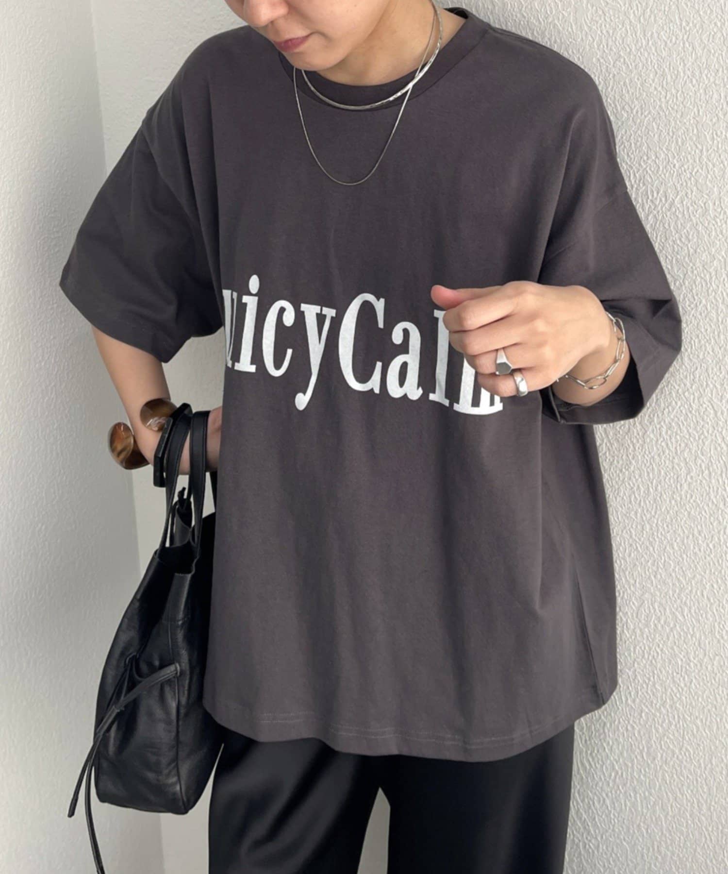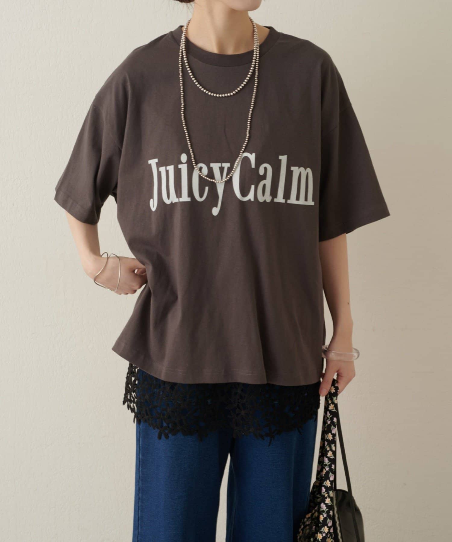 Omekashiの2026springテーマでもある"JUICY CALM"のロゴが目を惹くTシャツ
