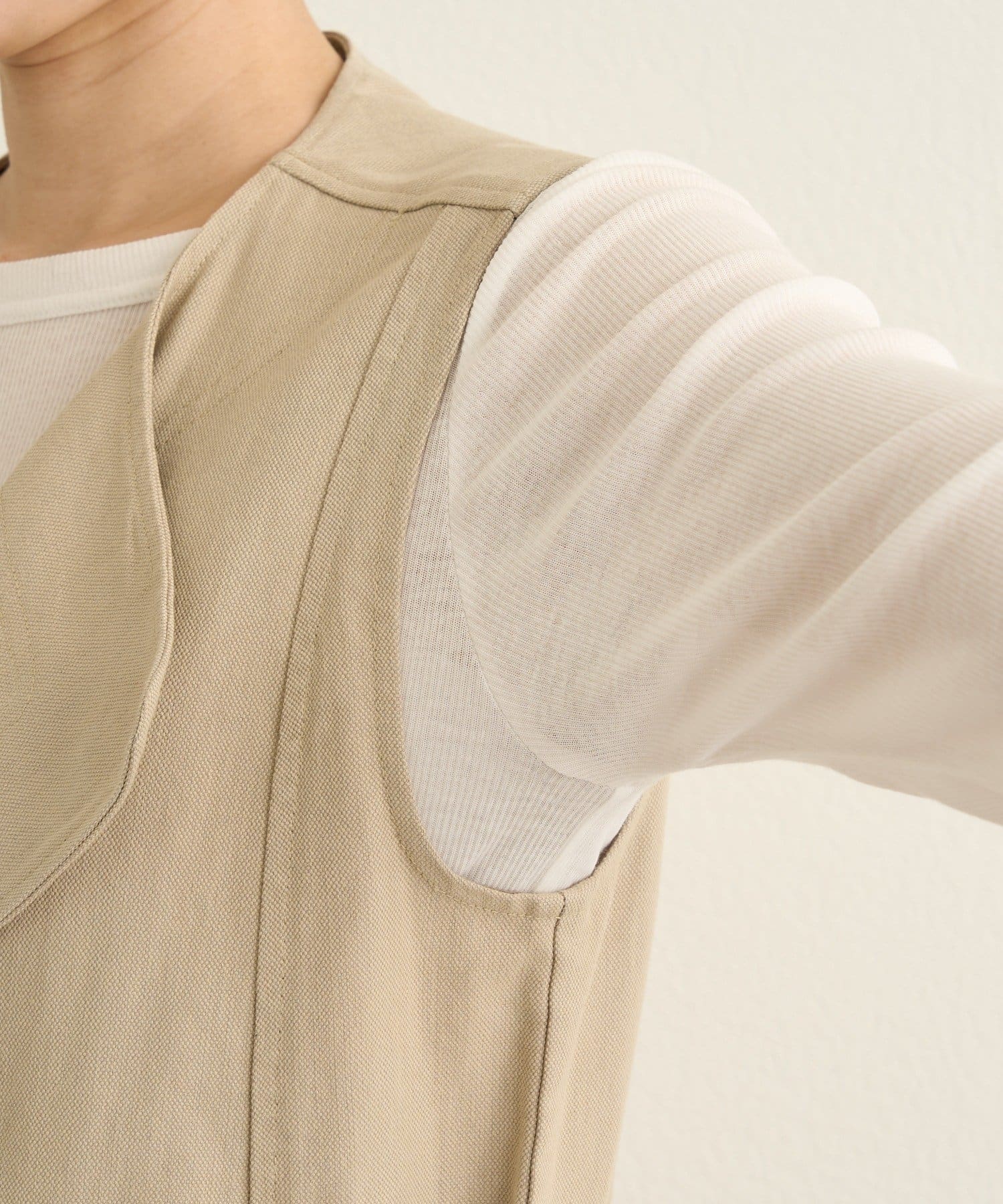 ・ナチュラルな風合いでさらっと軽やな着心地が魅力のジレ。