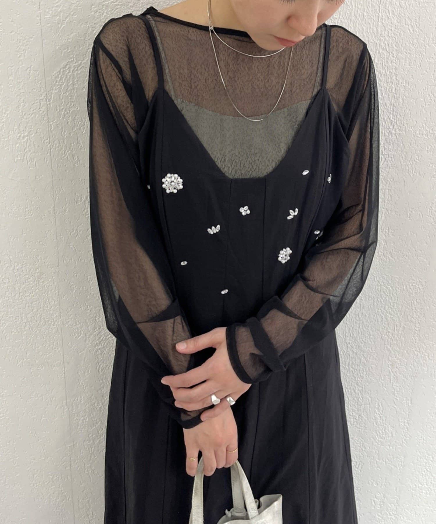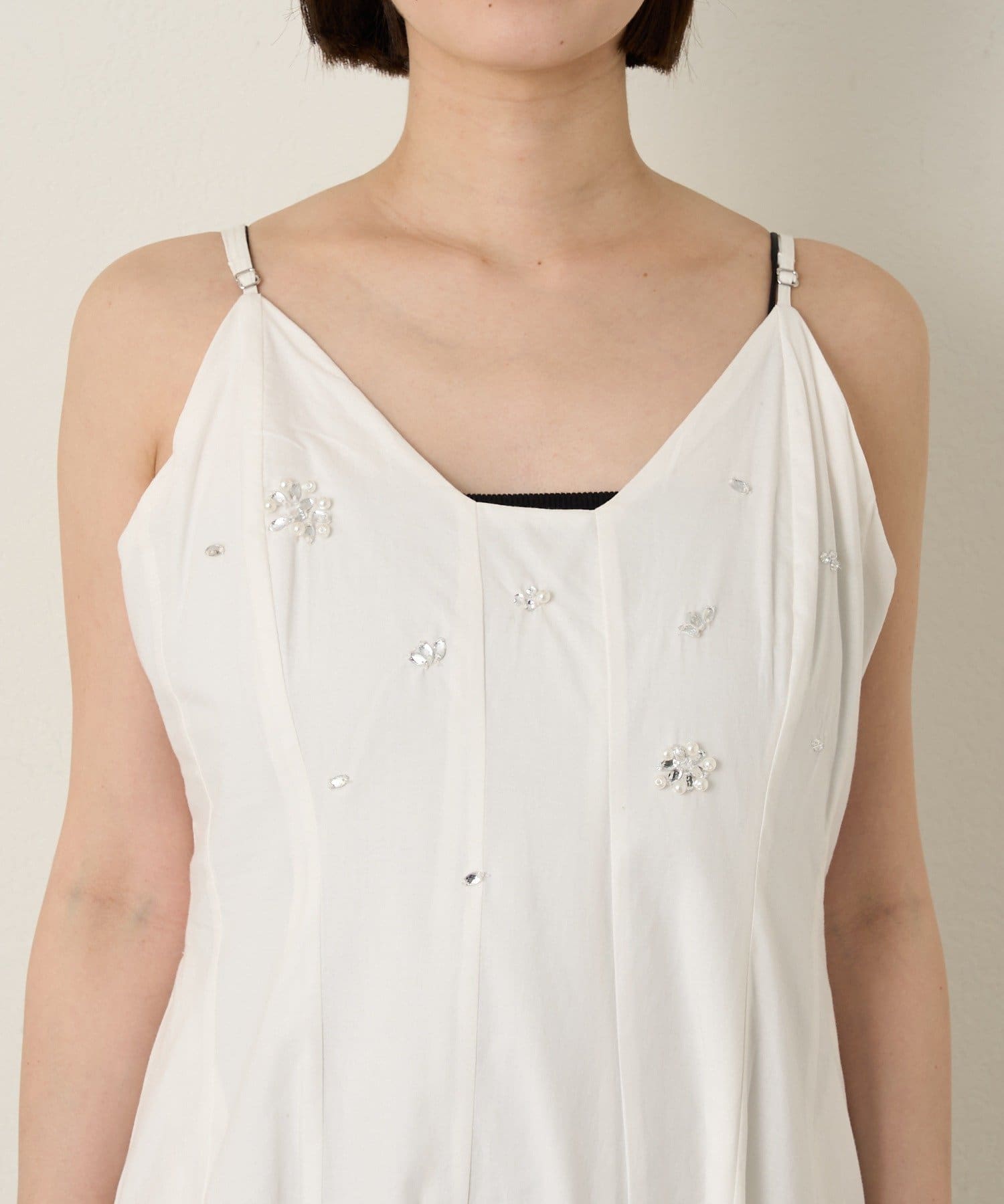 繊細なビジュー刺繍がさりげなくきらめくキャミワンピ