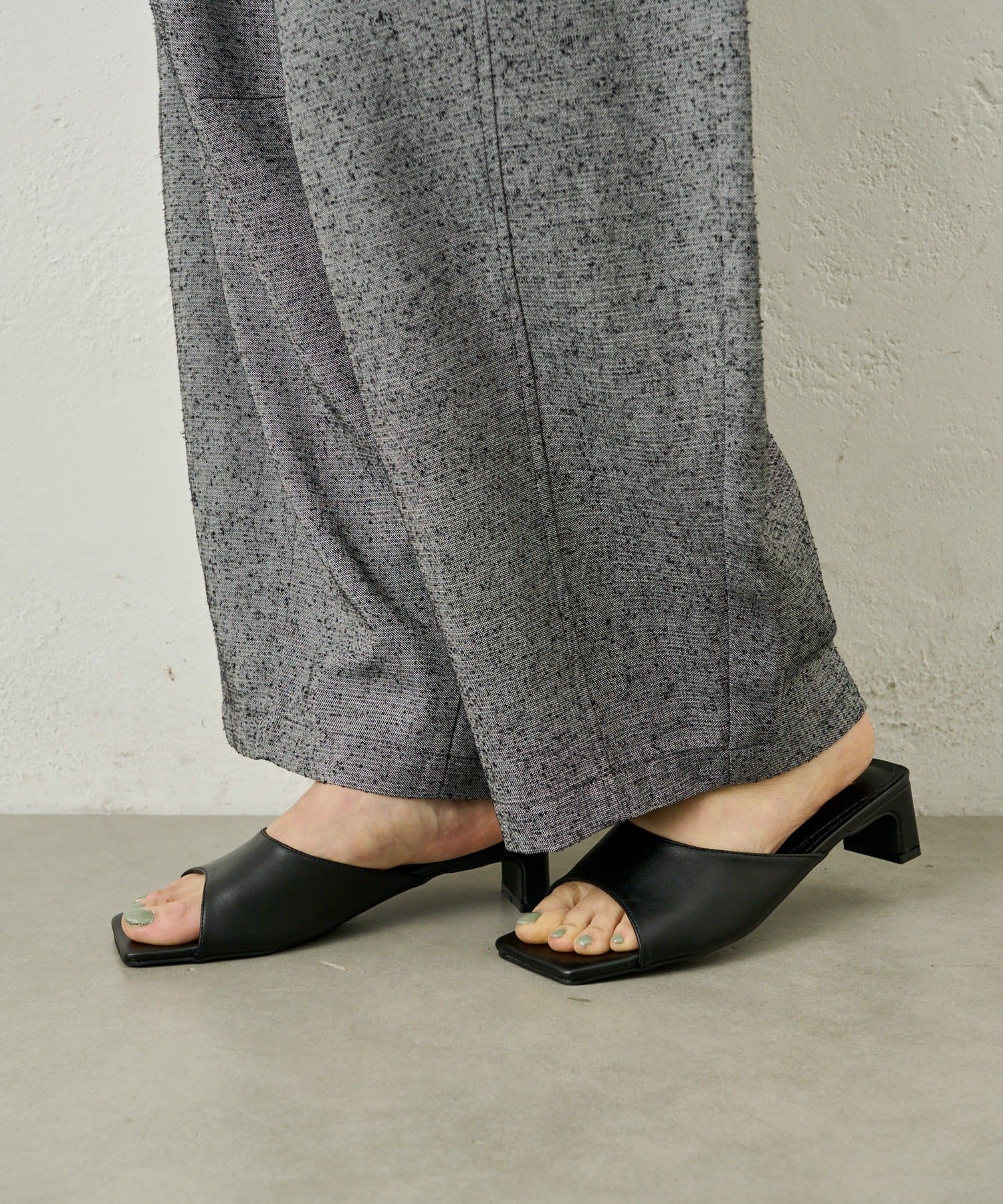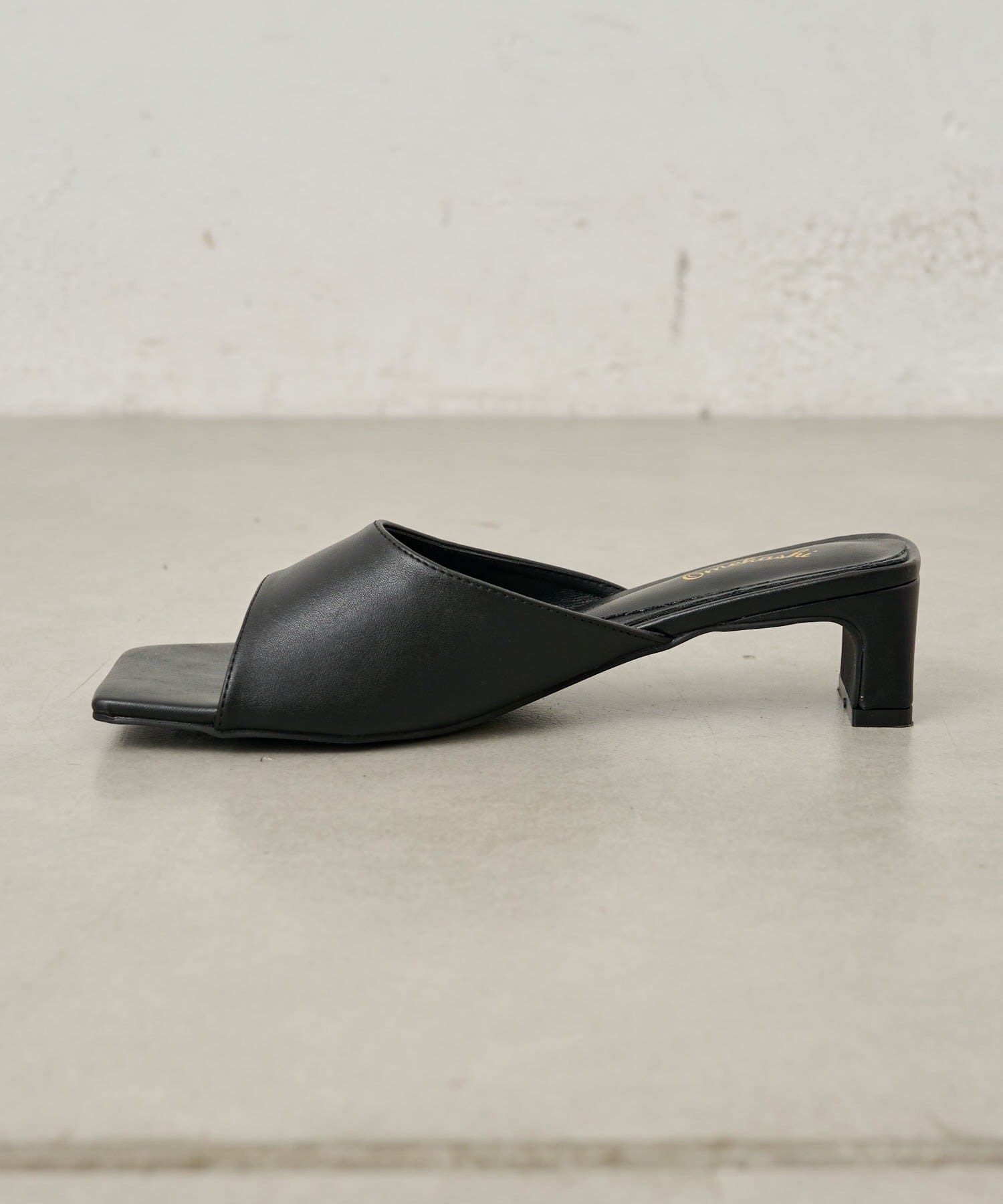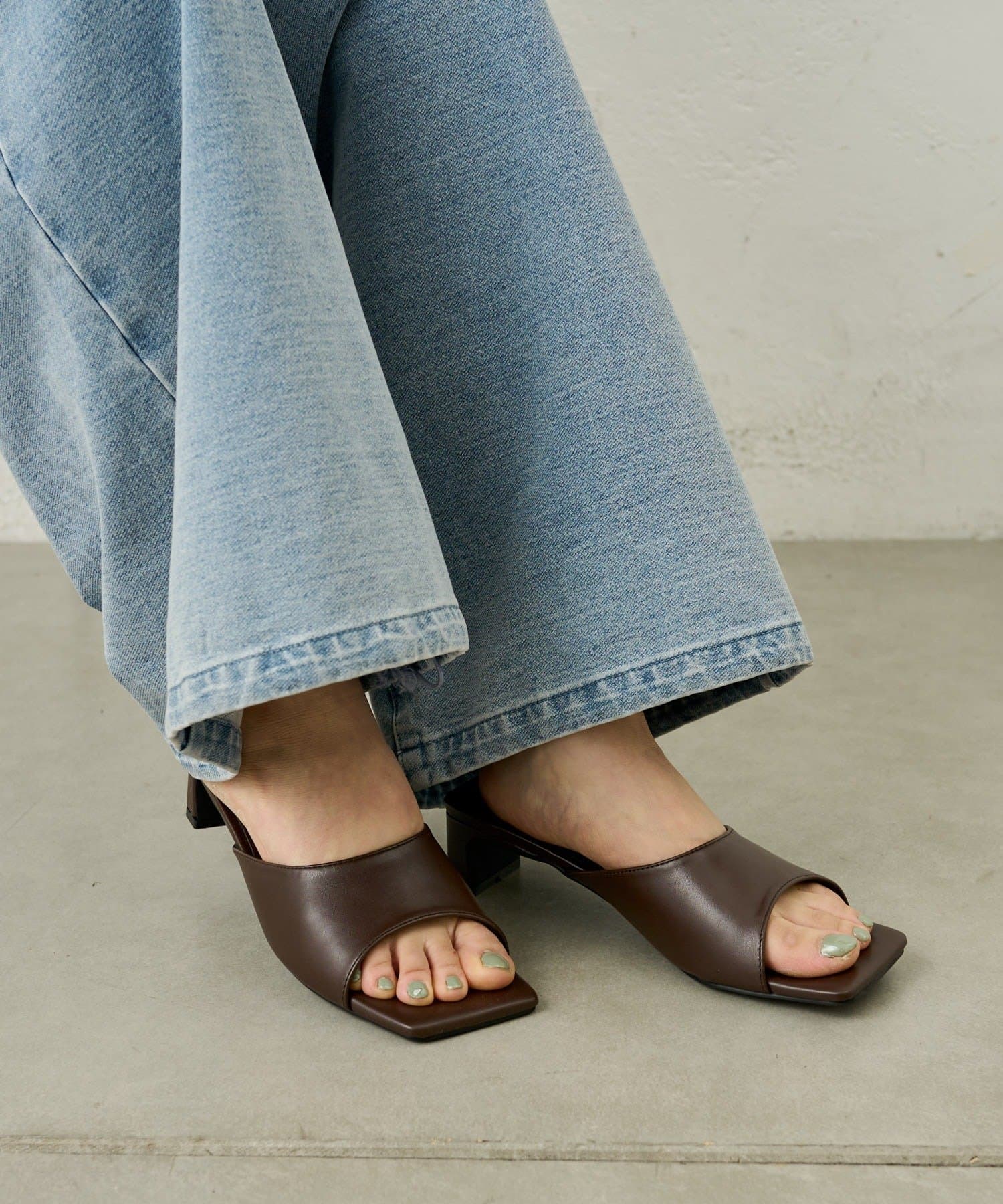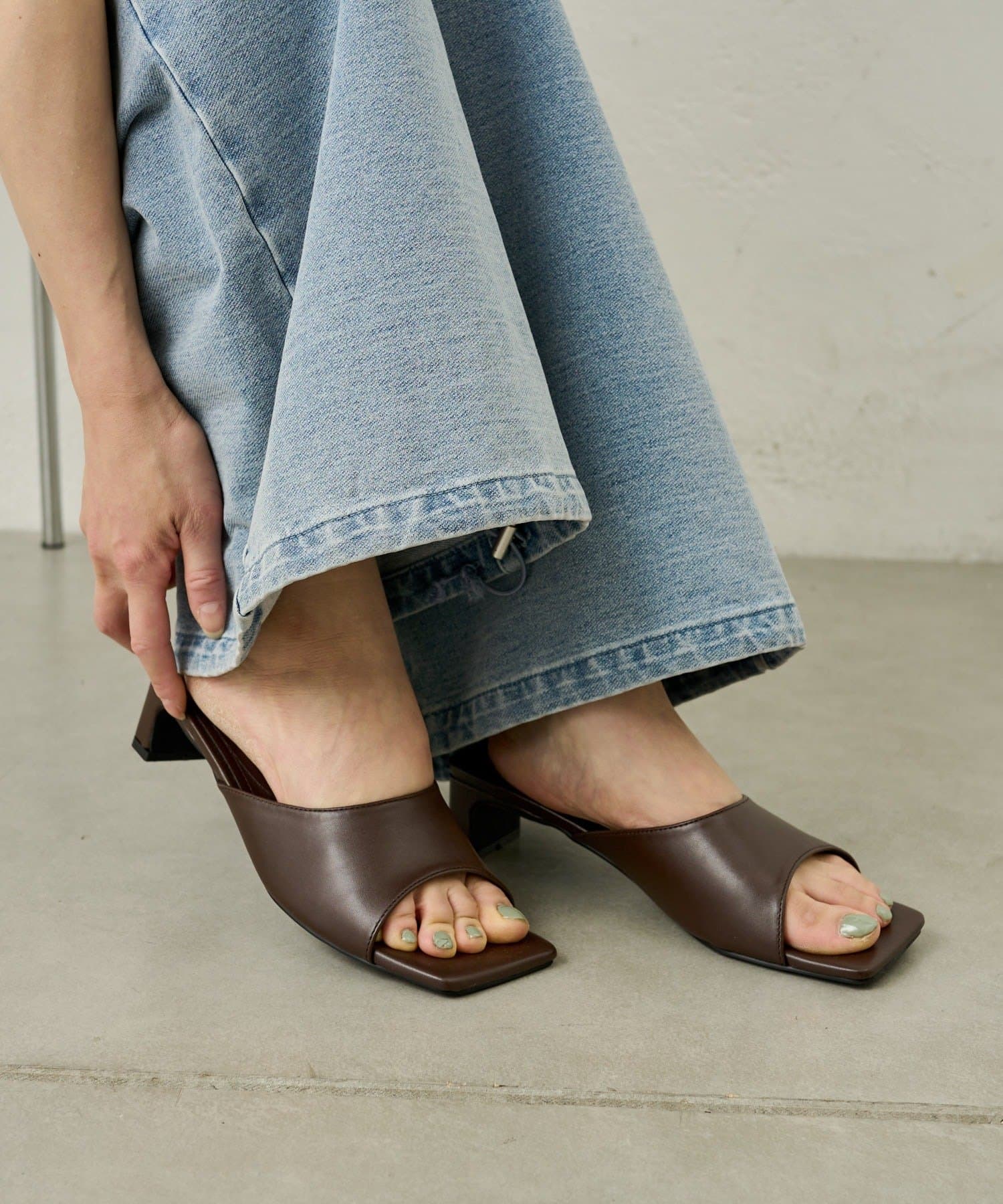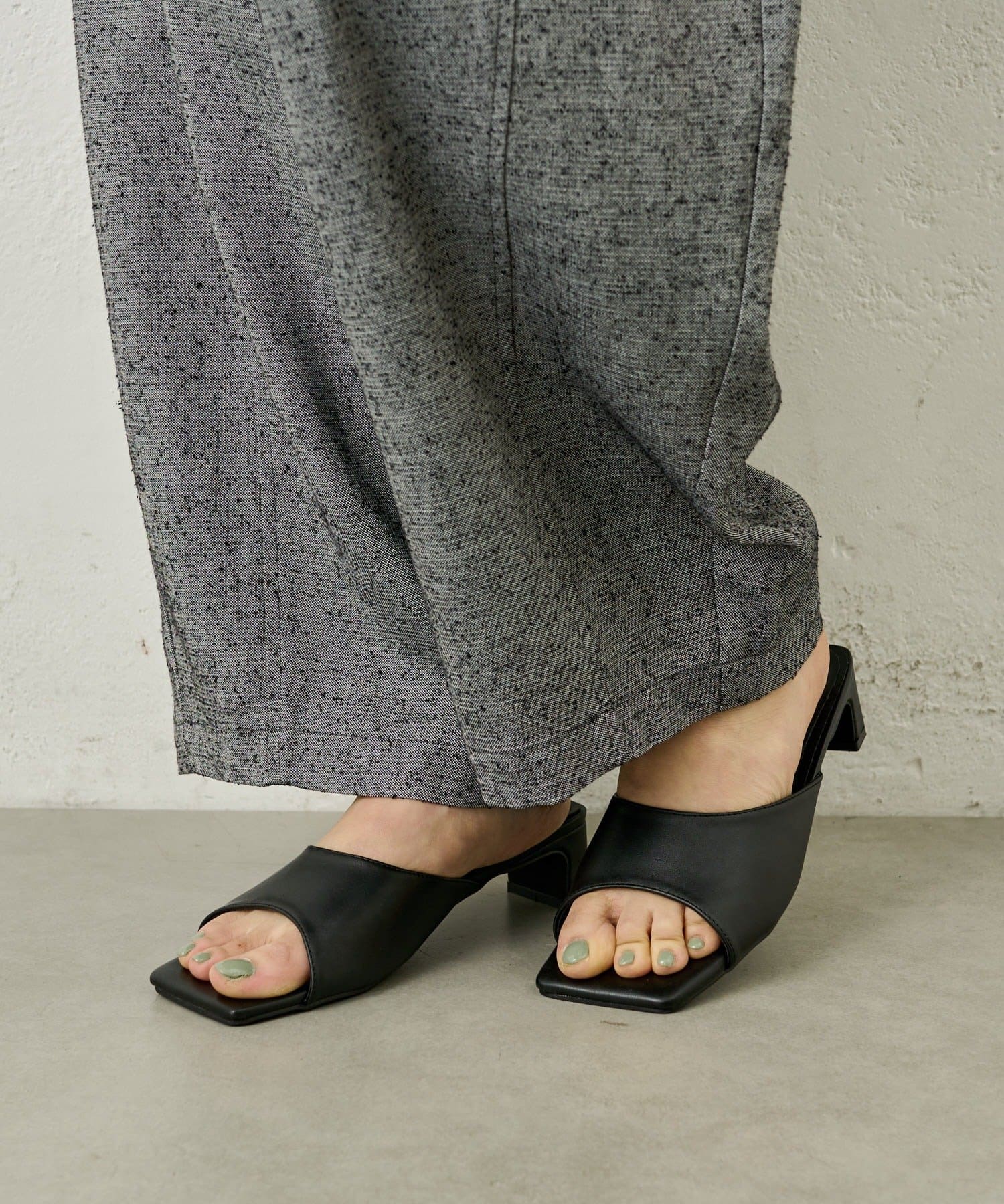 ・シンプルで華奢なデザインが足元を女性らしく演出してくれるスクエアミュール