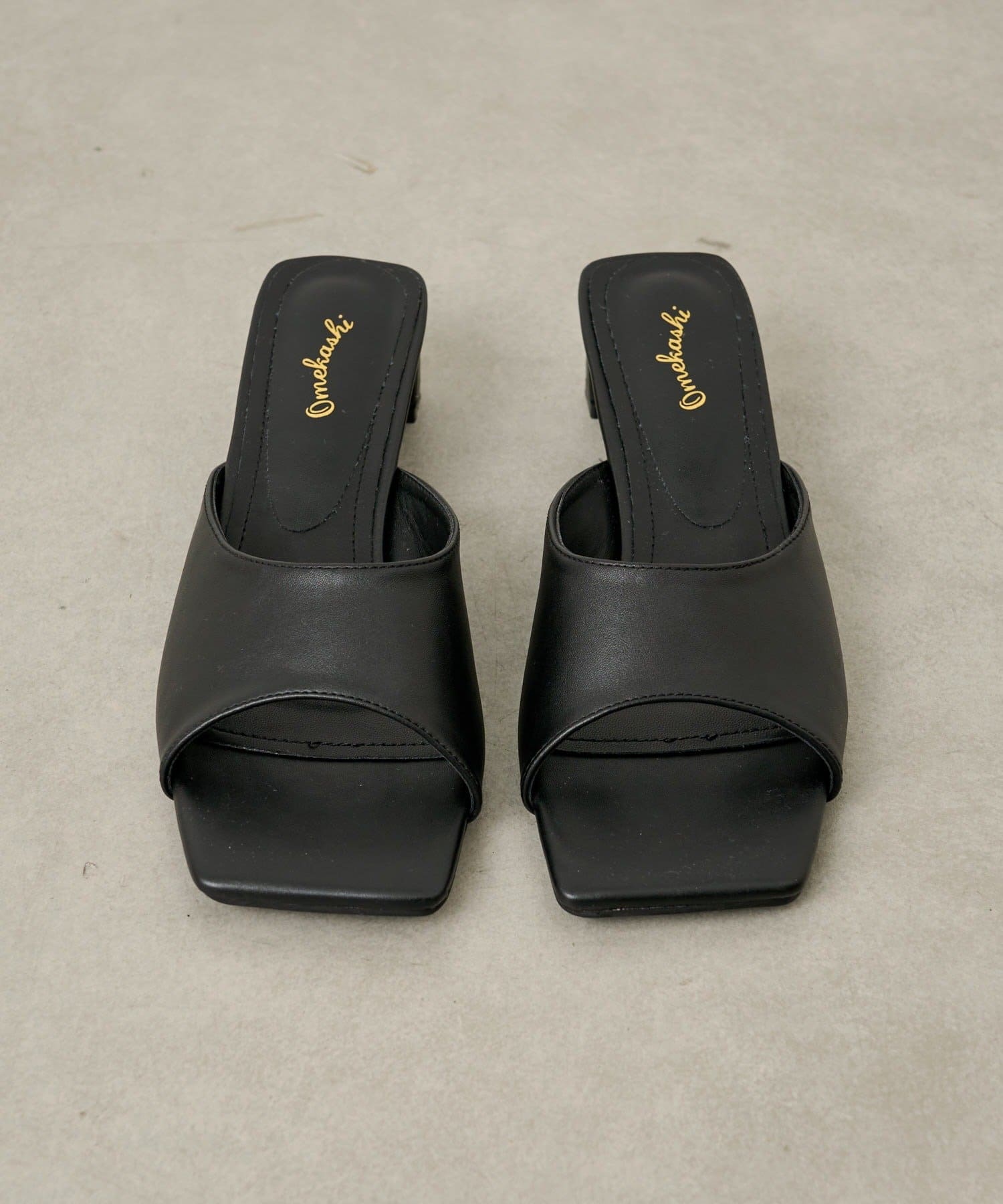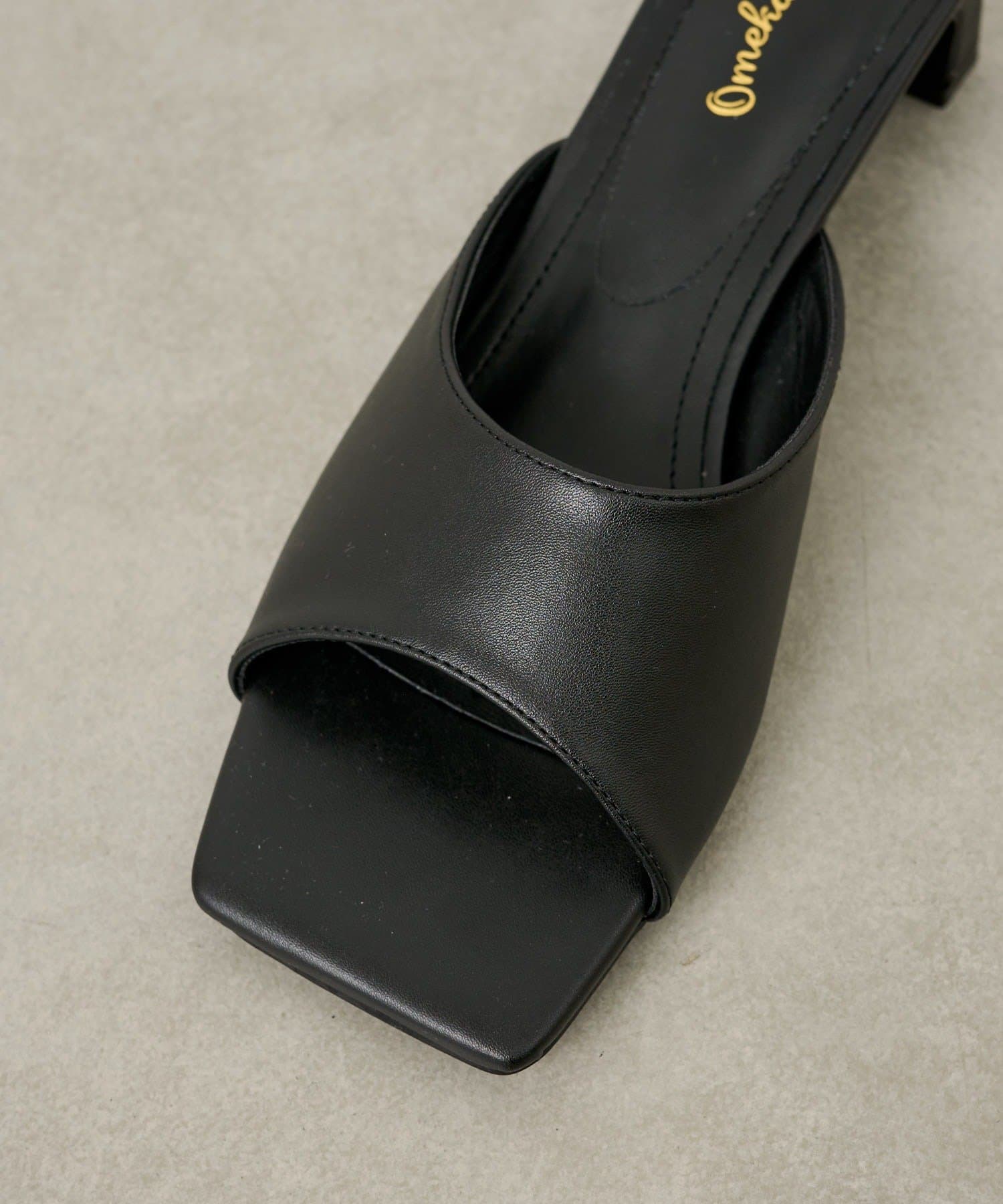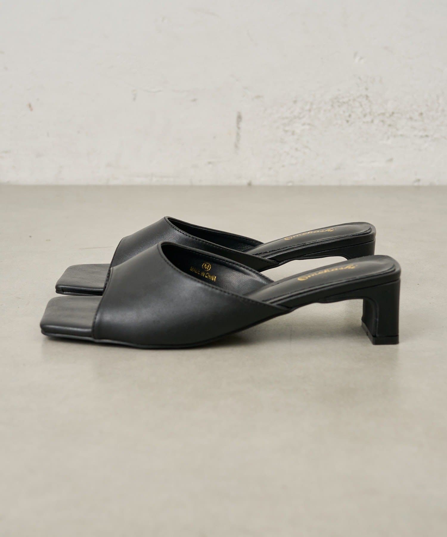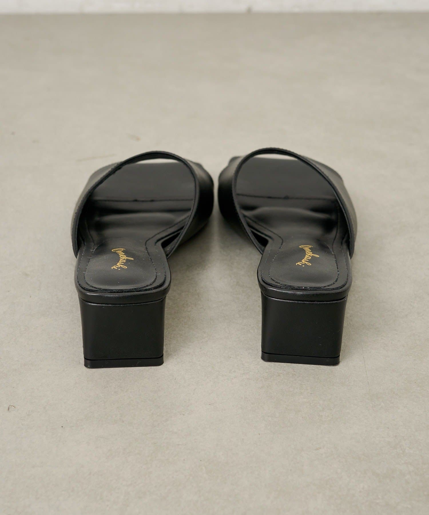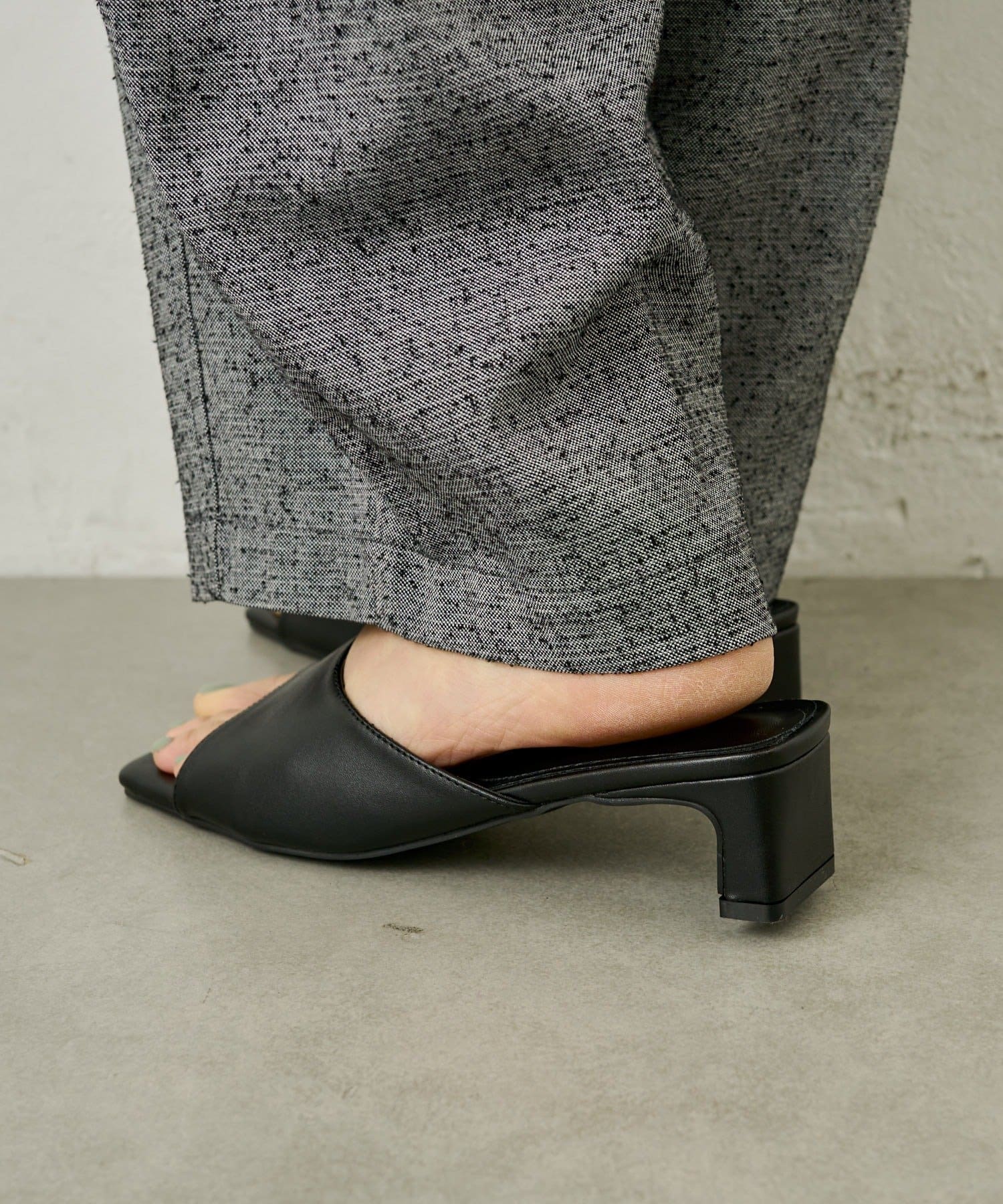 ・シンプルで華奢なデザインが足元を女性らしく演出してくれるスクエアミュール