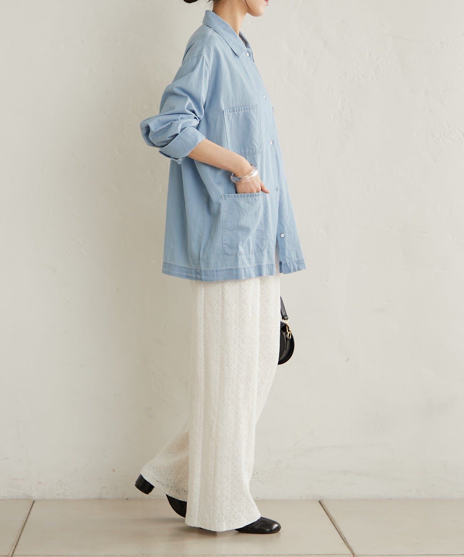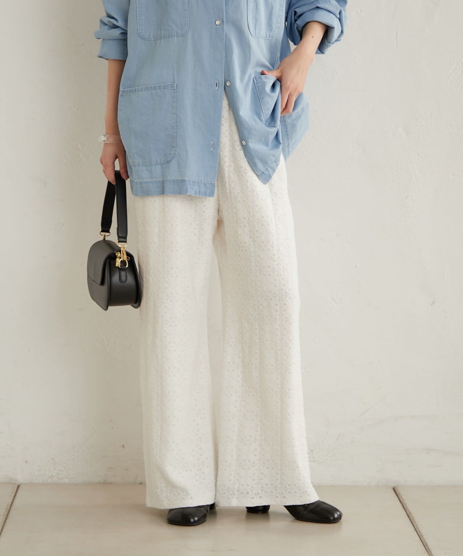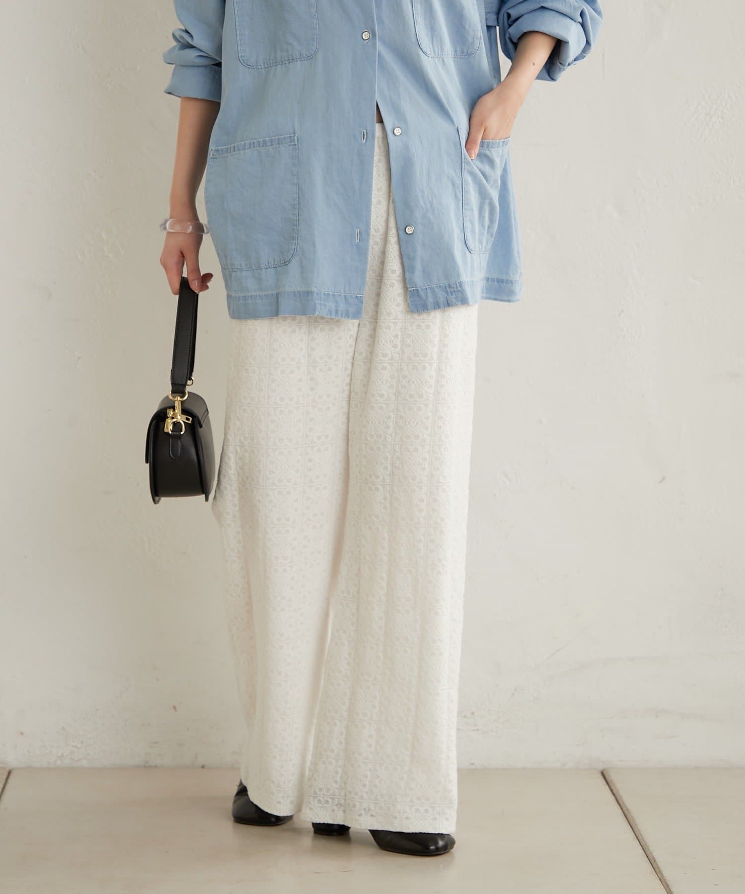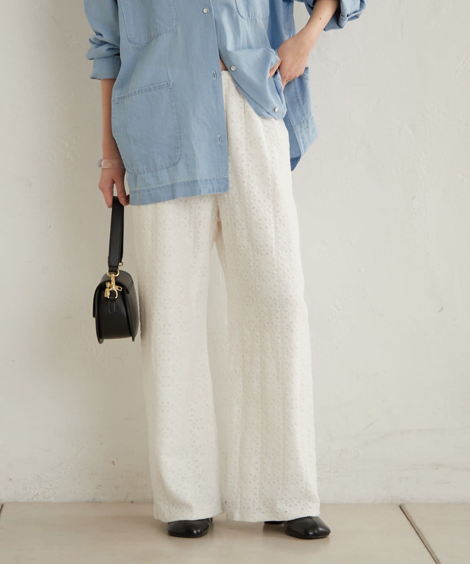 抜け感ある大人なカジュアルな総レースパンツ