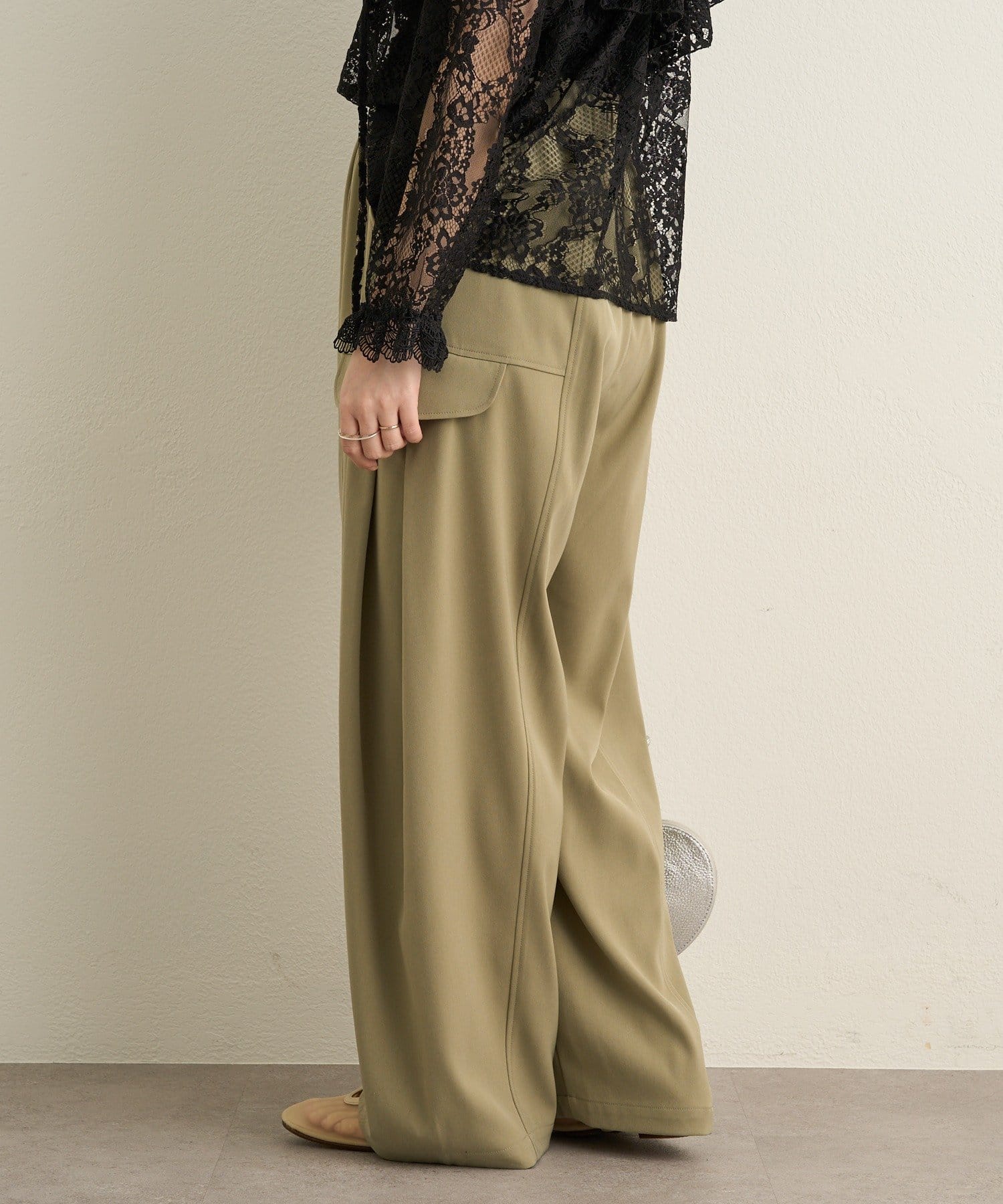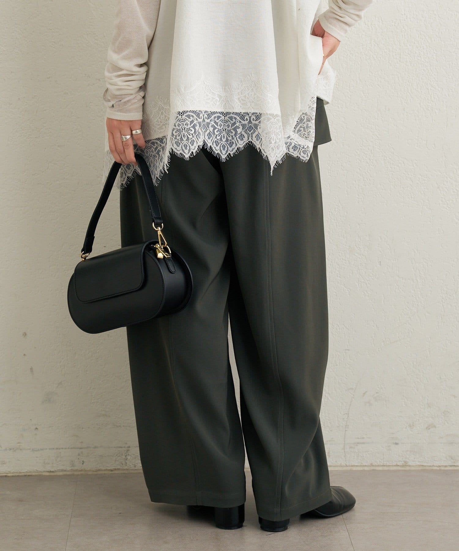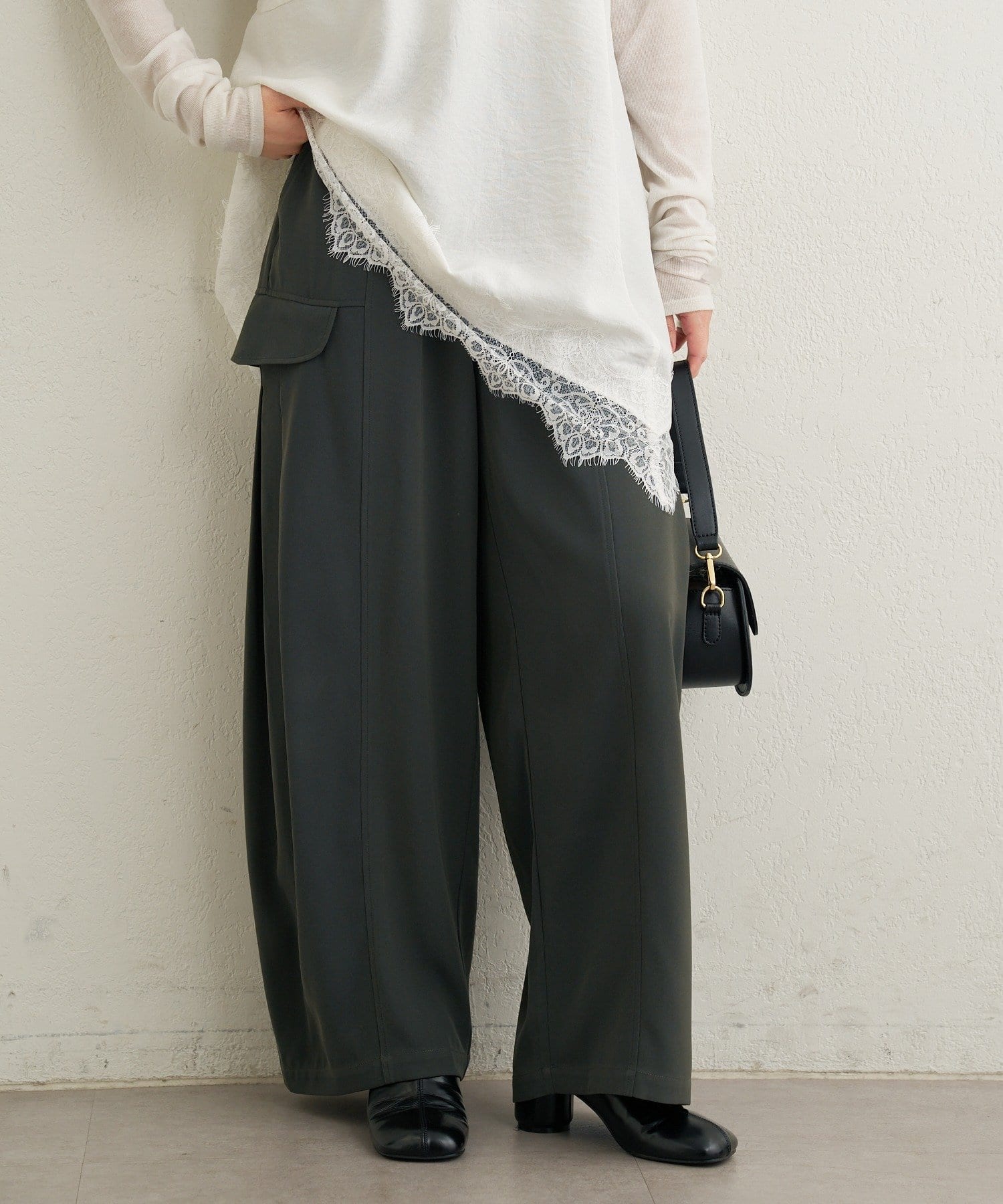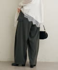 ・程よくワイドなシルエットと、タックが入ることで身体のラインを拾いずらく体型カバーも叶えてくれます。