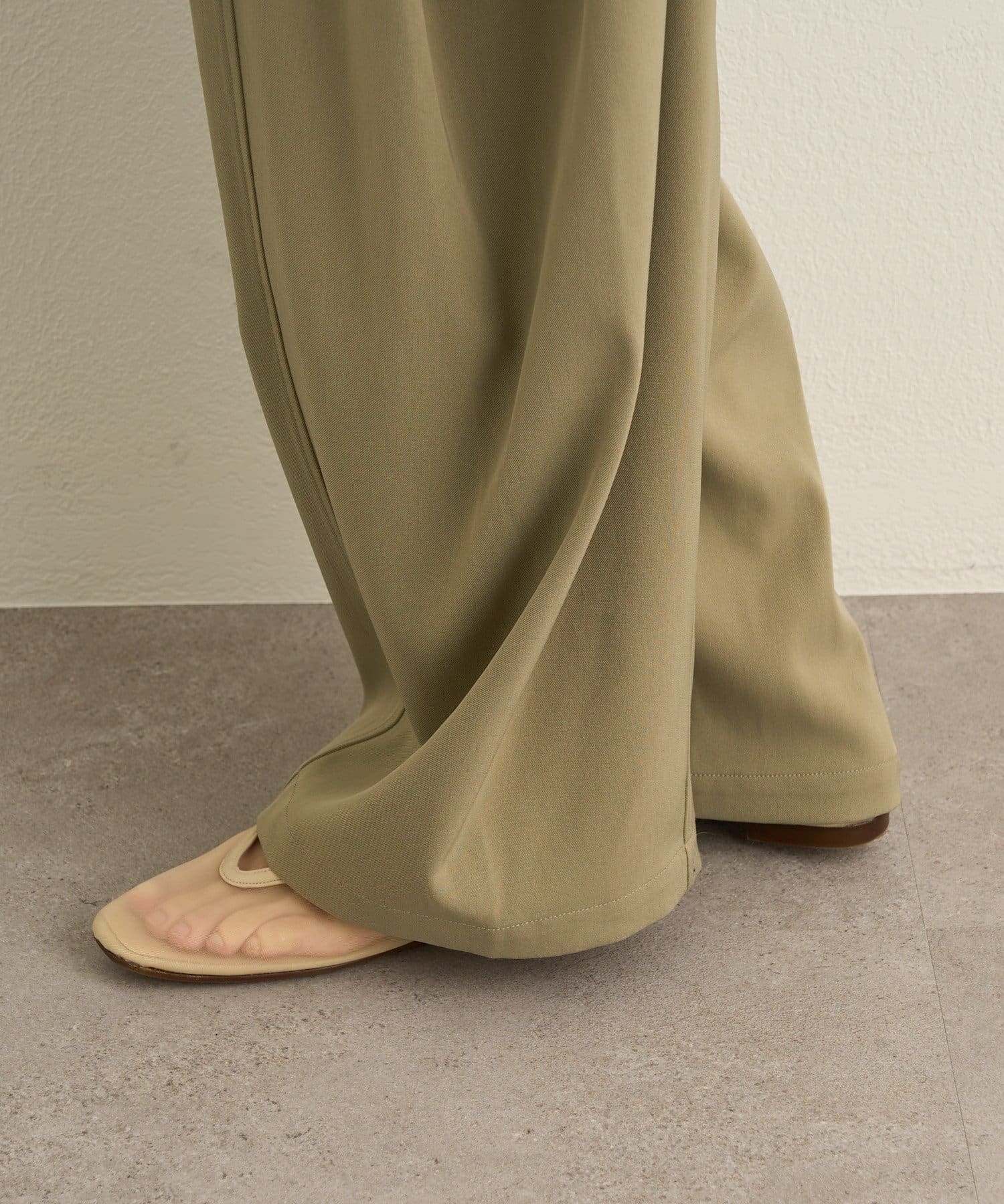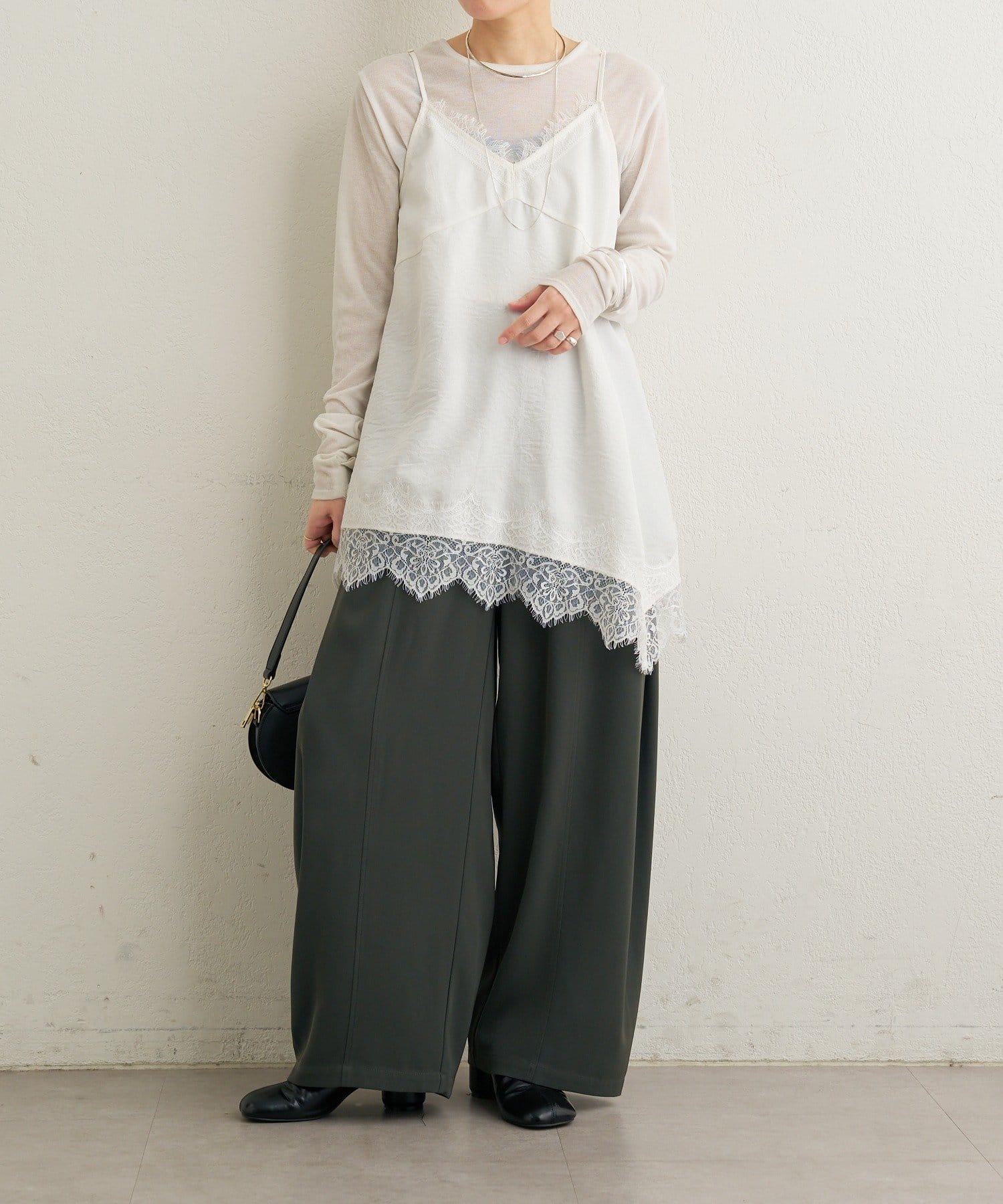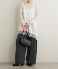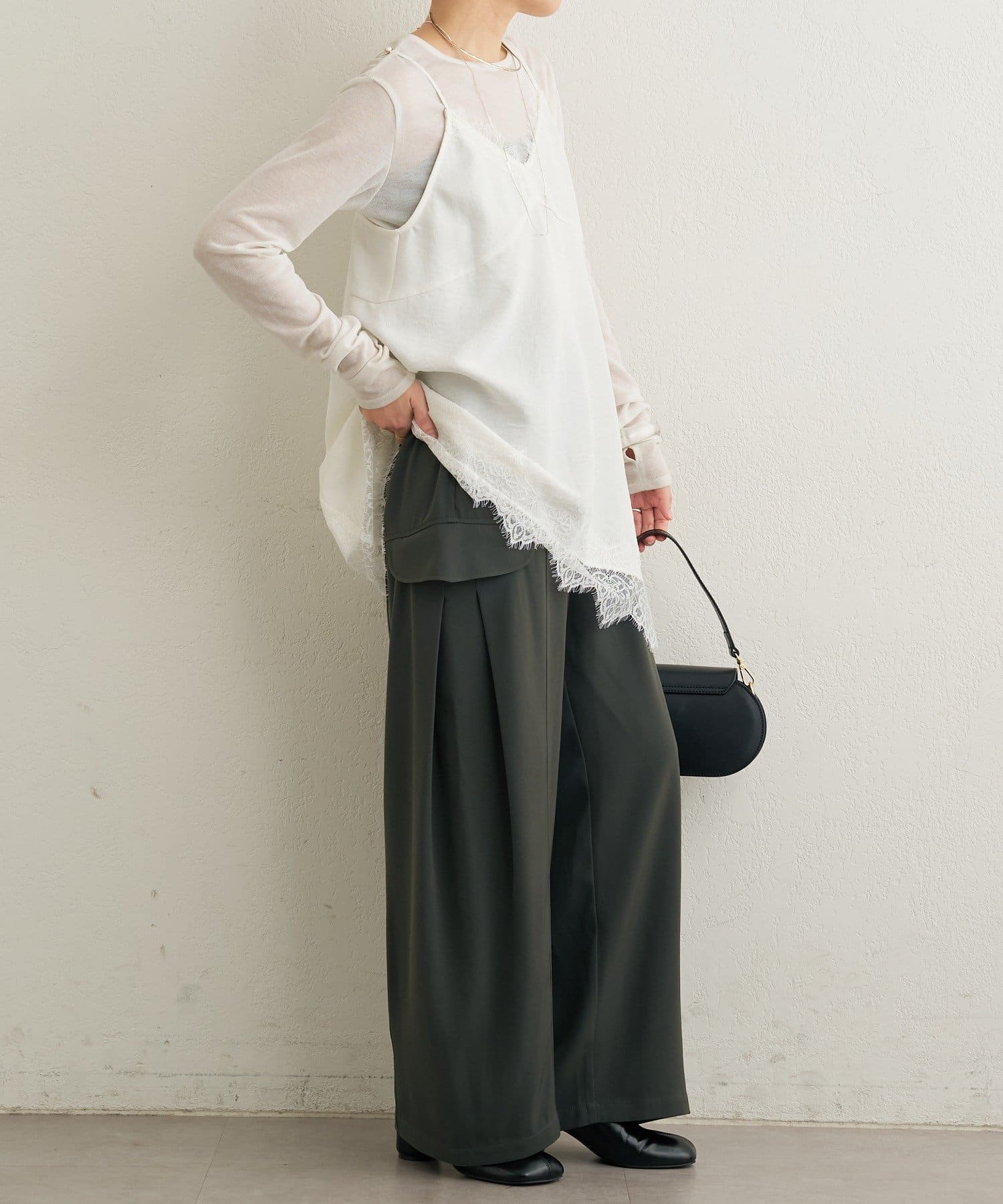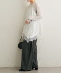 ・程よくワイドなシルエットと、タックが入ることで身体のラインを拾いずらく体型カバーも叶えてくれます。