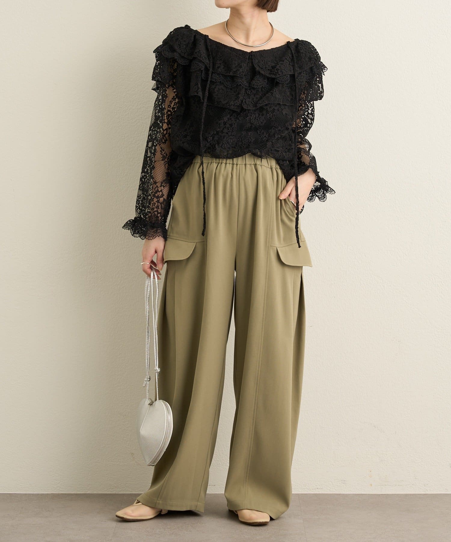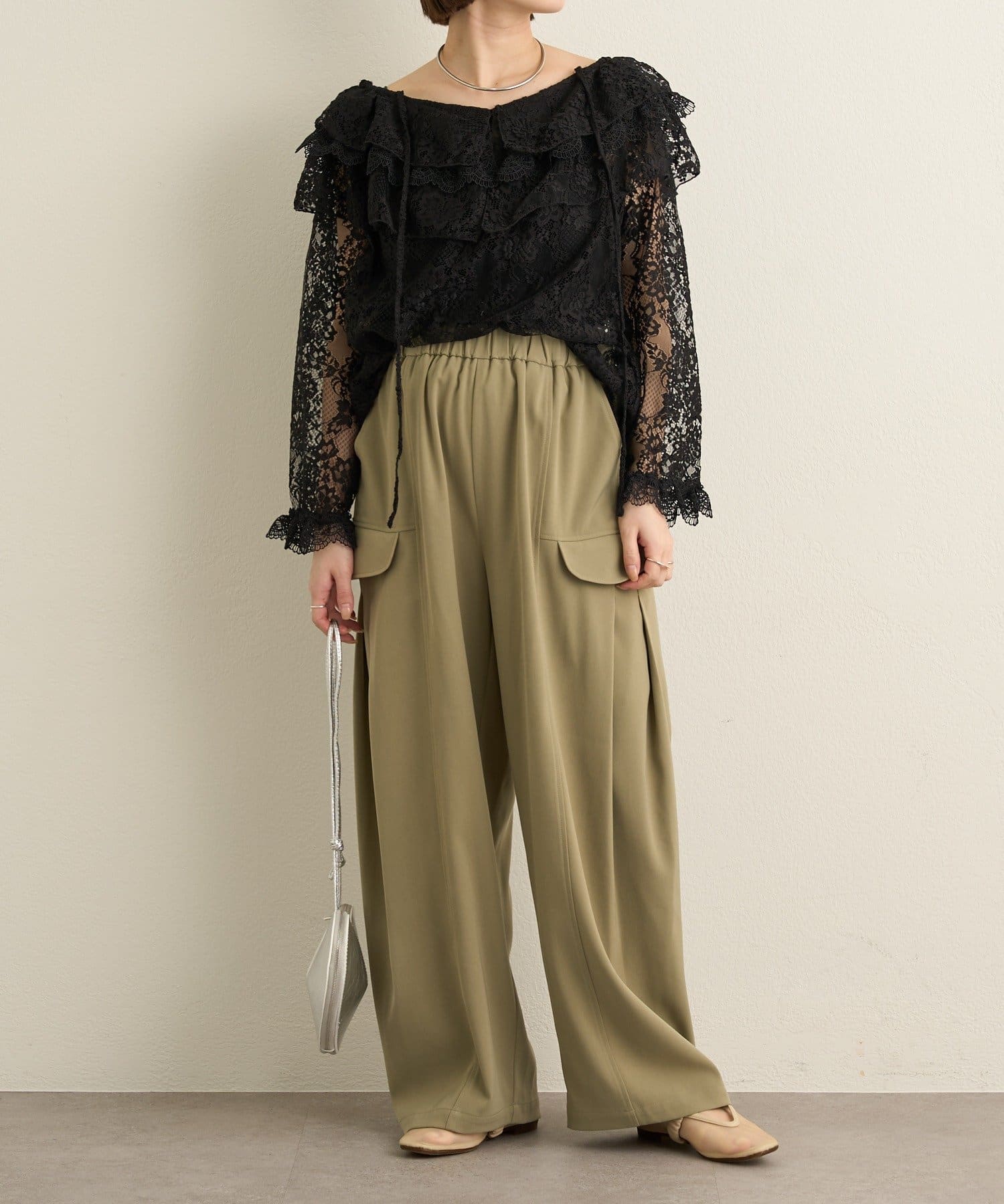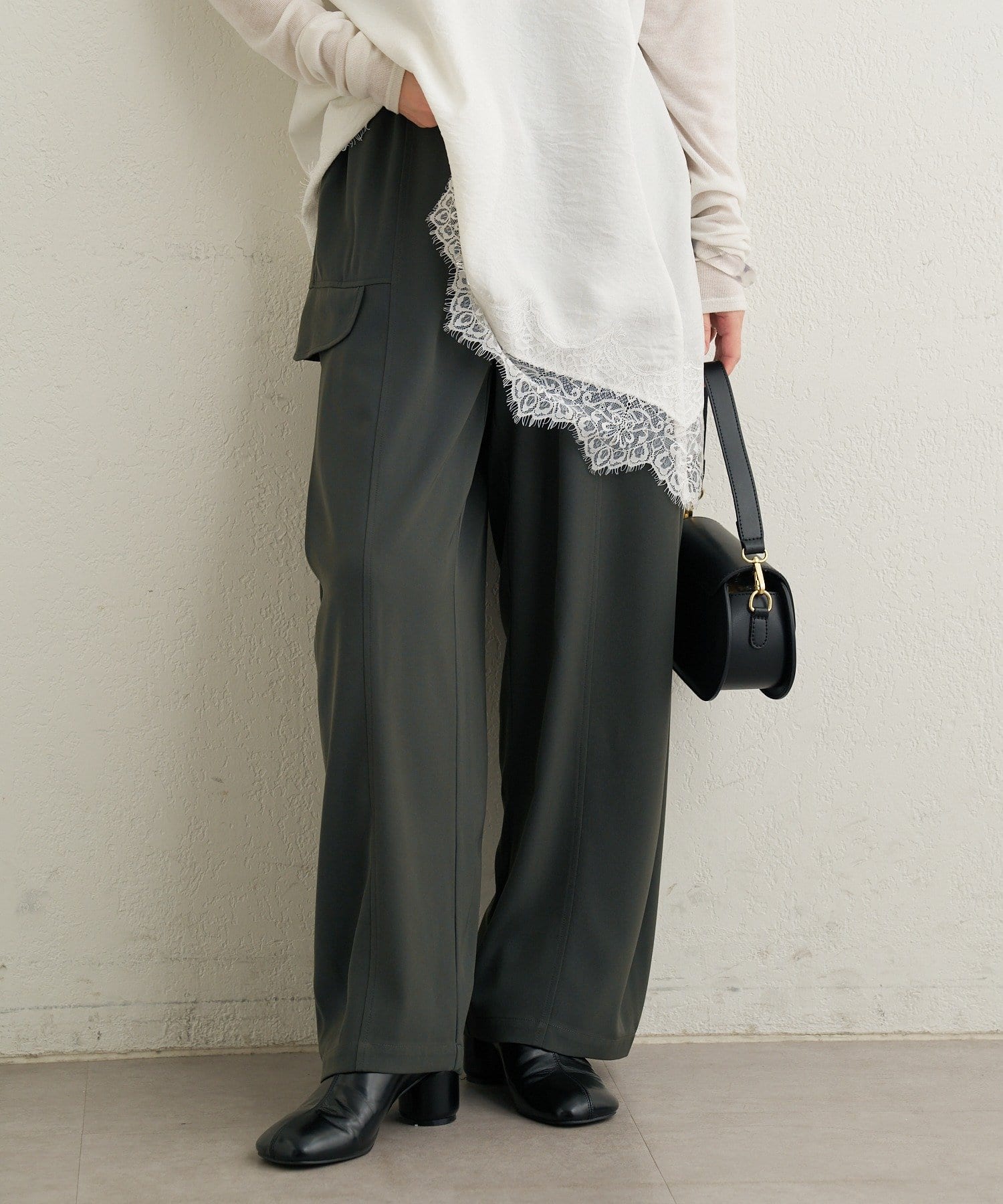 ・両サイドのカーゴポケットがポイントになるイージーパンツ。