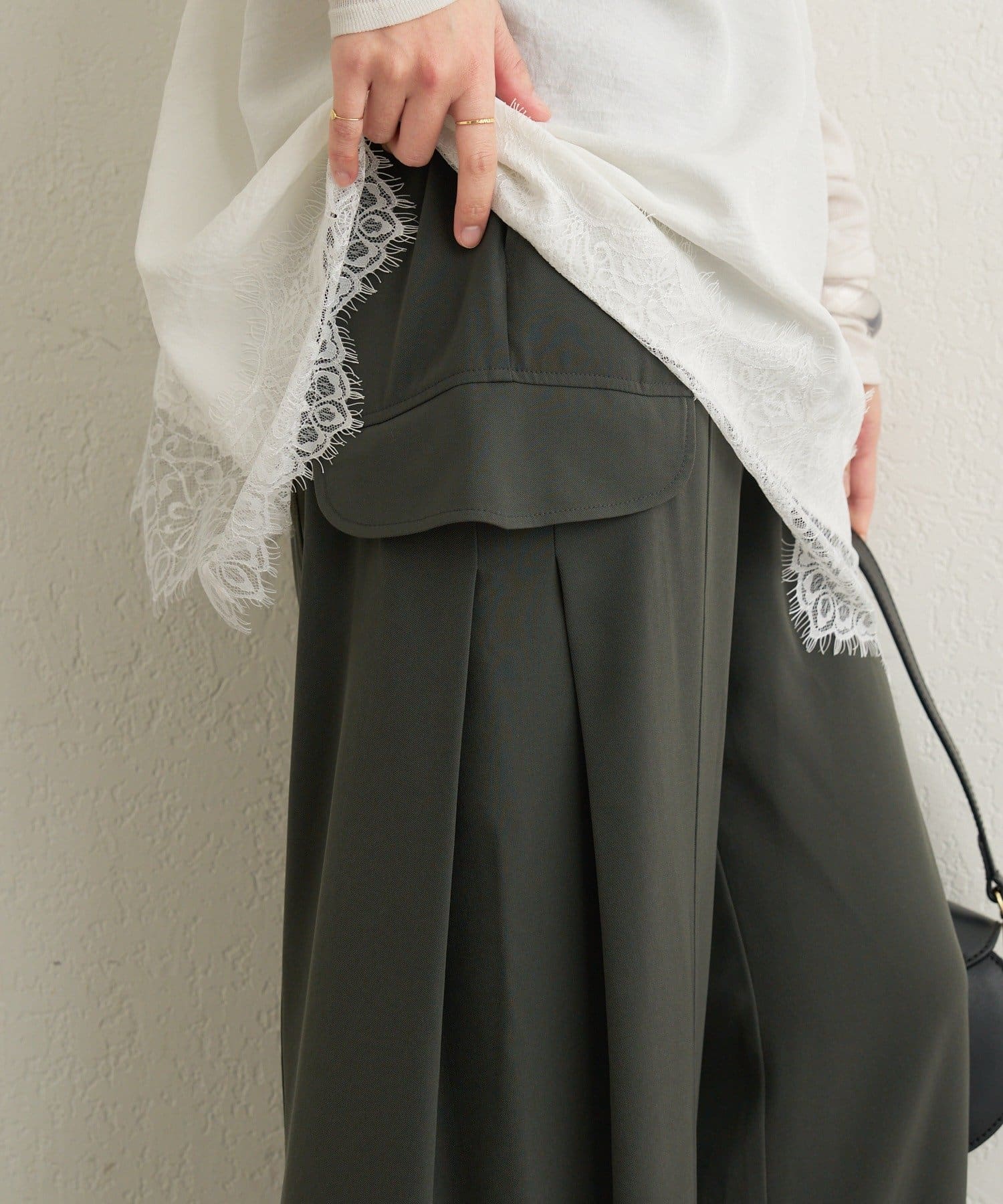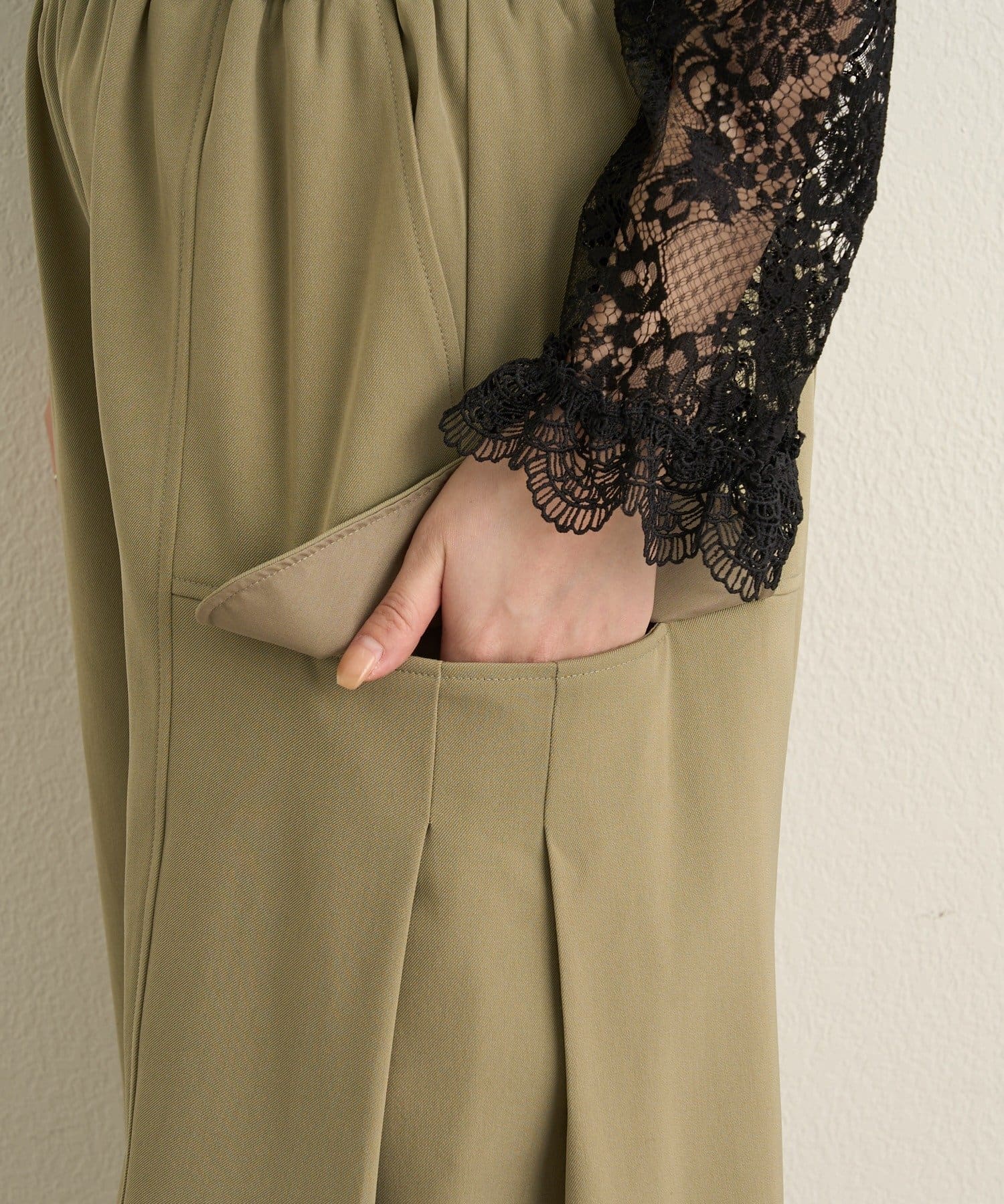 ・サイドのポケットから入ったタックがシルエットに立体感を出してくれて女性らしさを演出してくれます。