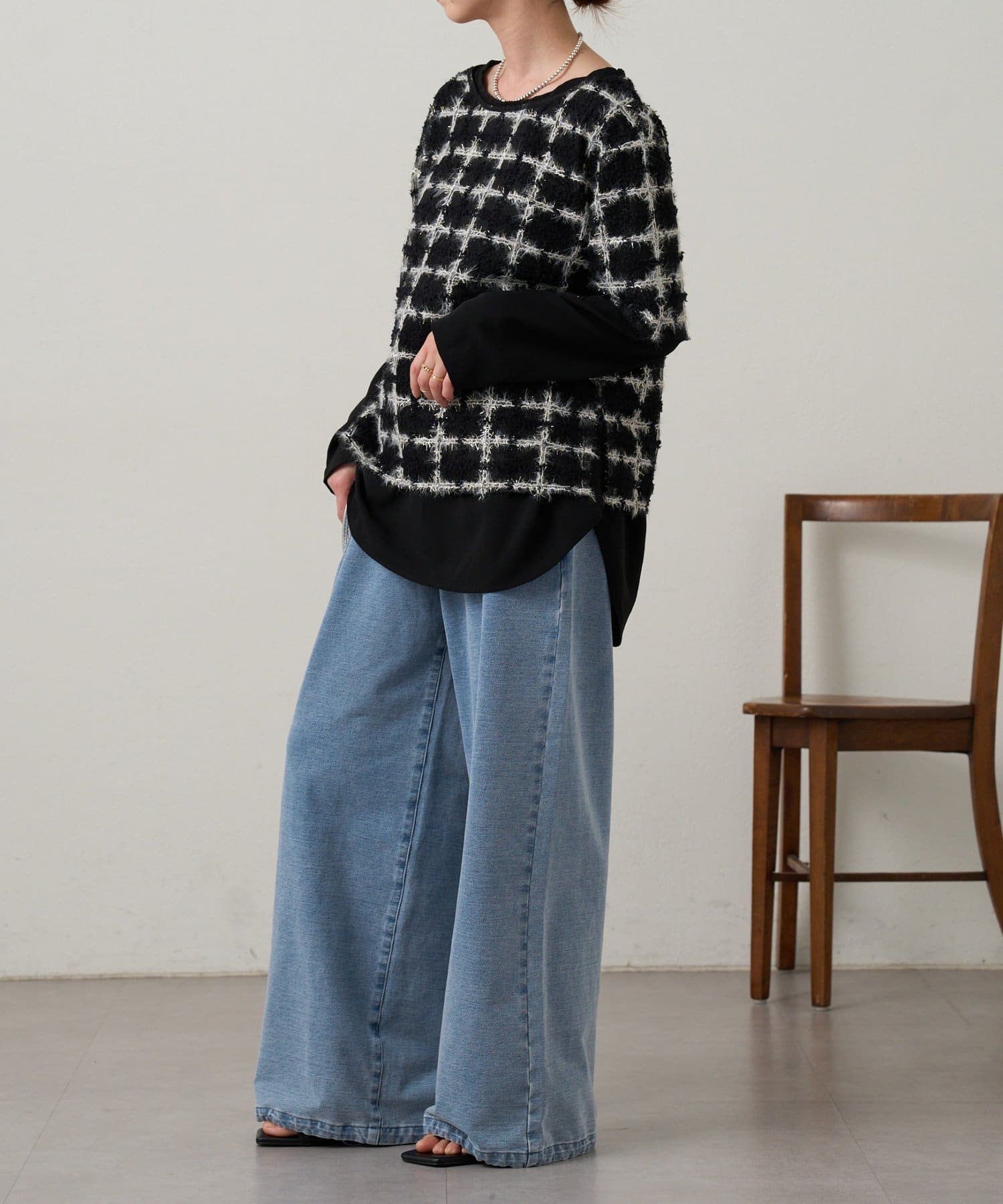 • Omekashi(オメカシ) 裾ドロストスウェットデニム