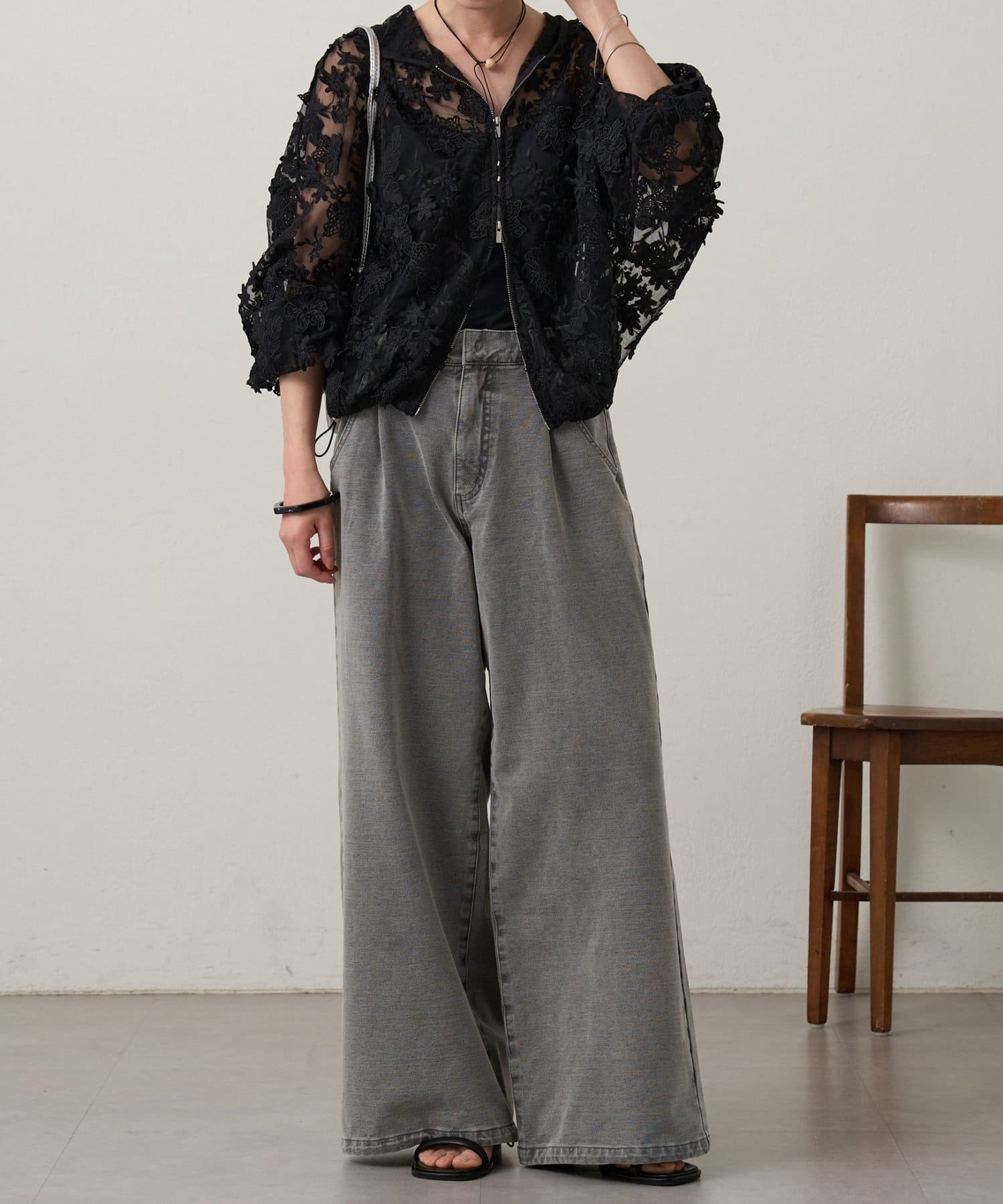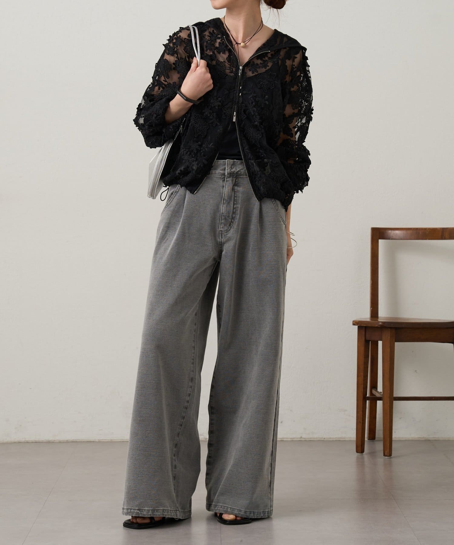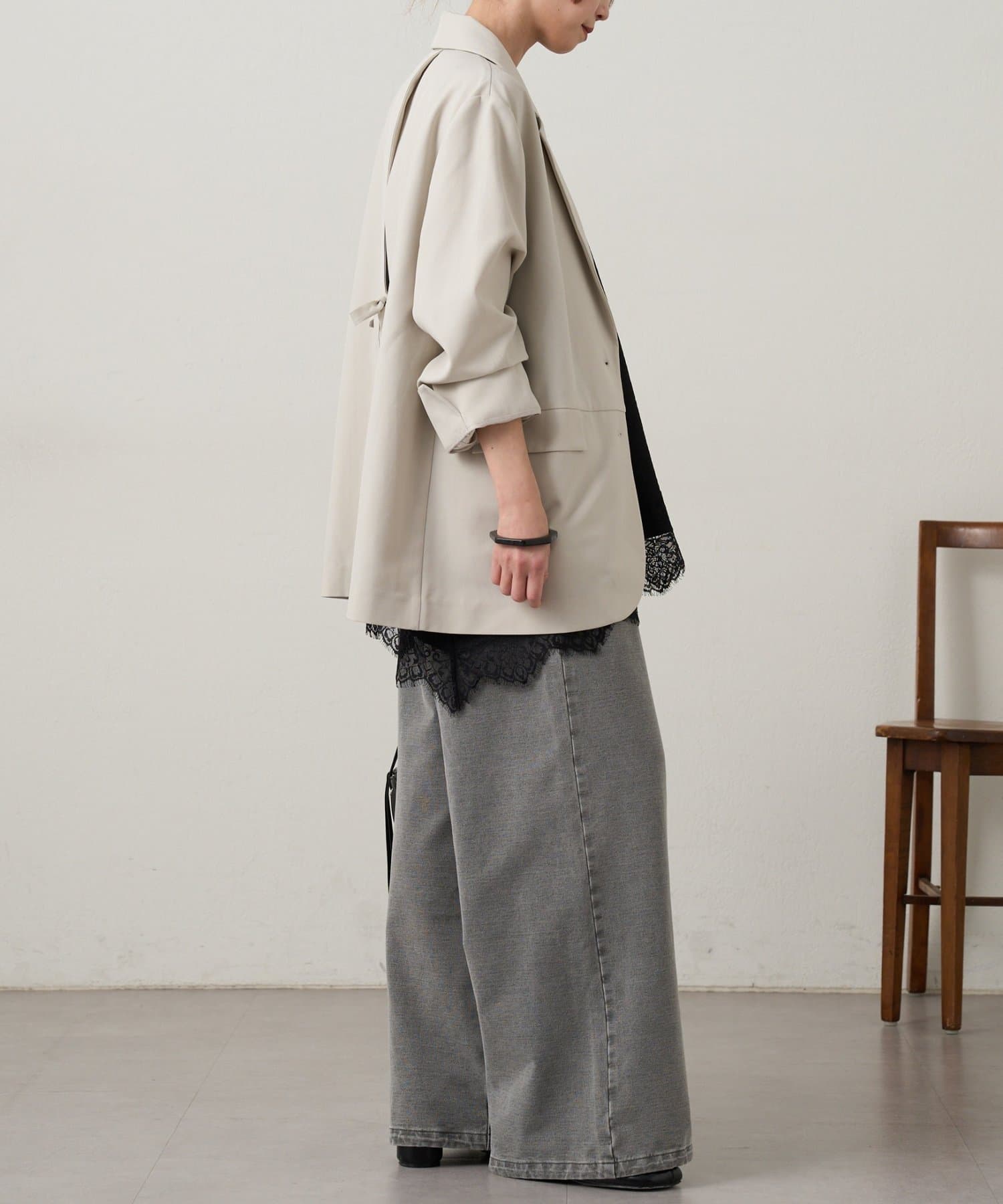 ・裾のドローコードで調節することで、ドロストデニムからストレートデニムまで幅広いスタイリングを楽しんでいただけます。