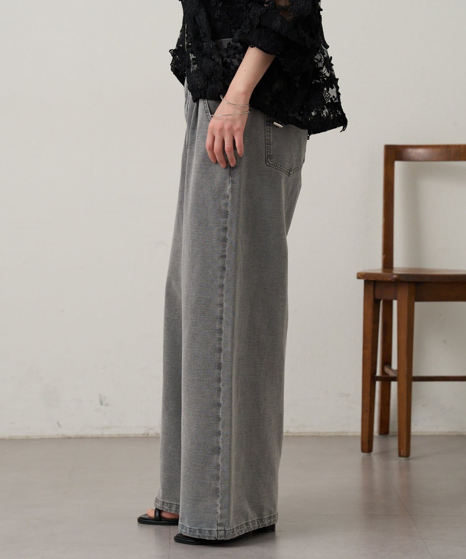 Omekashi(オメカシ) 裾ドロストスウェットデニム