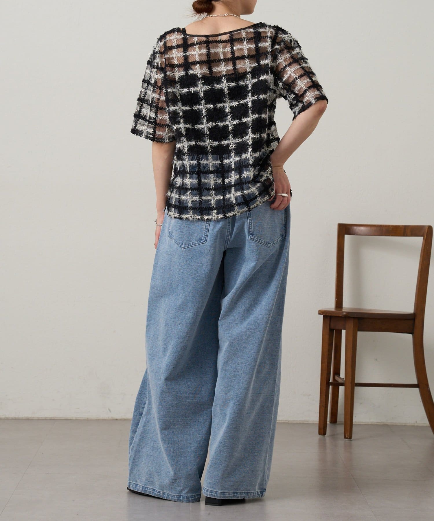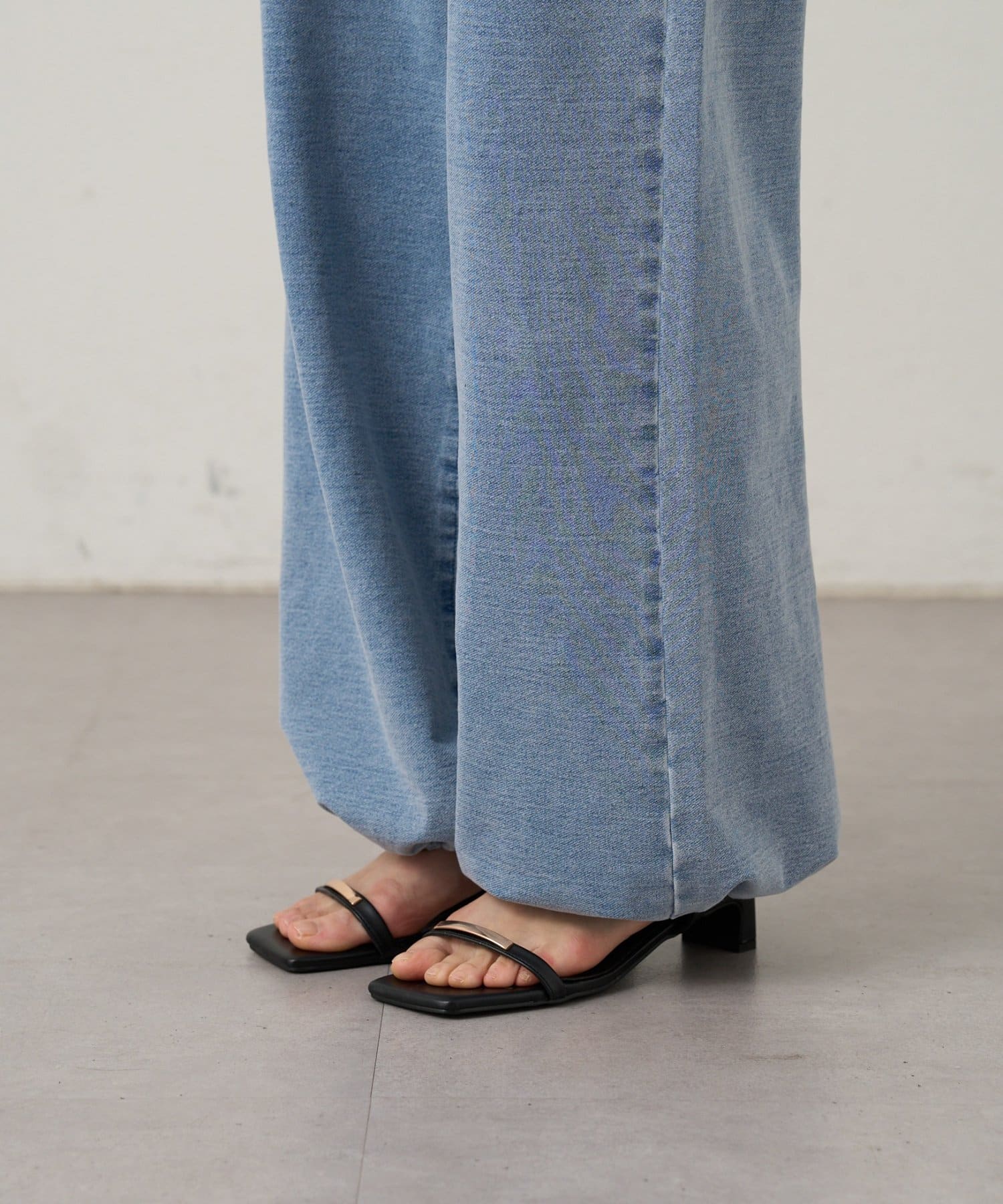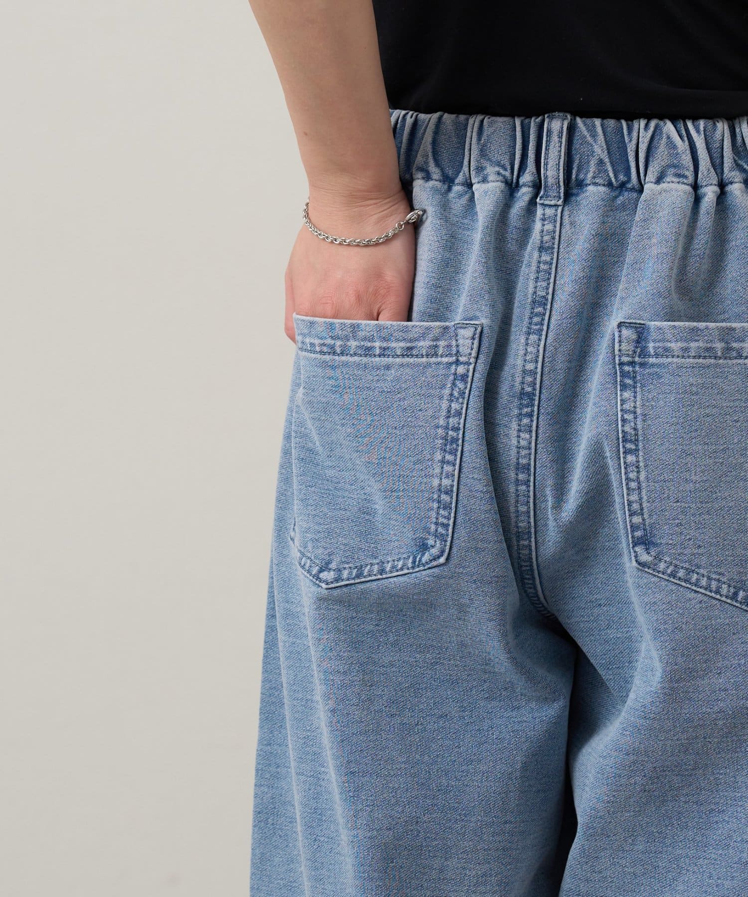 ・裾のドローコードで調節することで、ドロストデニムからストレートデニムまで幅広いスタイリングを楽しんでいただけます。
