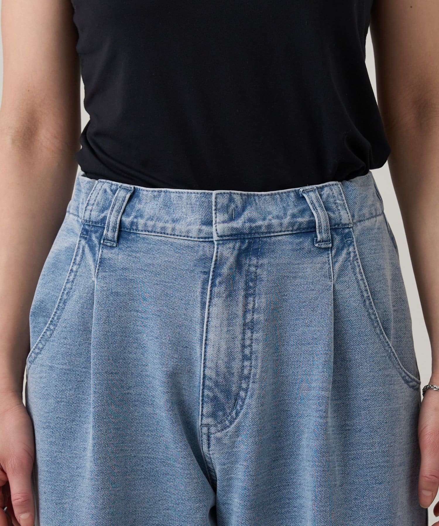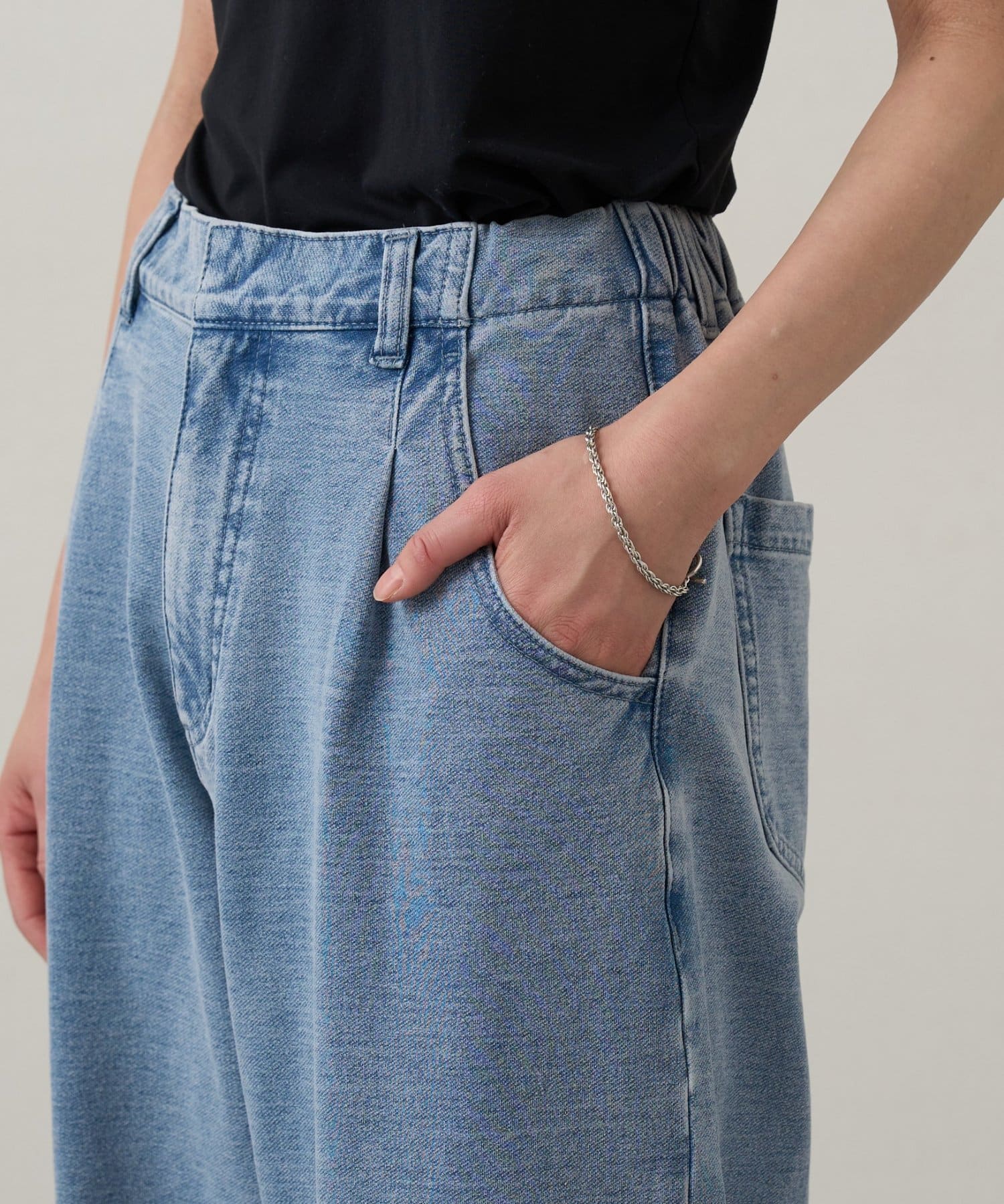 立体的なシルエットが映える裾ドロストスウェットデニム
