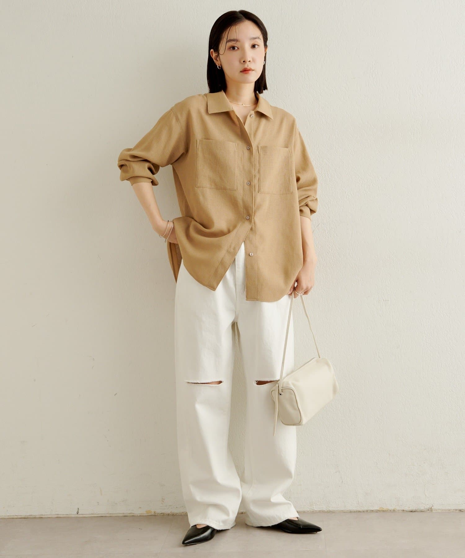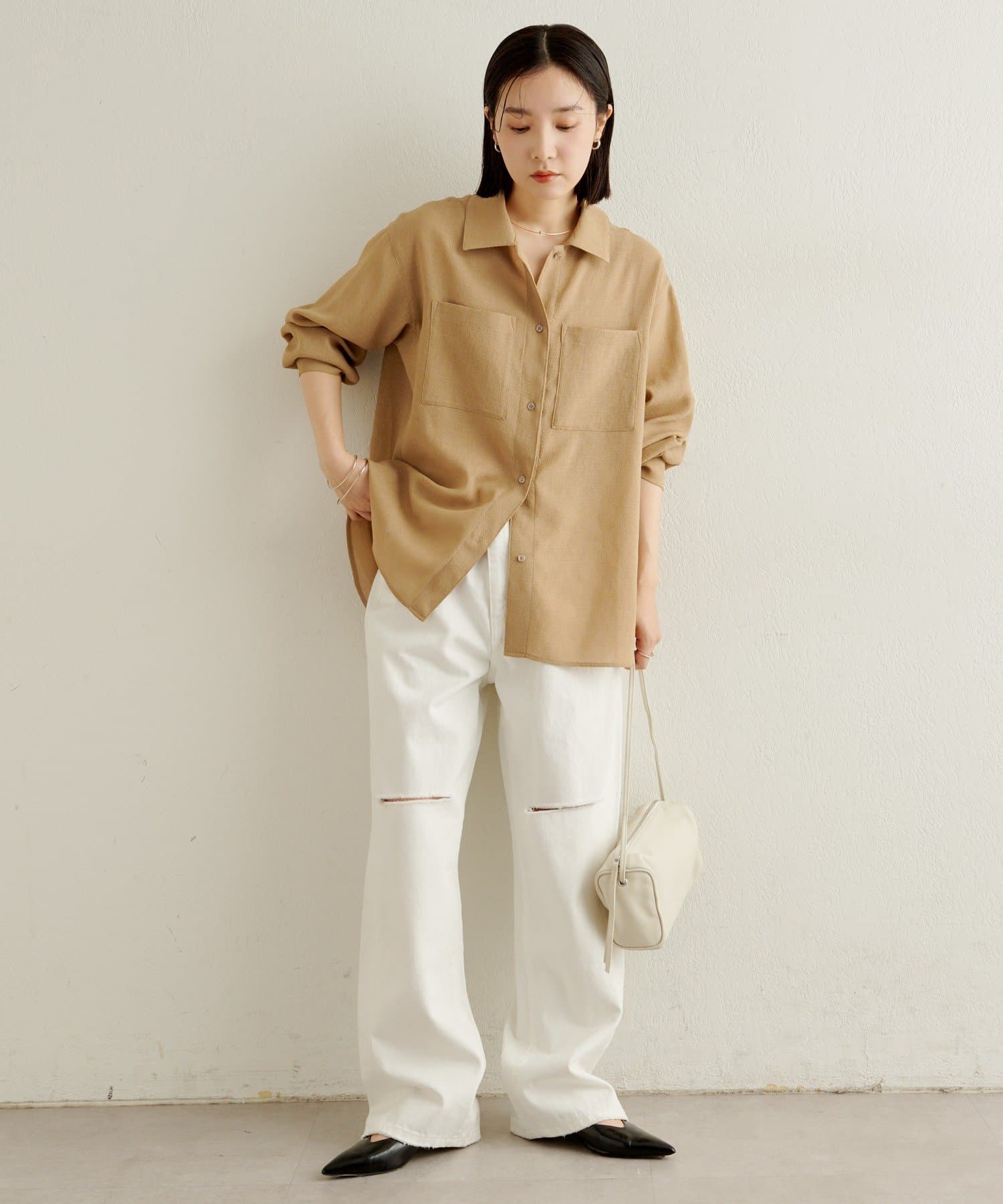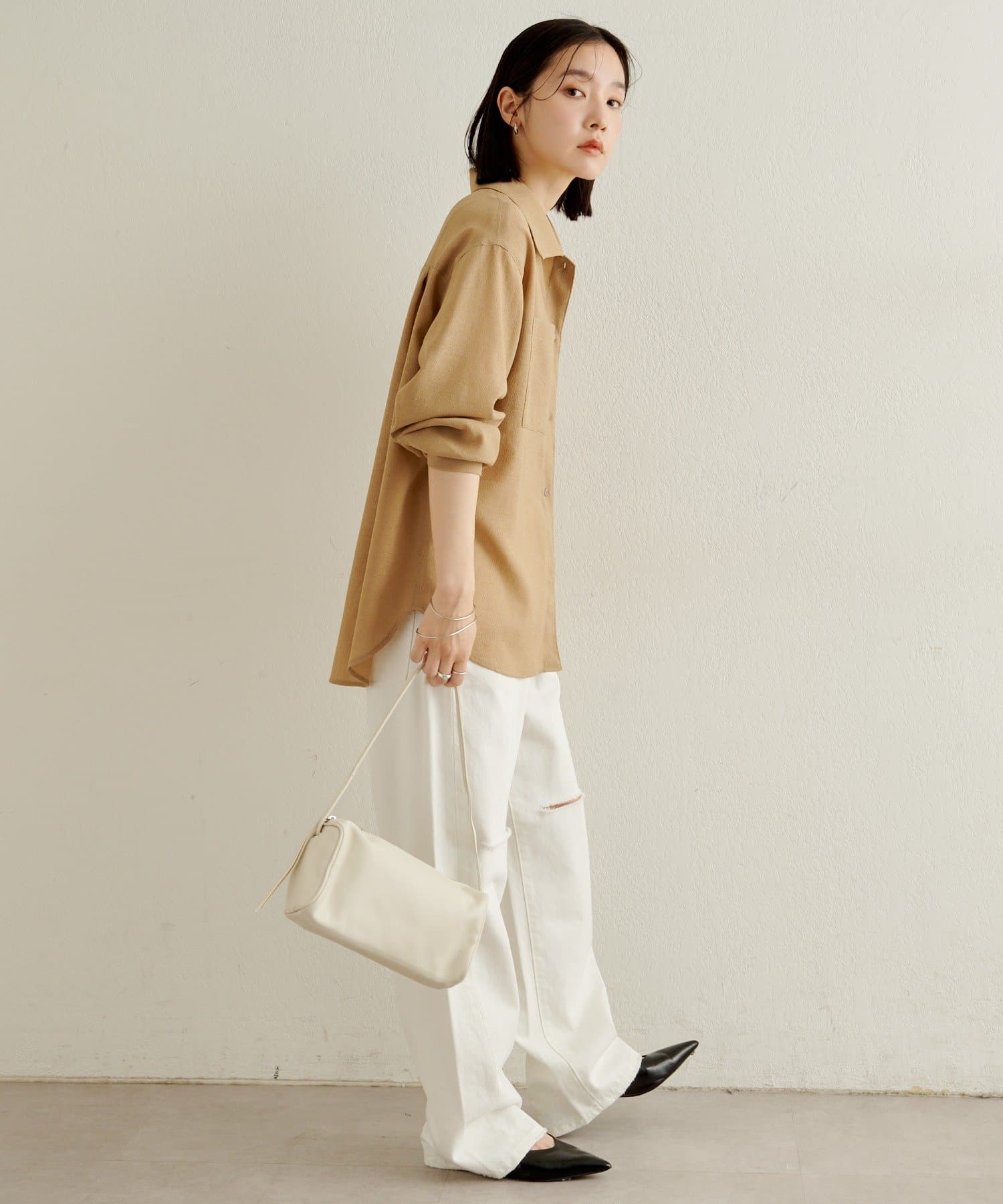 ・デニムやスラックス、イージーパンツなど幅広いボトムと相性がよく、デイリーからきれいめスタイルまで対応する万能アイテムです。
