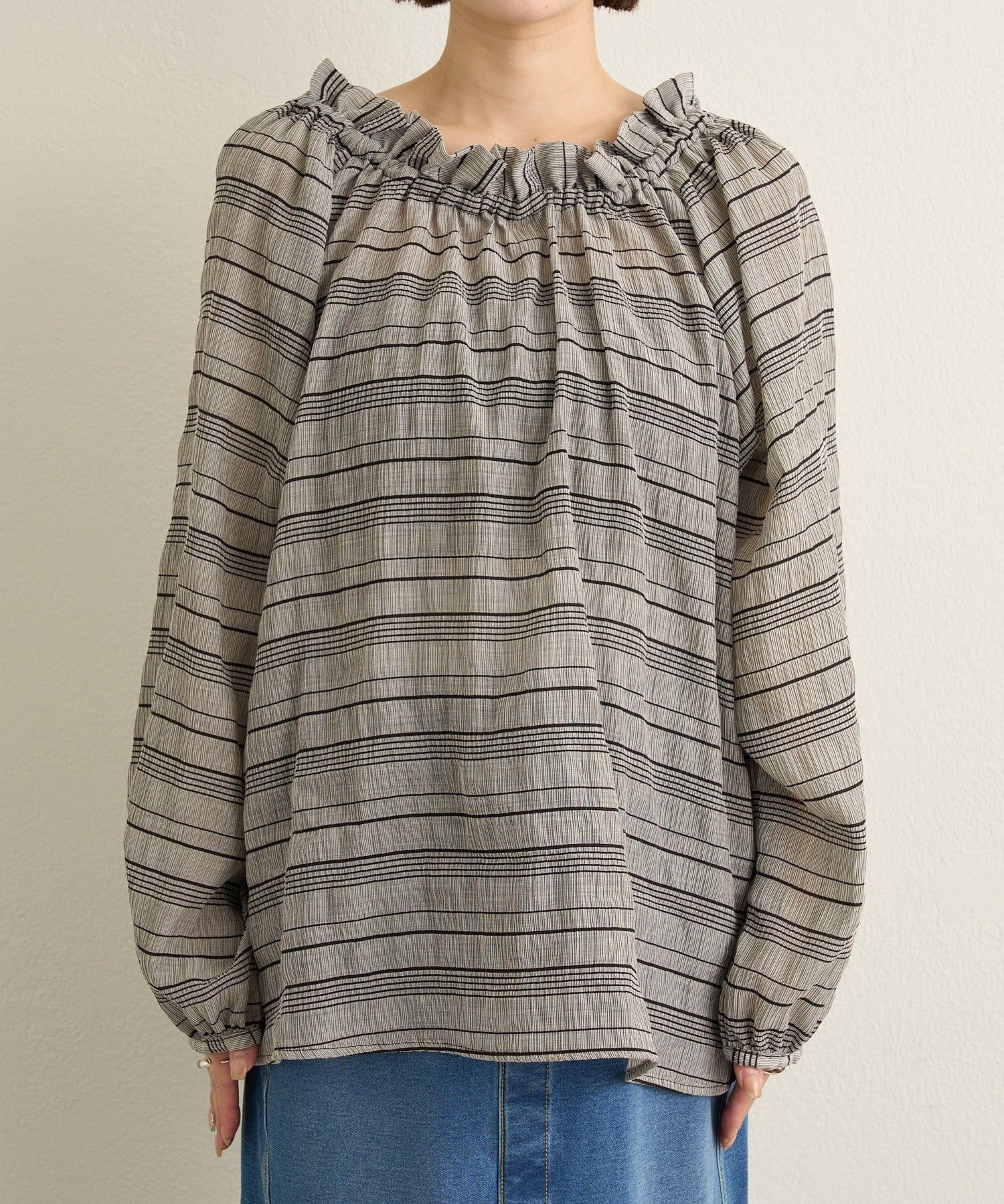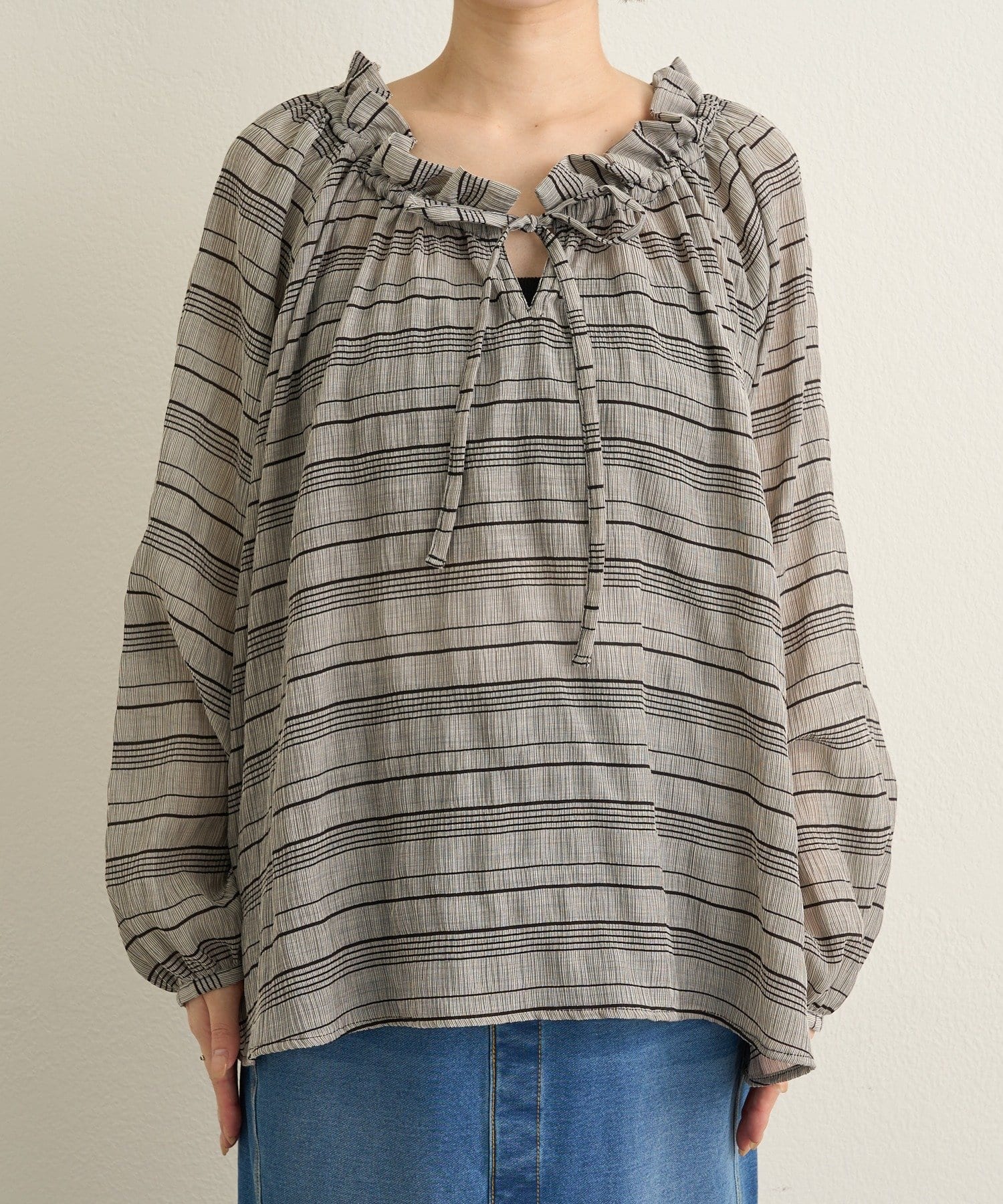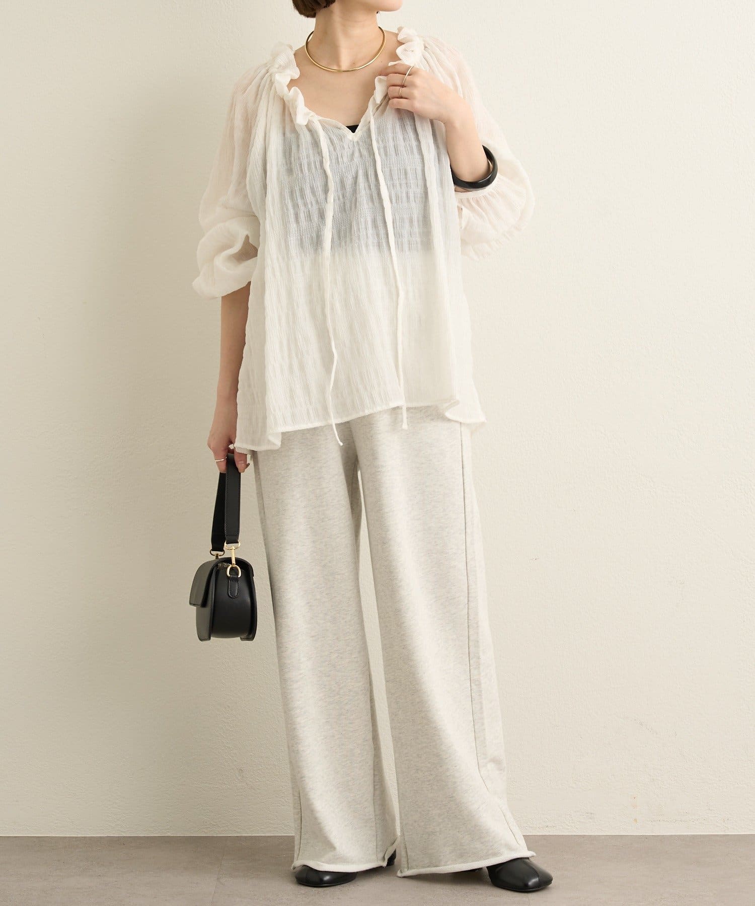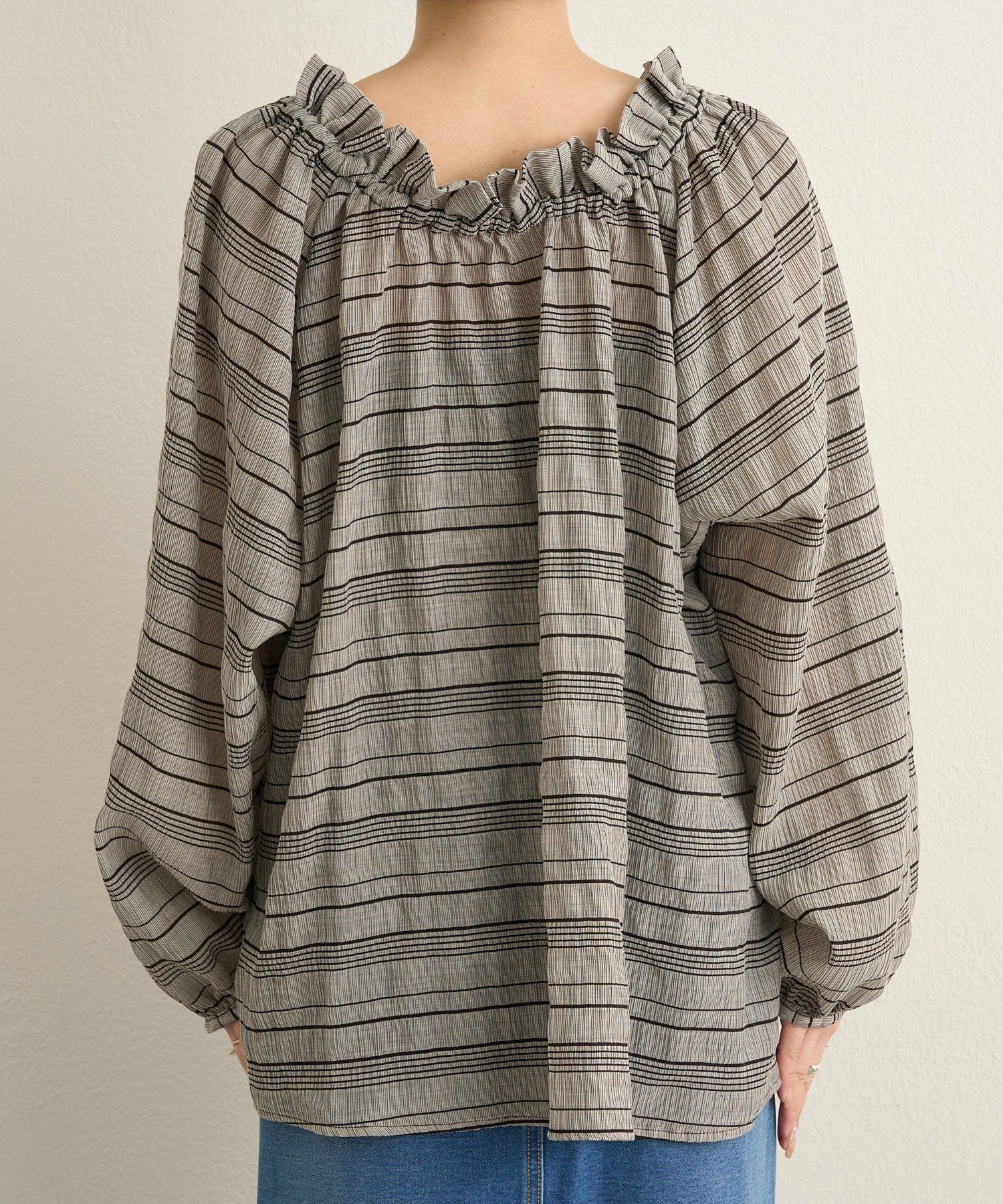 ・前後両前仕様と、胸元の紐でネックの空き具合も調節可能で、オフショルやワンショルなどスタイリングによって変えていただけます