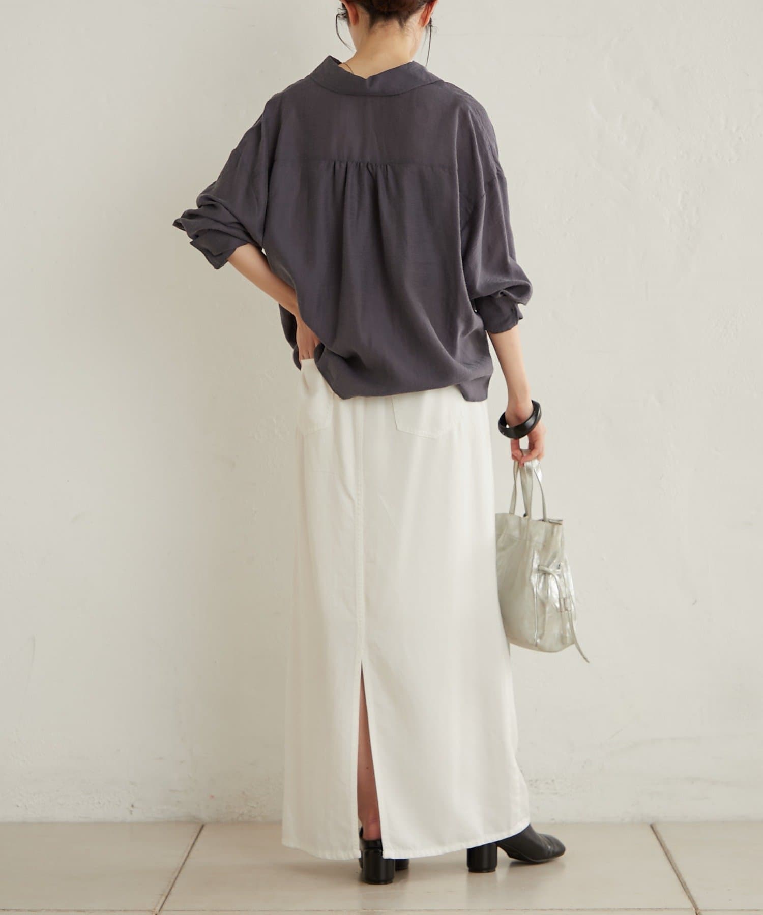 ・ゆとりのあるシルエットで身体のラインを拾いずらく体型カバーも◎