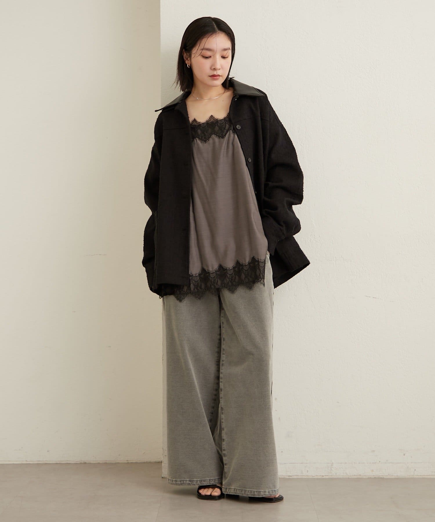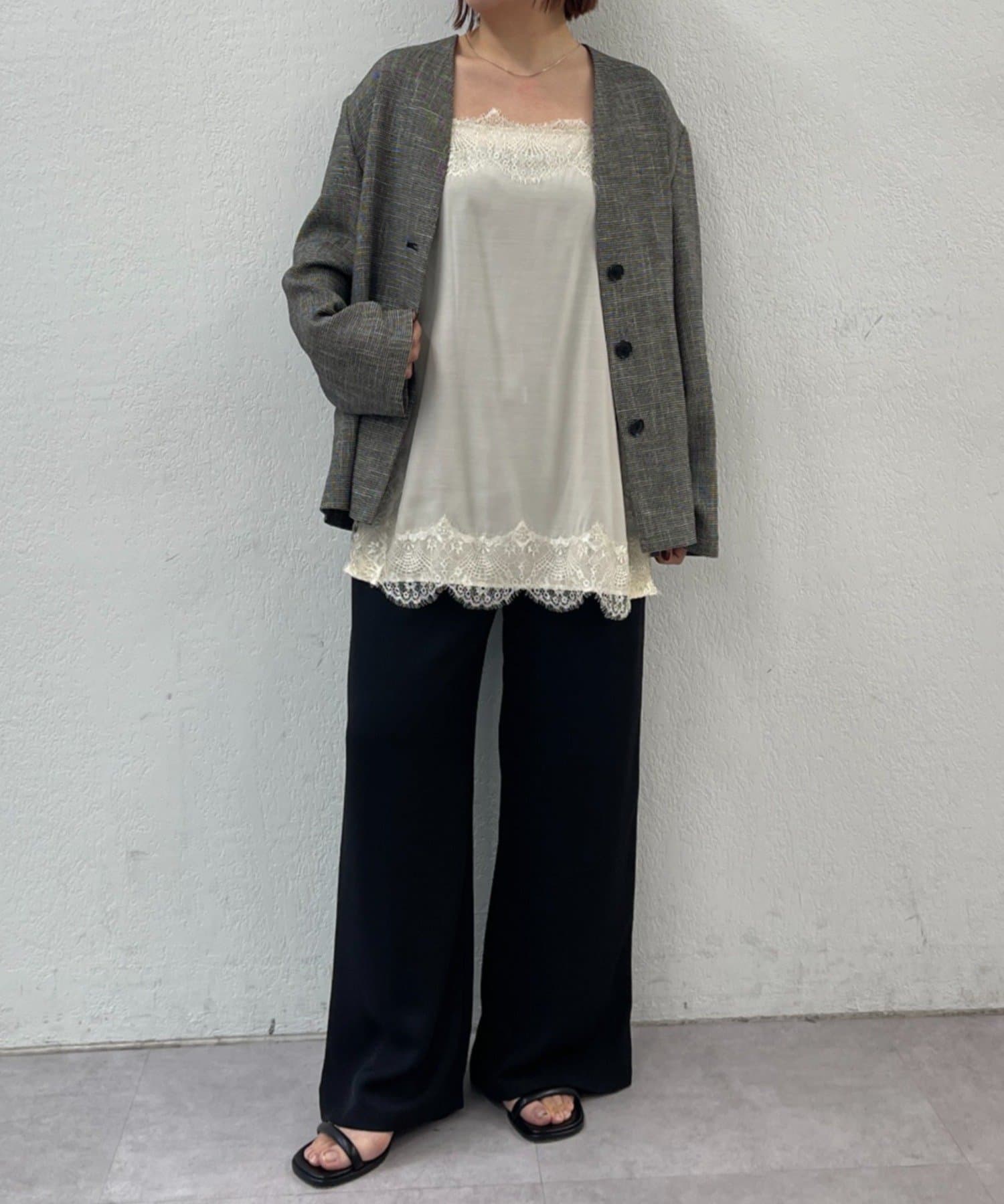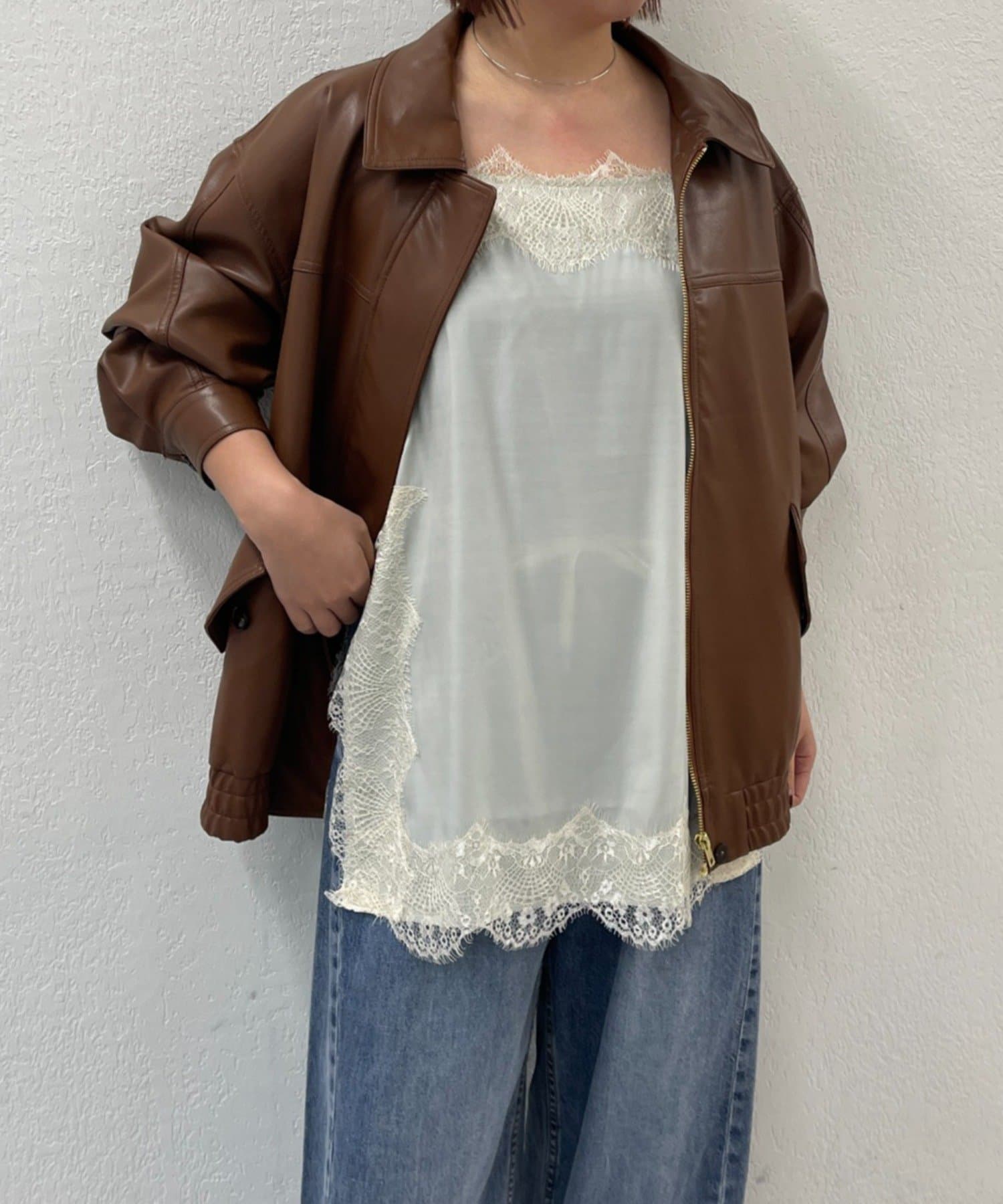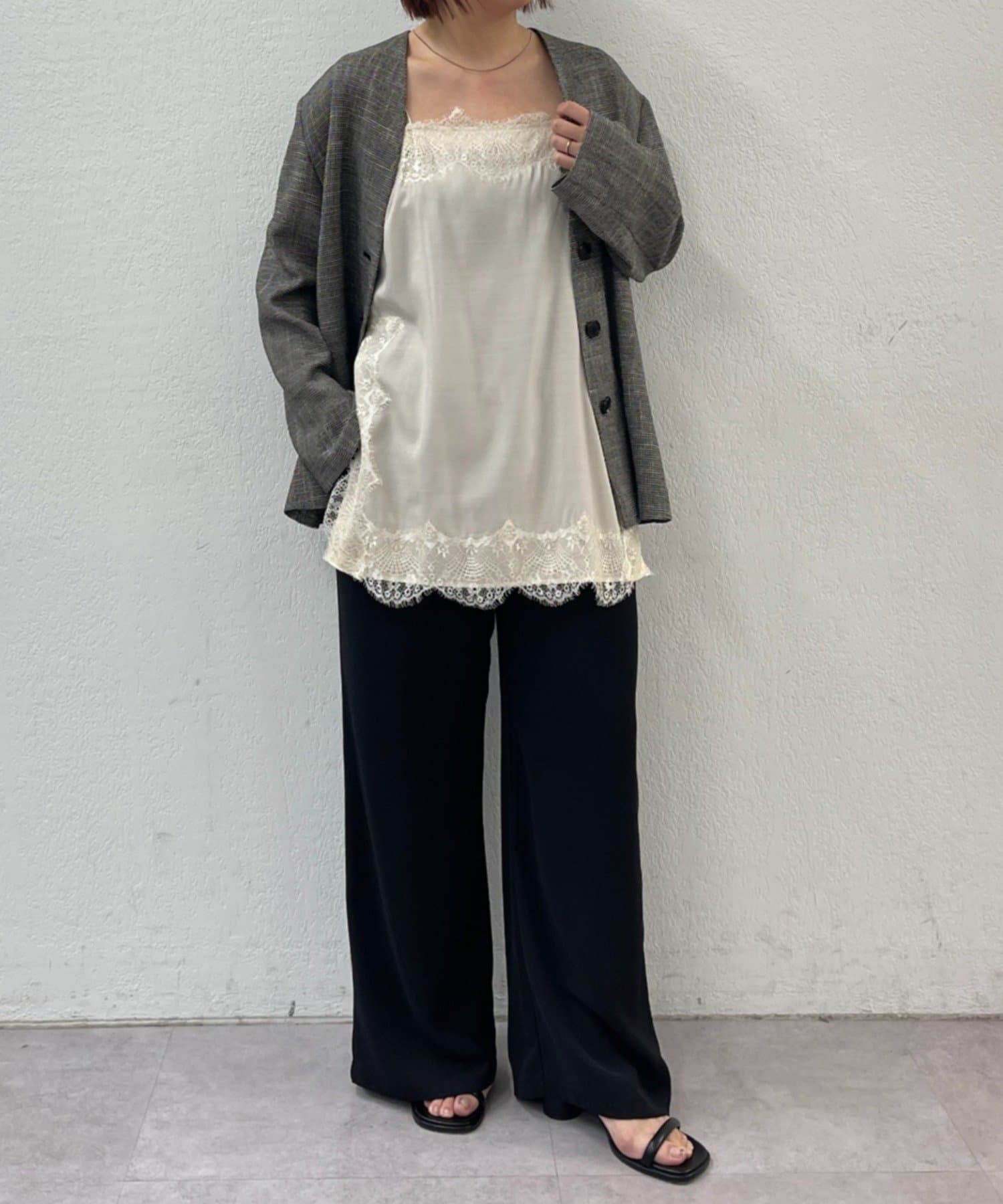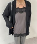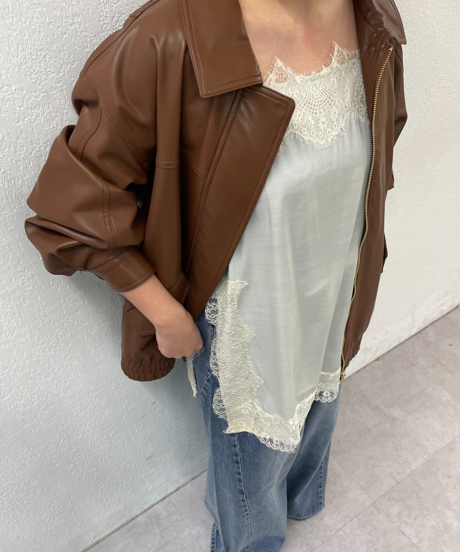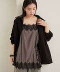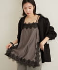 ・上品な艶感のある生地にレースをあしらうことで、大人可愛いコーデが叶う一枚。