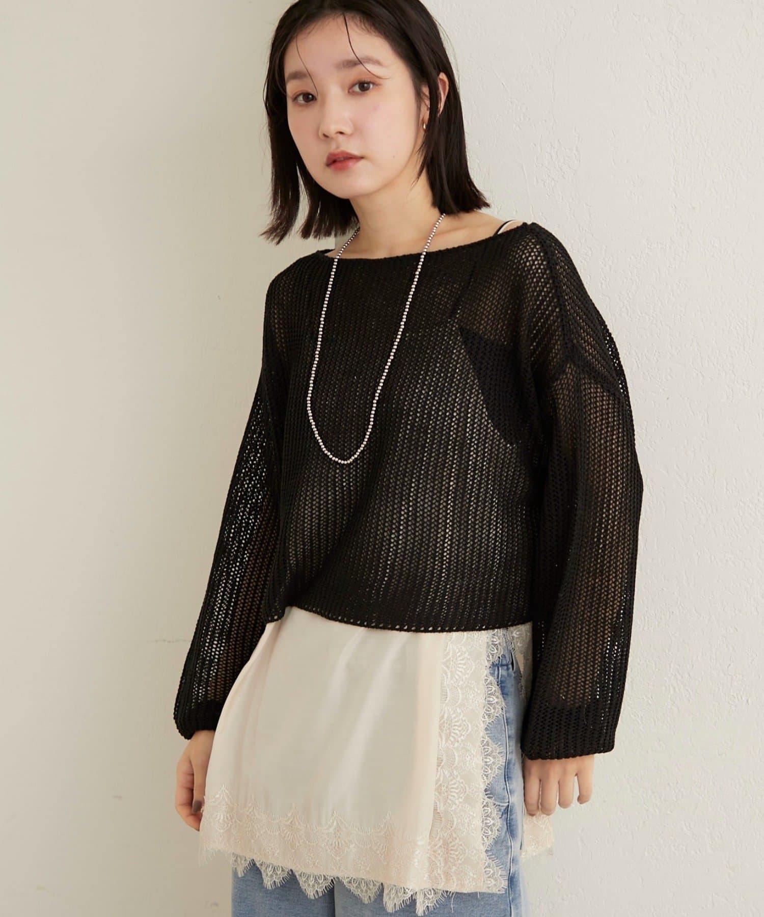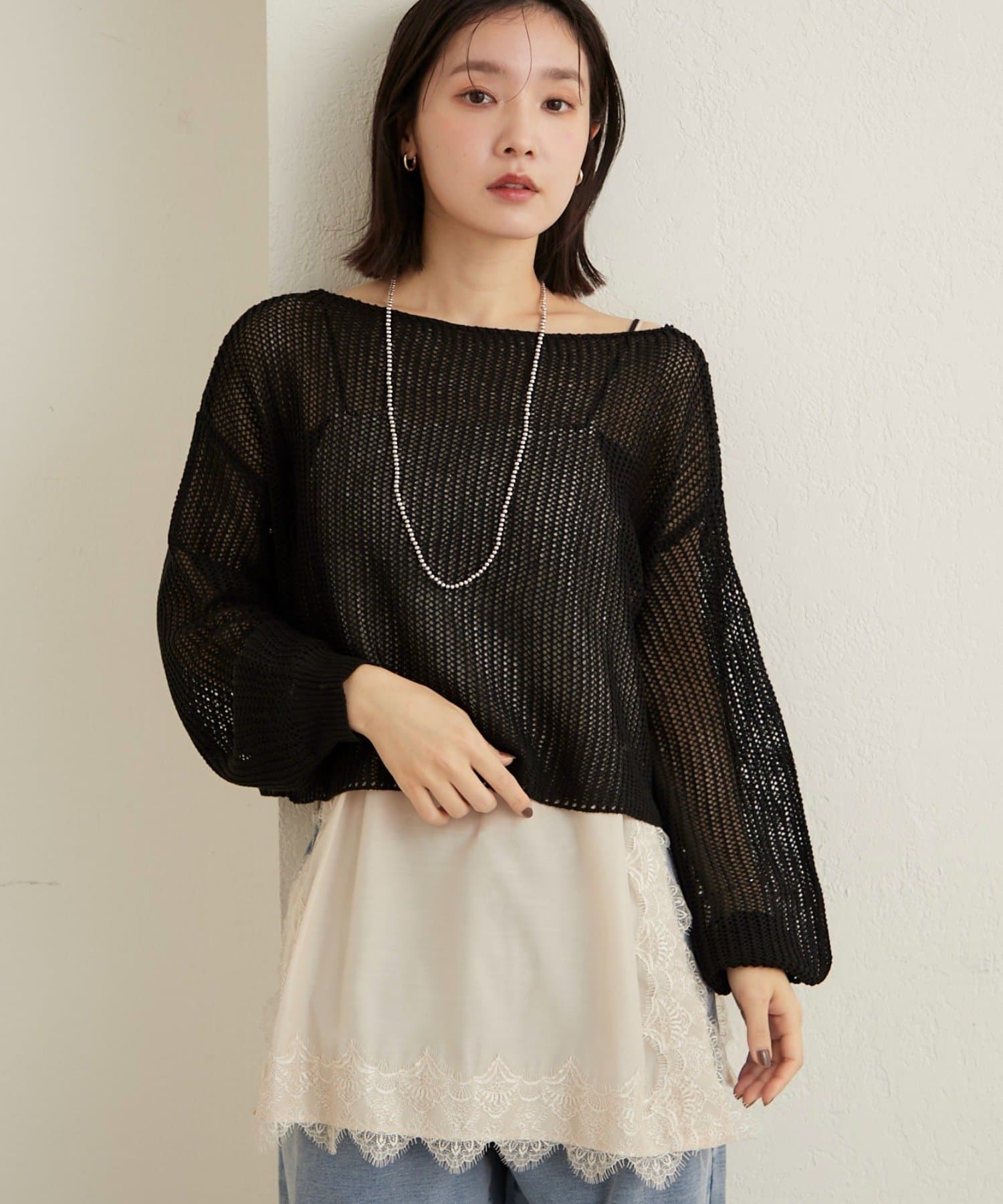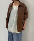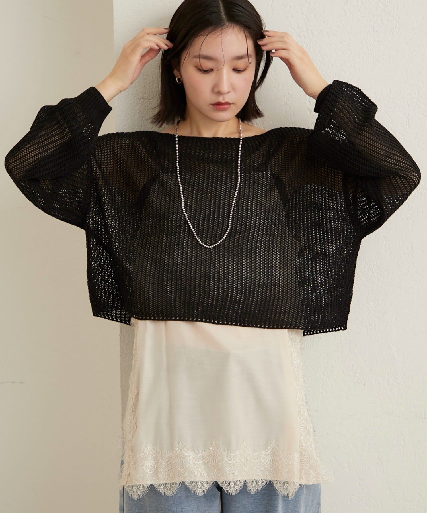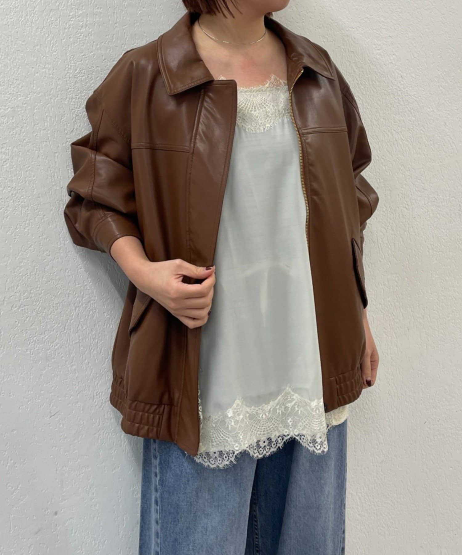 ・上品な艶感のある生地にレースをあしらうことで、大人可愛いコーデが叶う一枚。