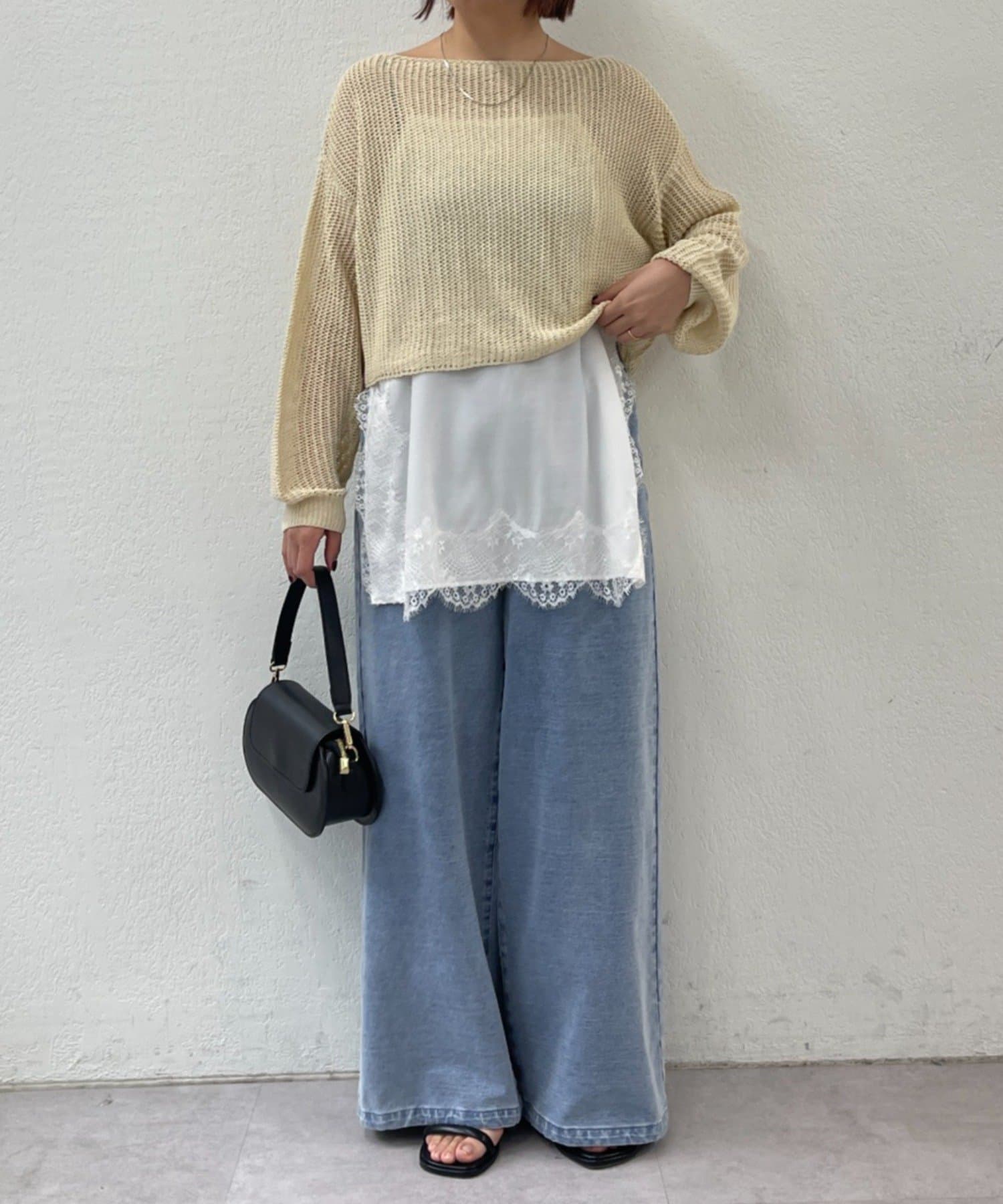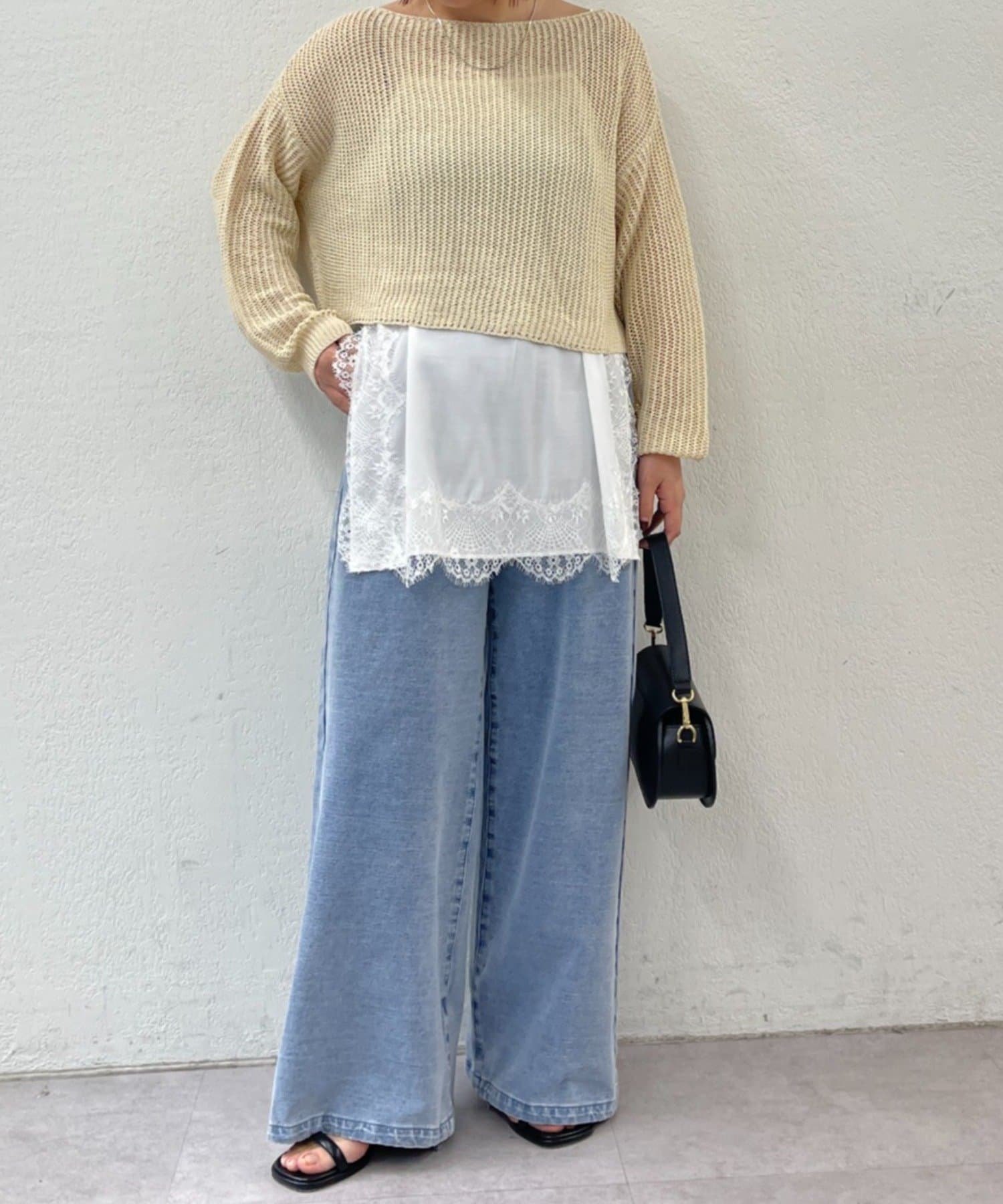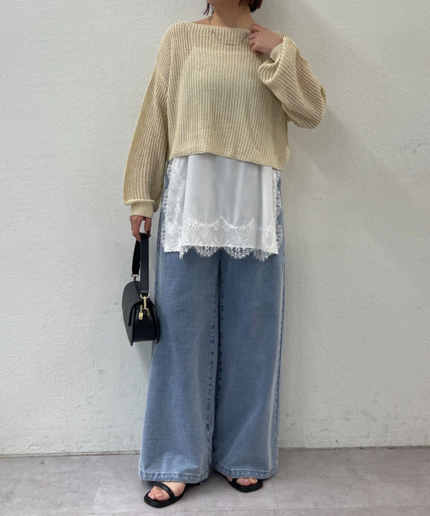 ・デニムやカーゴパンツと合わせて、甘さを抑えた大人の抜け感スタイルがおすすめ◎