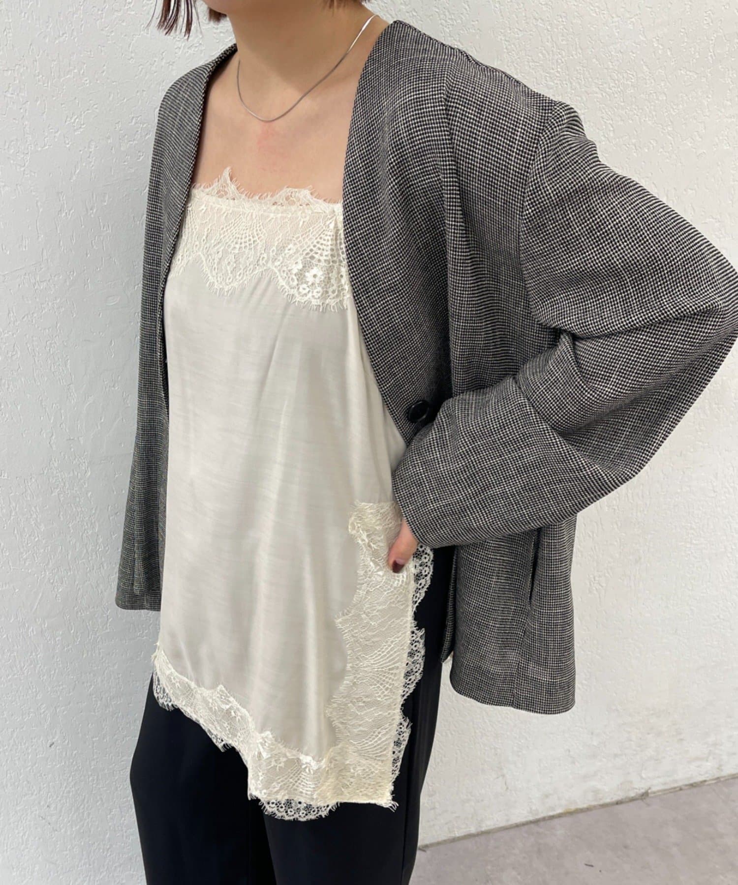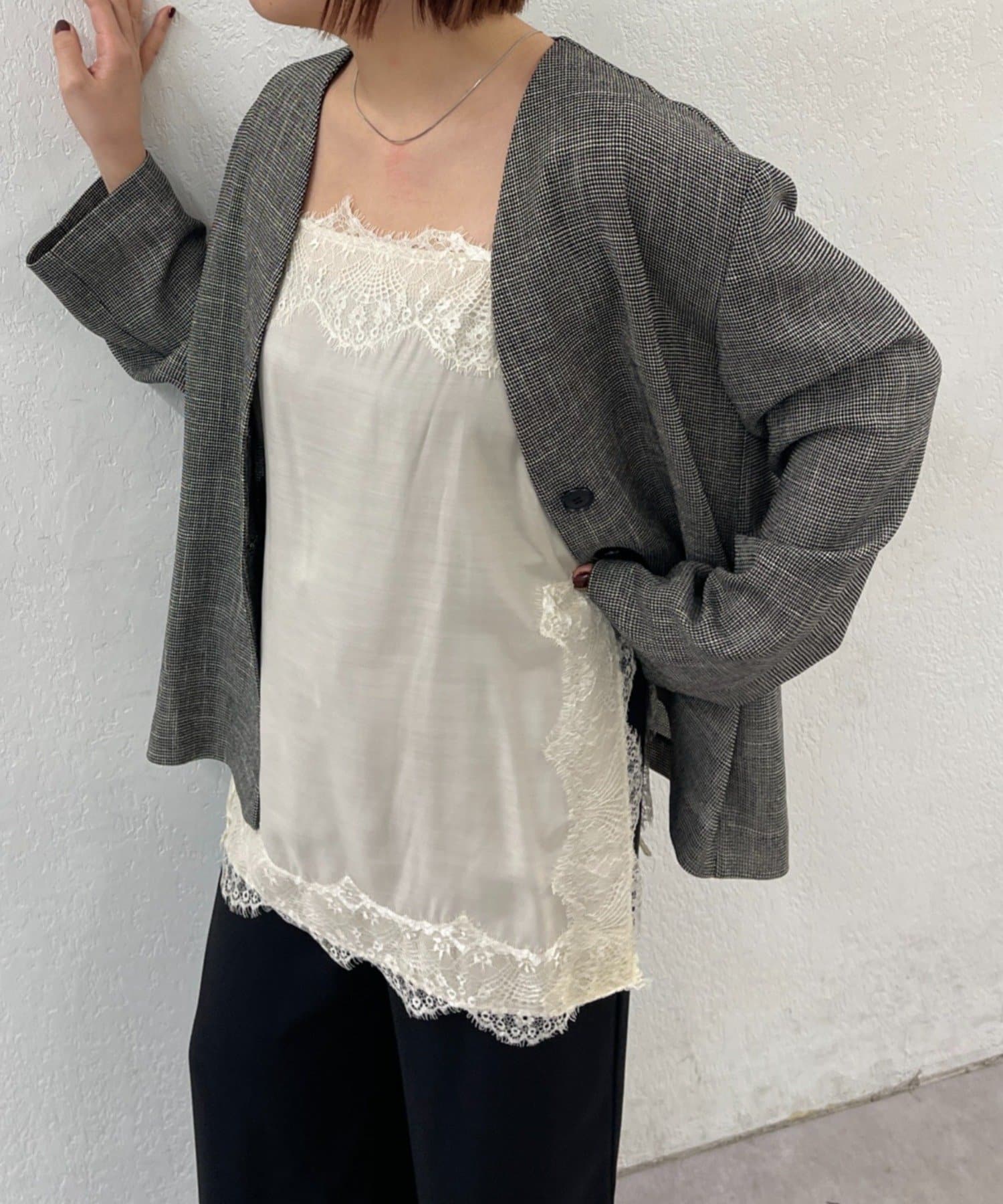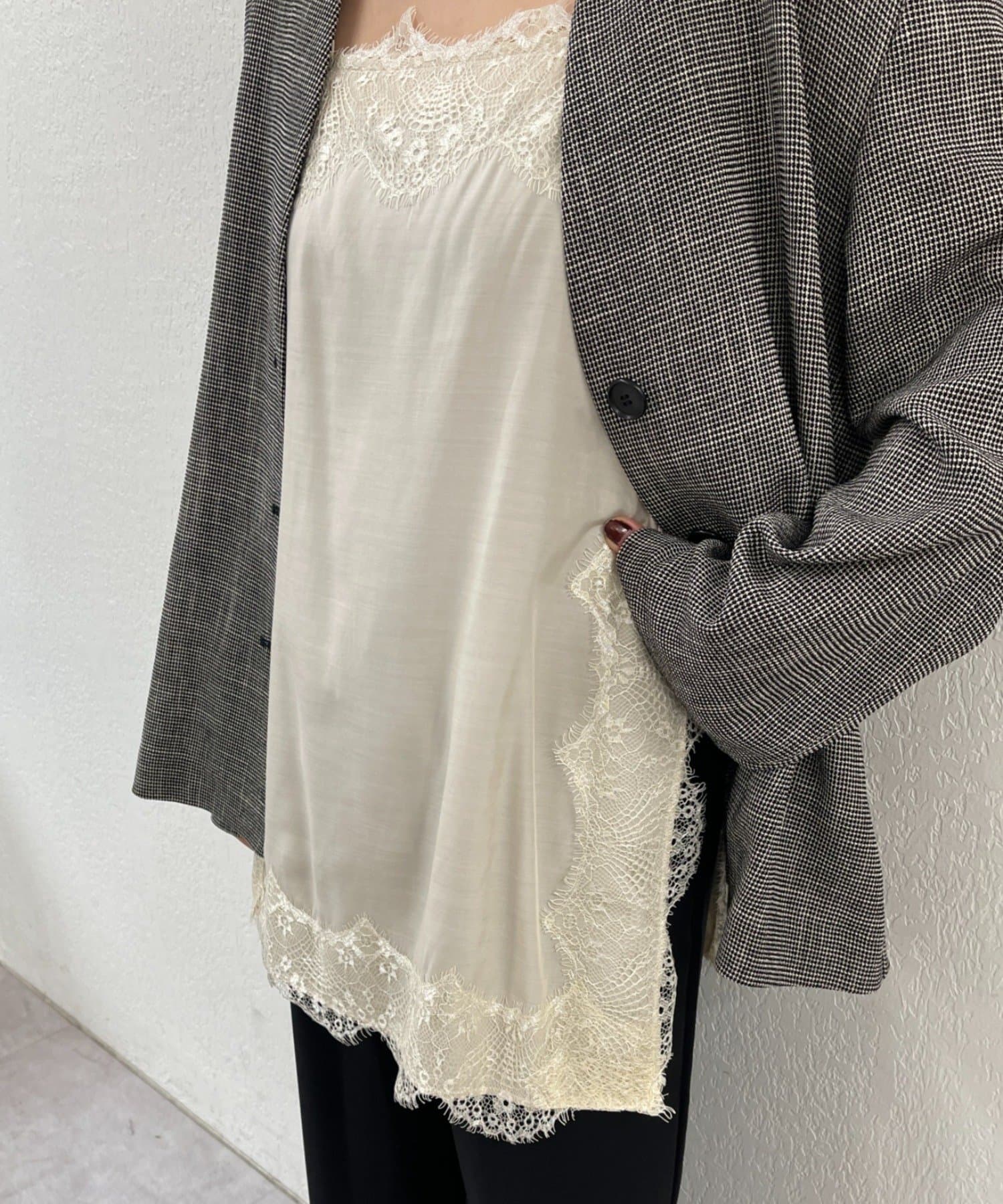 ・繊細なレースが目を惹く、スリットレースキャミソール