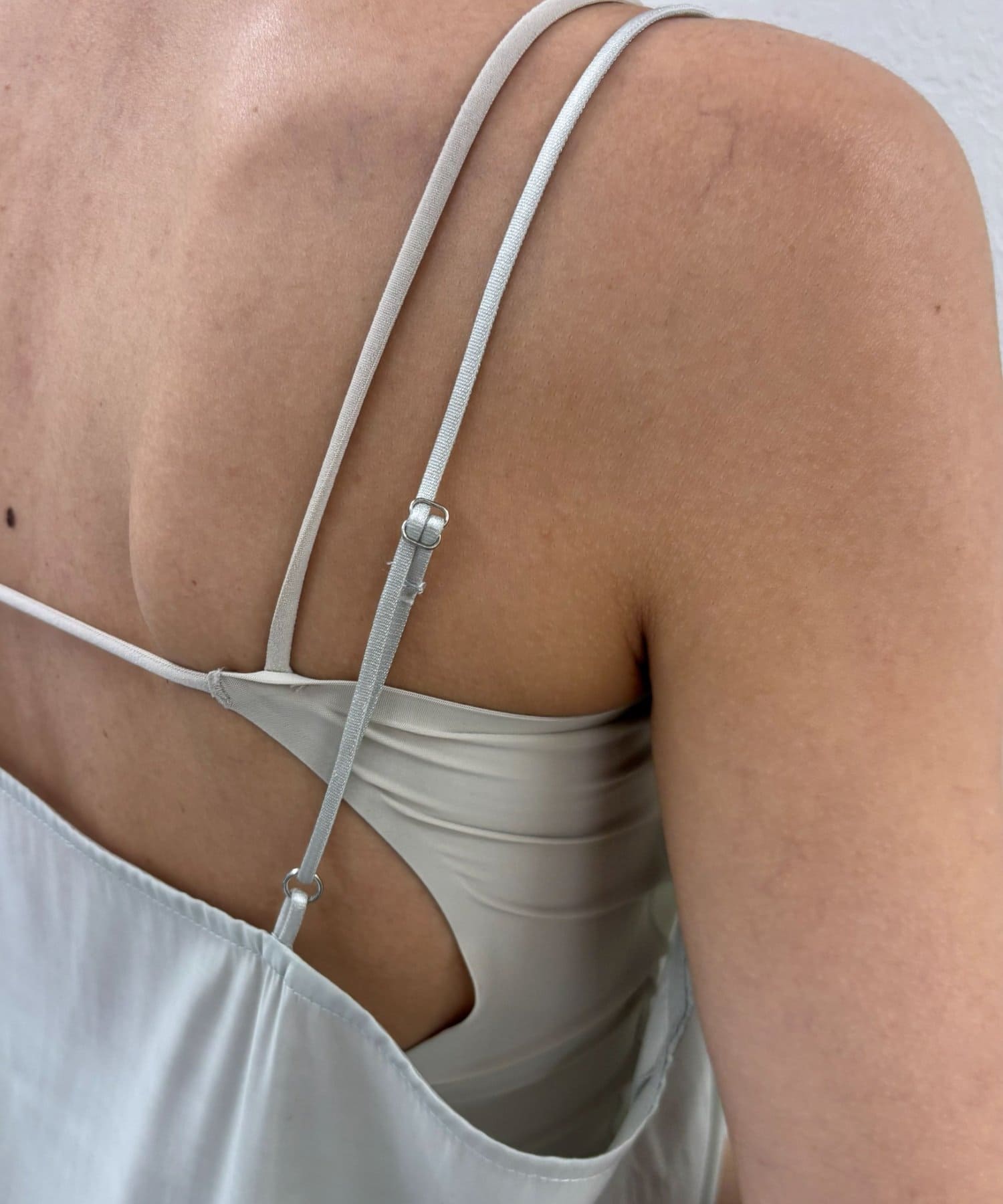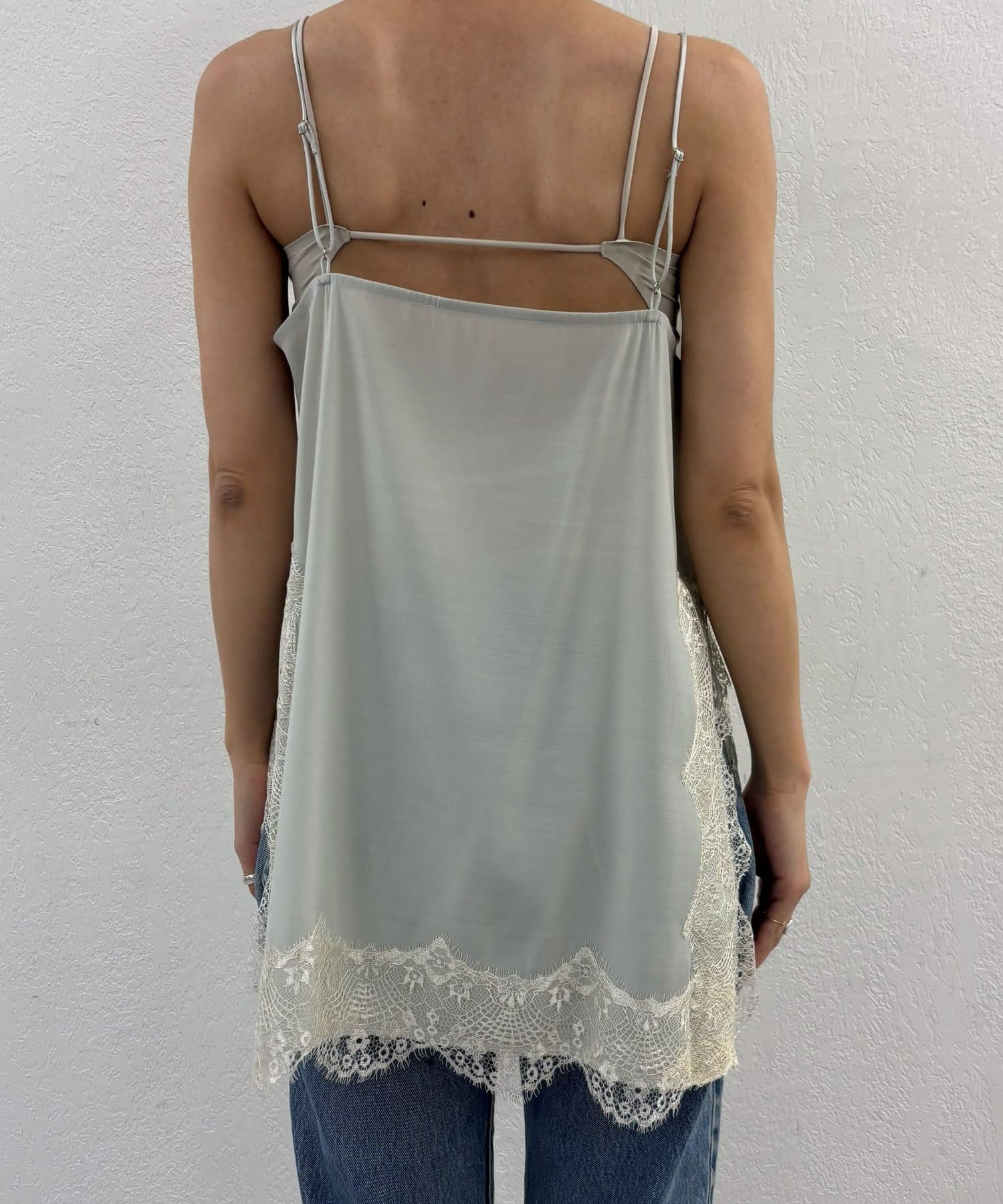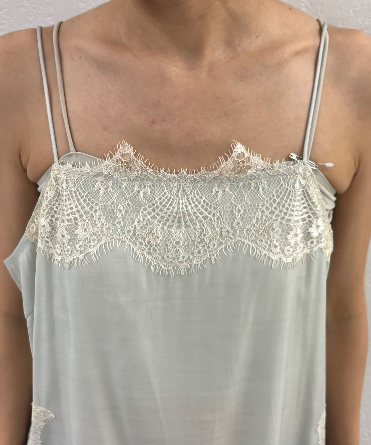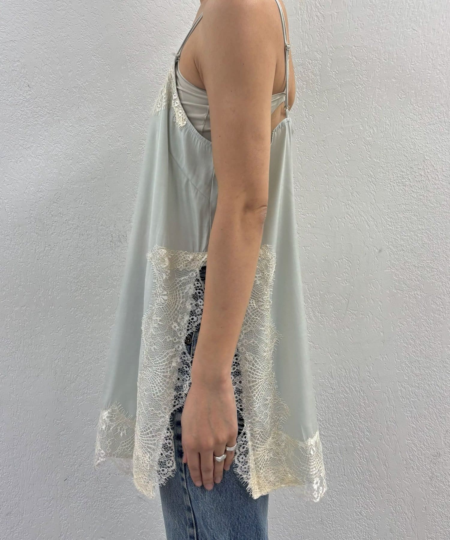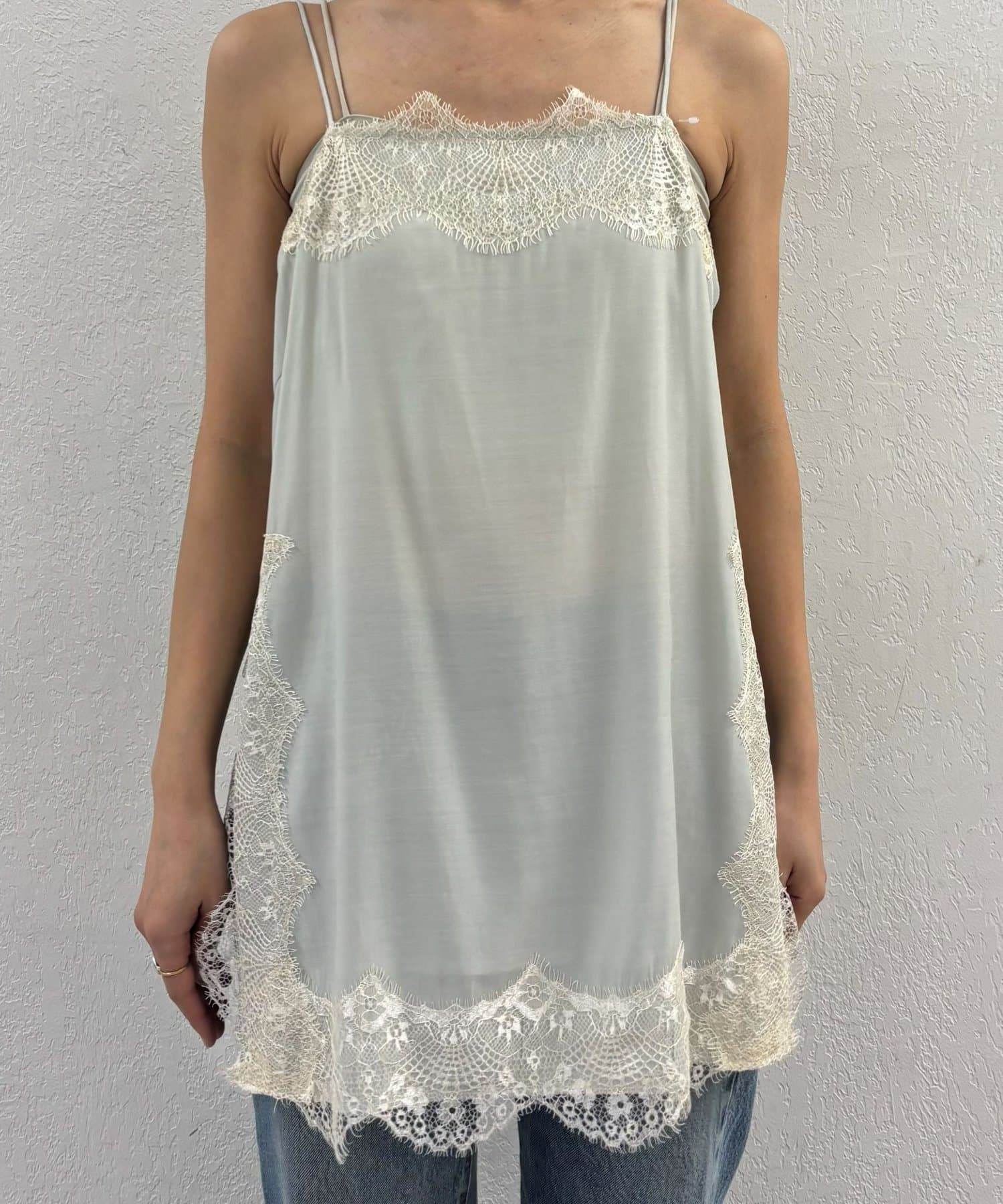 ・繊細なレースが目を惹く、スリットレースキャミソール