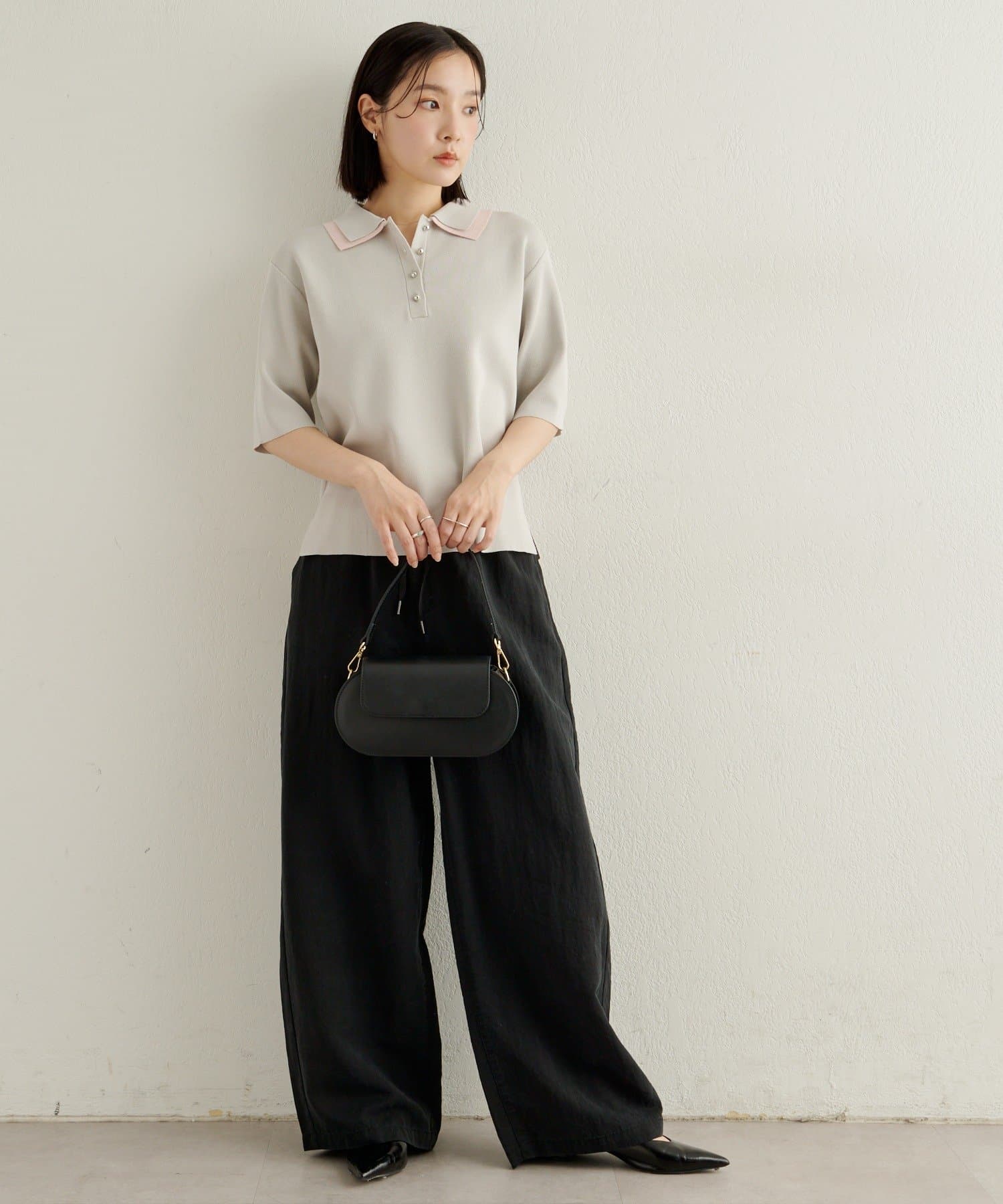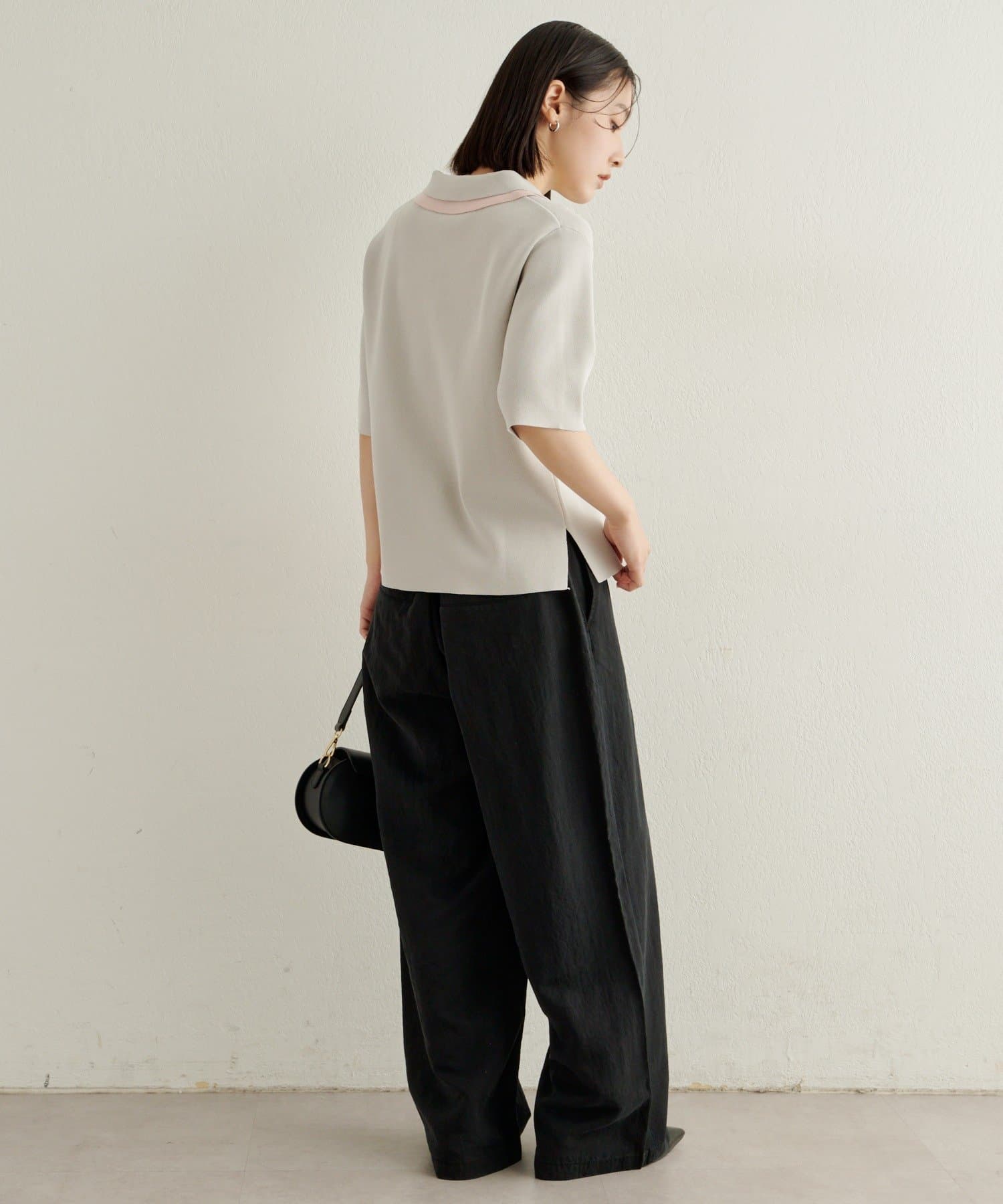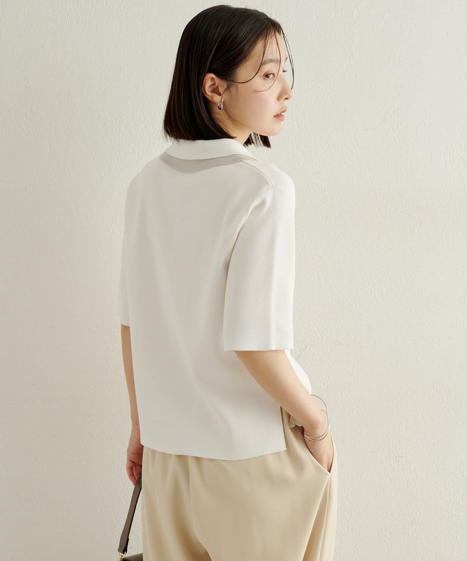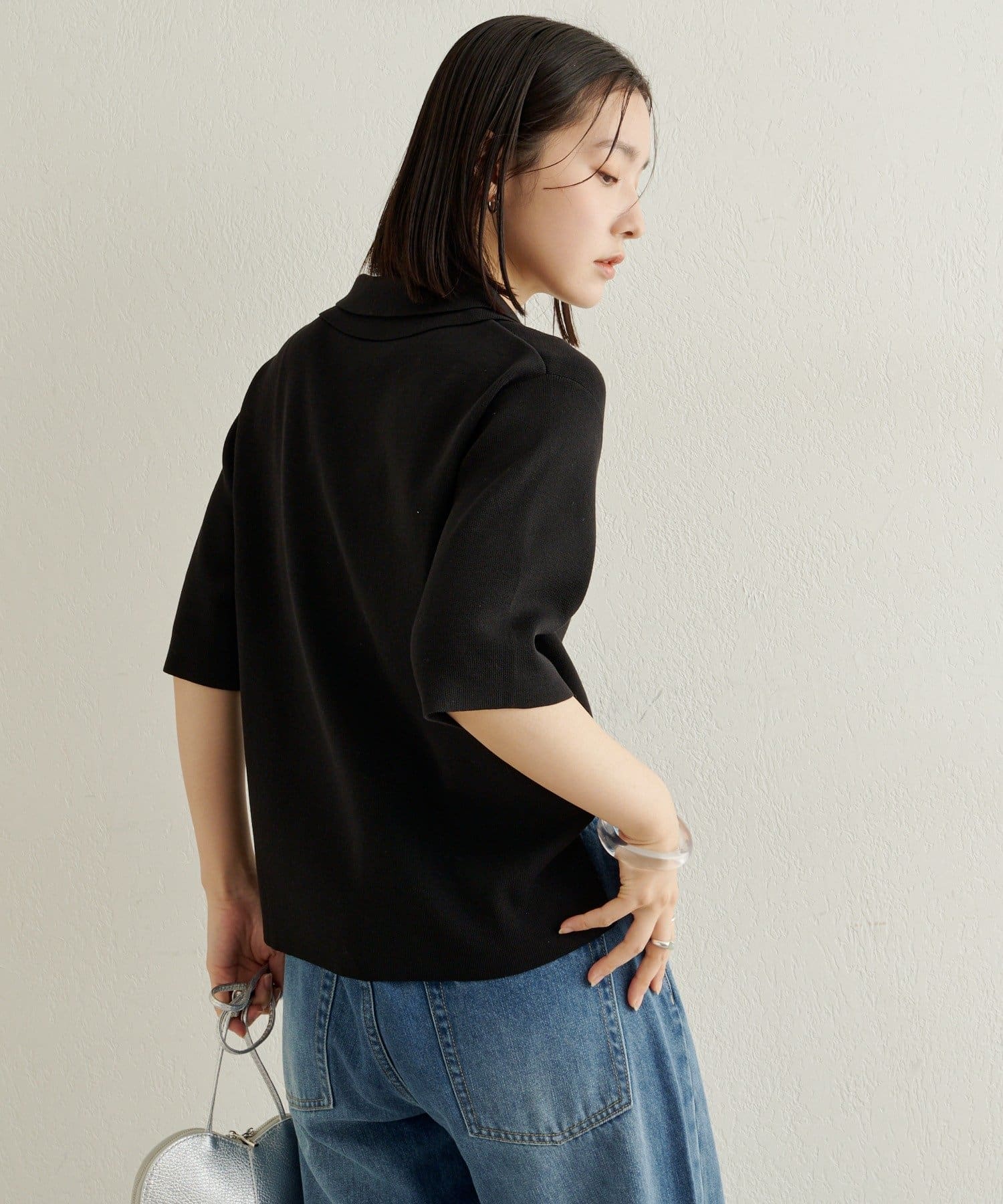 ・伸縮性のあるリブの編地がボディラインに程よくフィット。上半身をすっきりと見せてくれます。