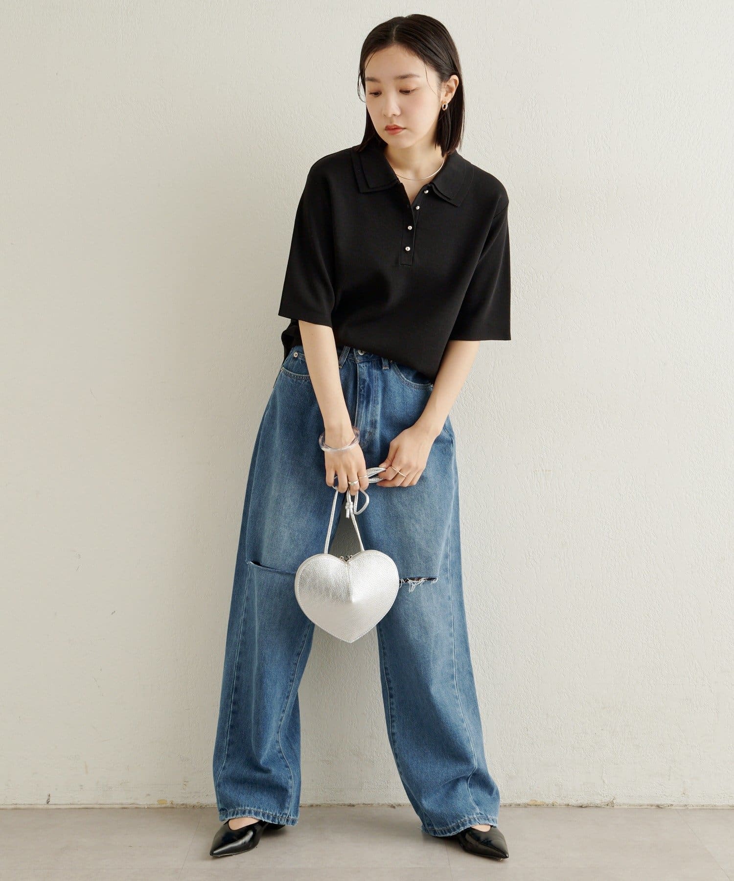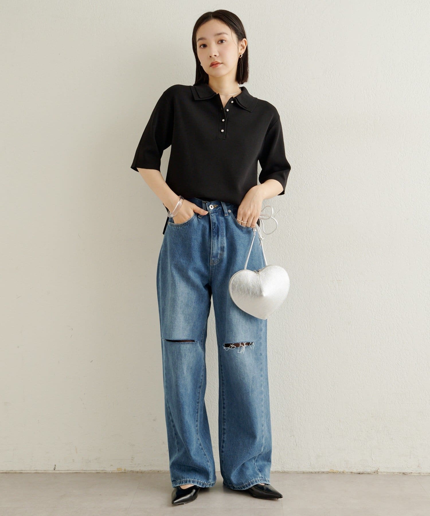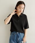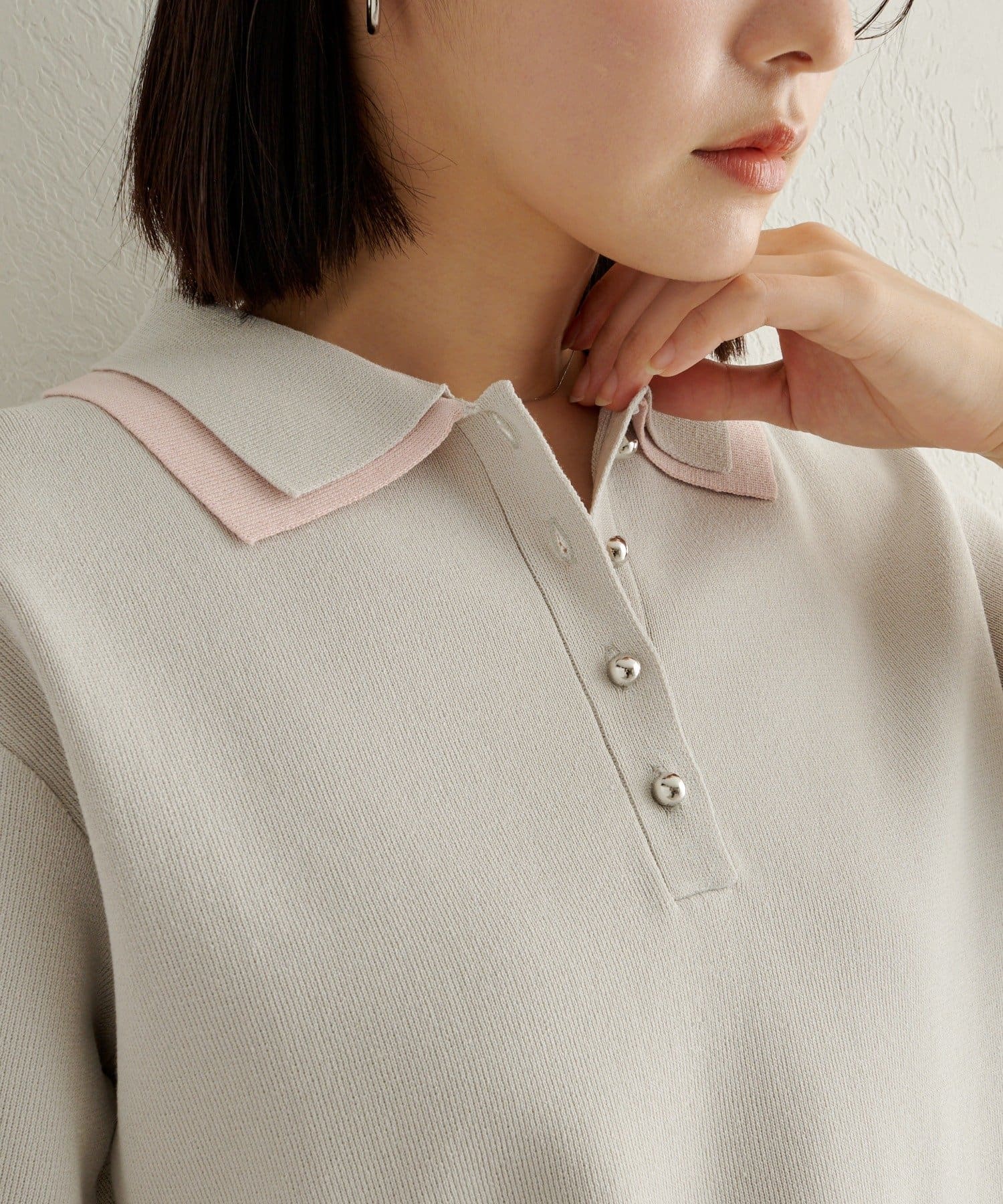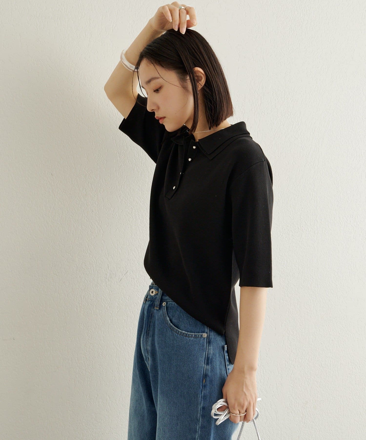 ・伸縮性のあるリブの編地がボディラインに程よくフィット。上半身をすっきりと見せてくれます。