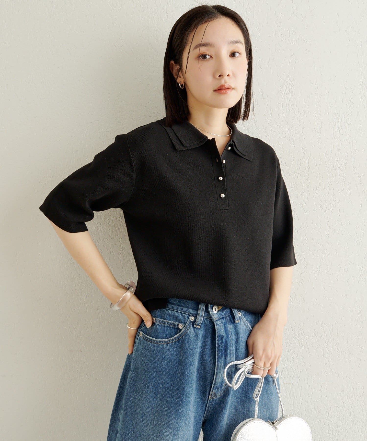 ・さらっとしたニット生地が特徴で、シンプルながらも一枚で着映えします。