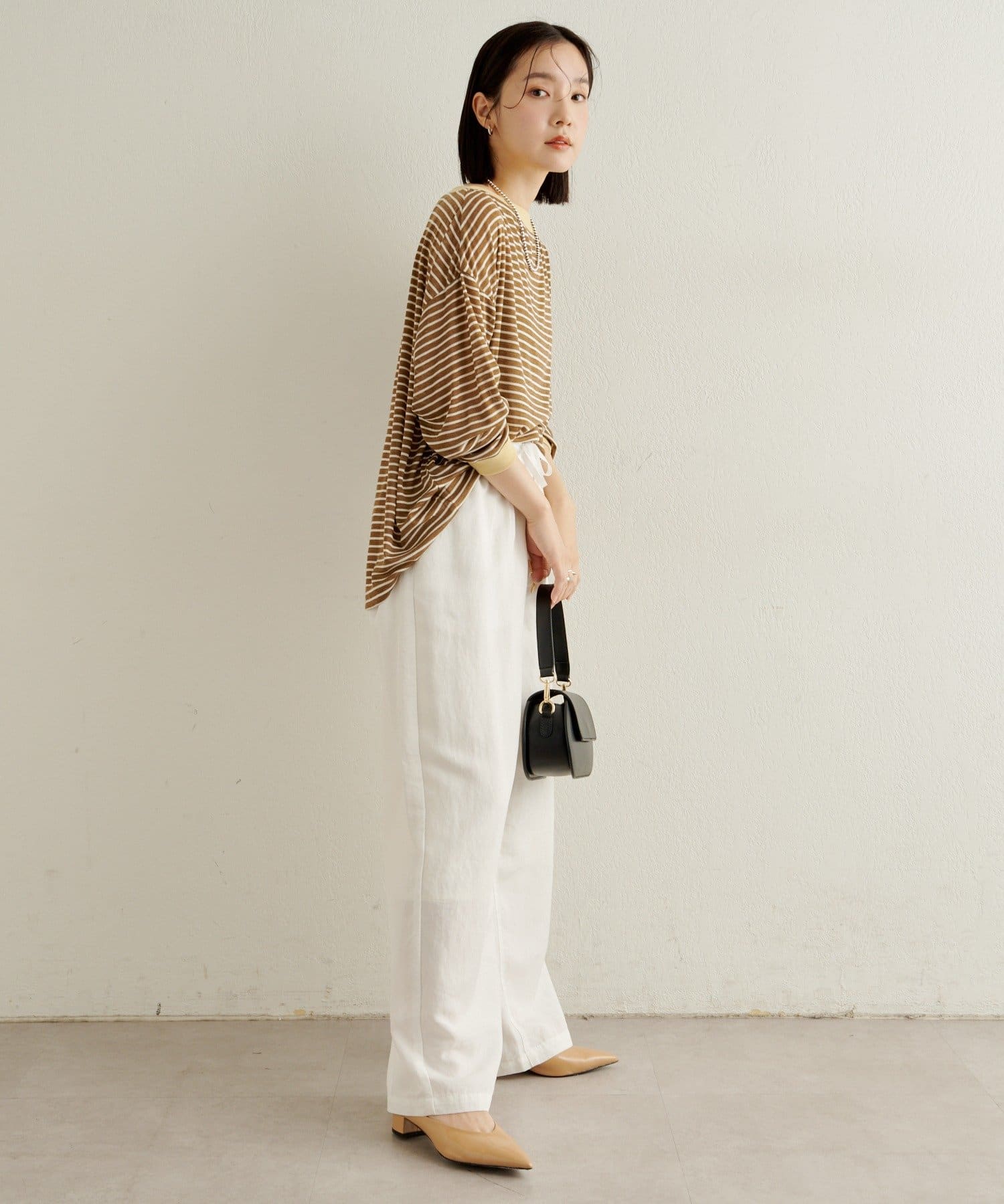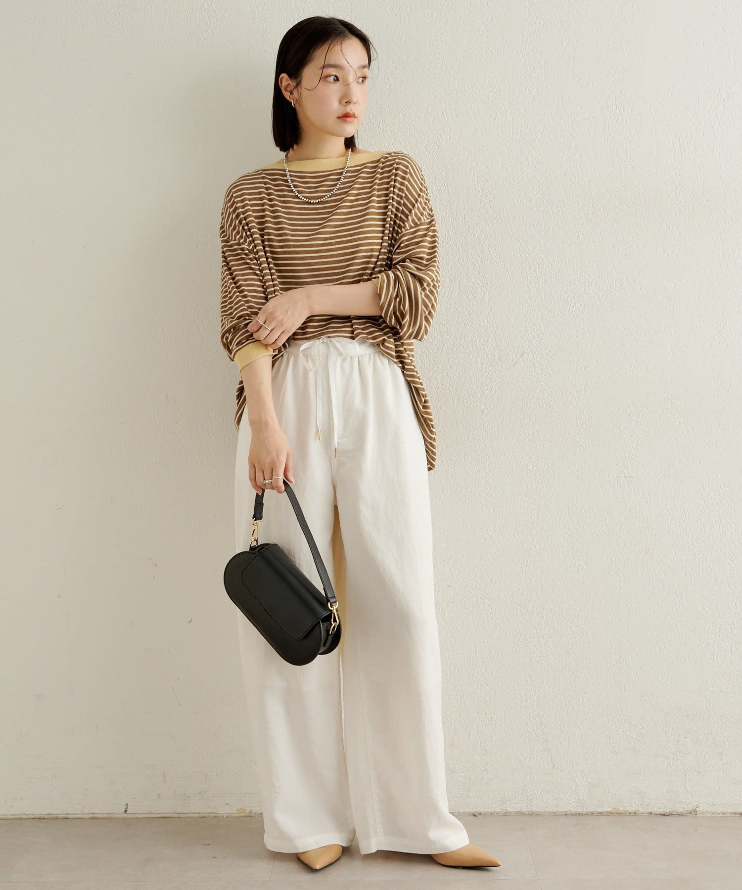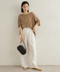 ・カジュアルながらも、オフショル仕様がデコルテラインを綺麗に見せてくれるため、女性らしく華奢見え効果も◎