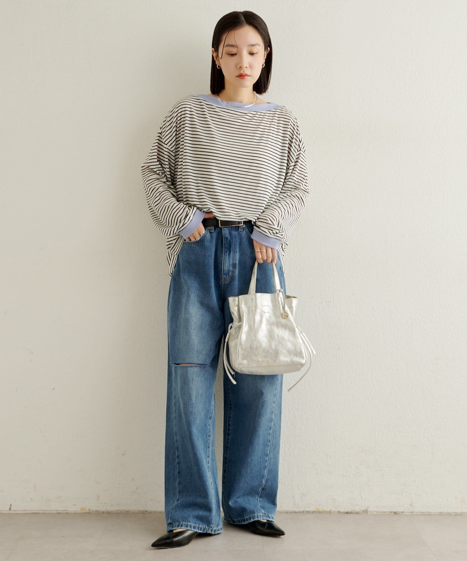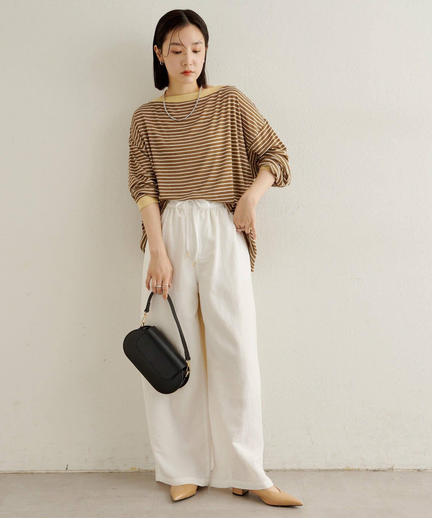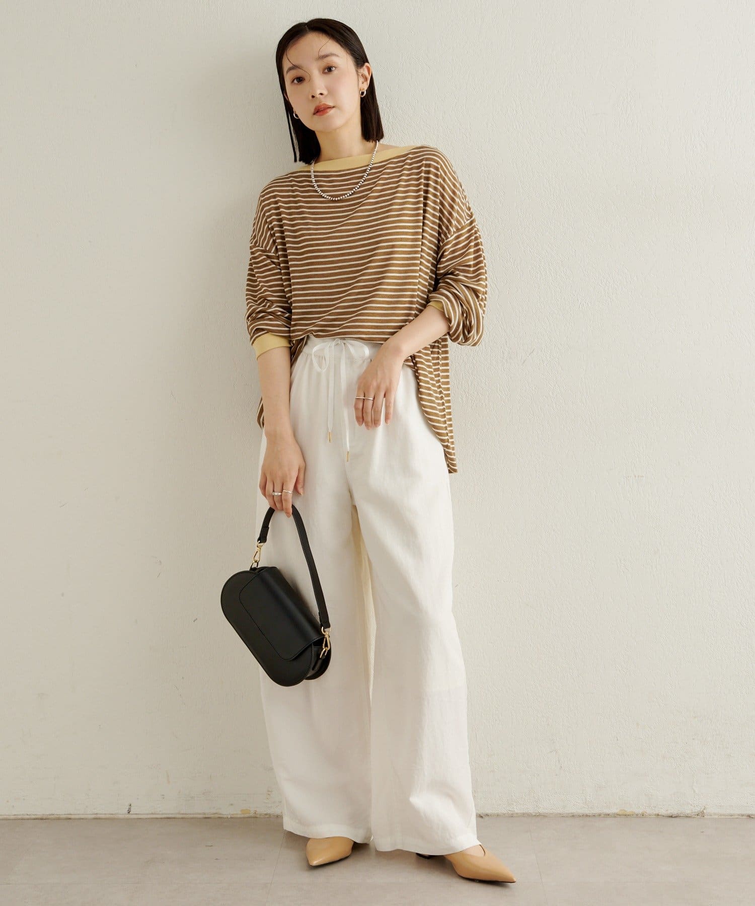 大人カジュアルな着こなしが叶うボーダーロングTシャツ
