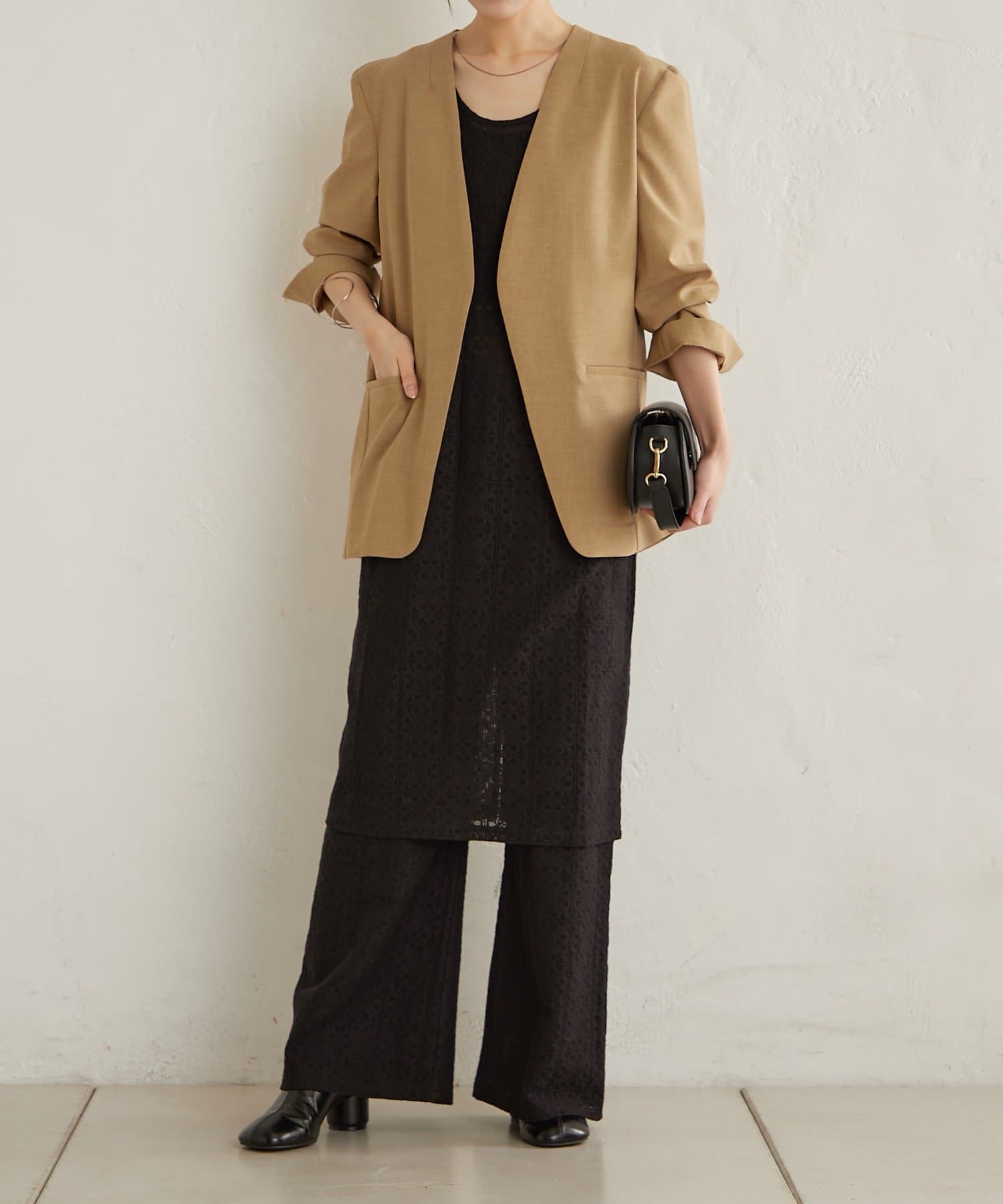 リネンライクノーカラージャケット