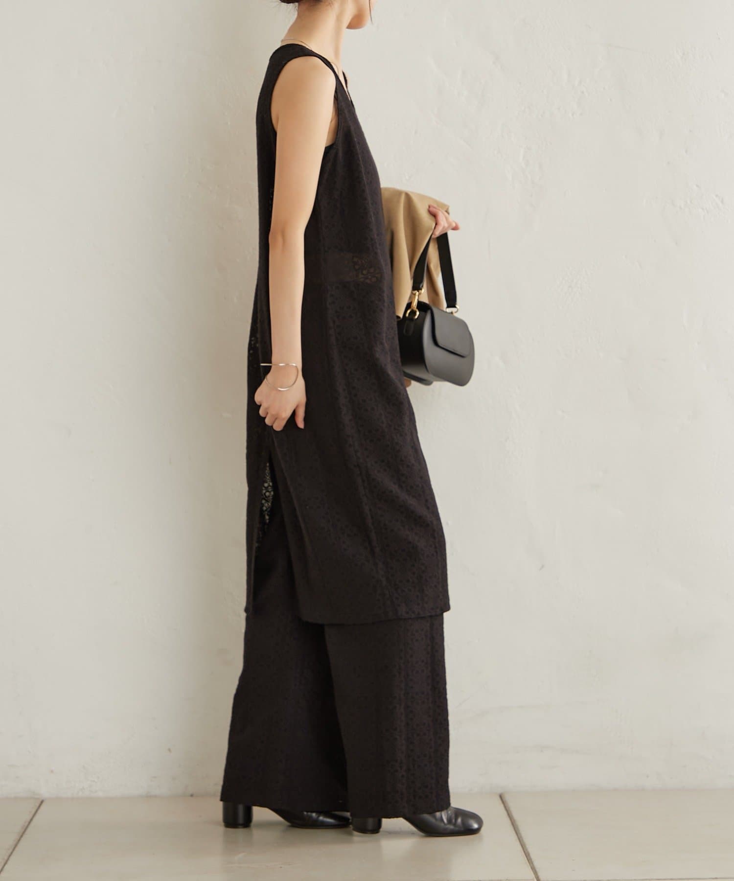 ・同素材の、レースパンツとのレイヤードスタイルもおすすめ!