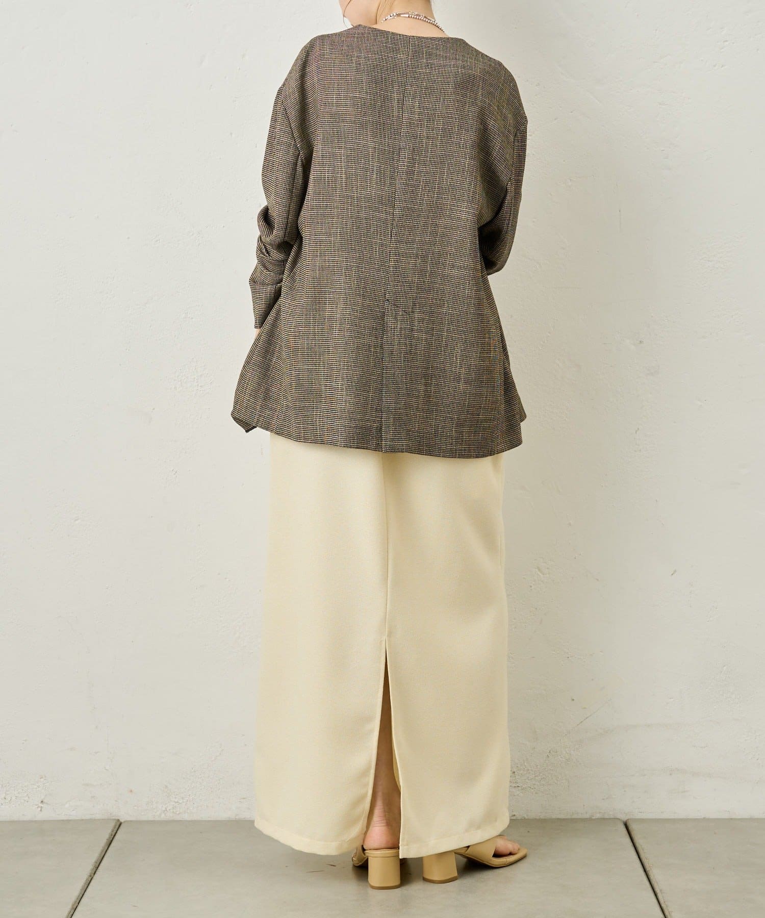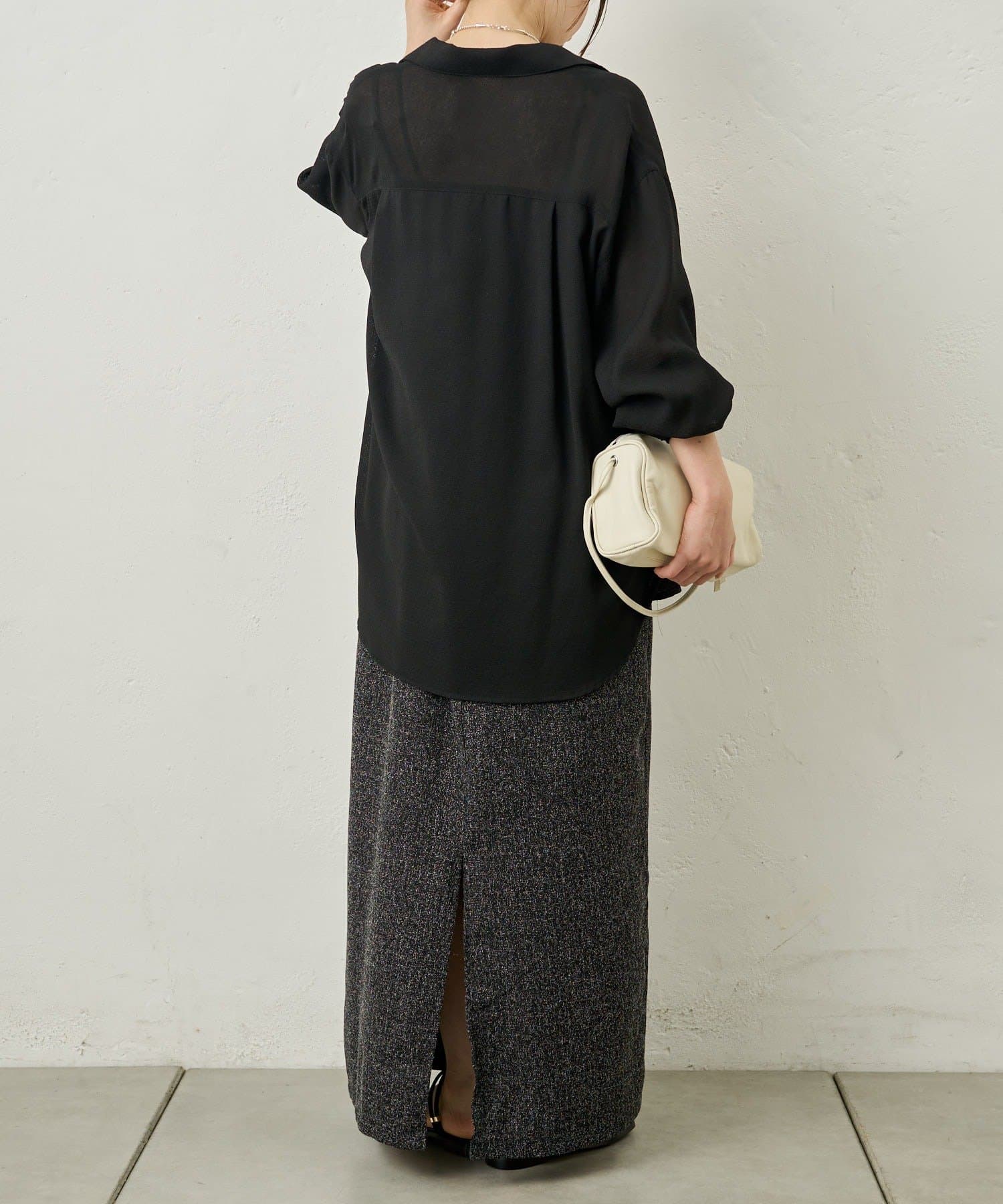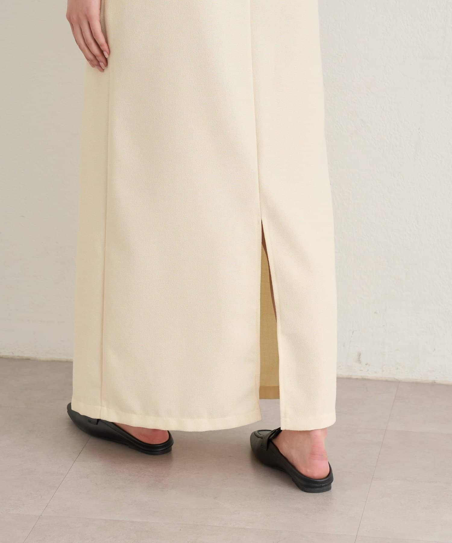 ・裾は後ろスリットで脚捌きも良く、抜け感も叶うデザイン。