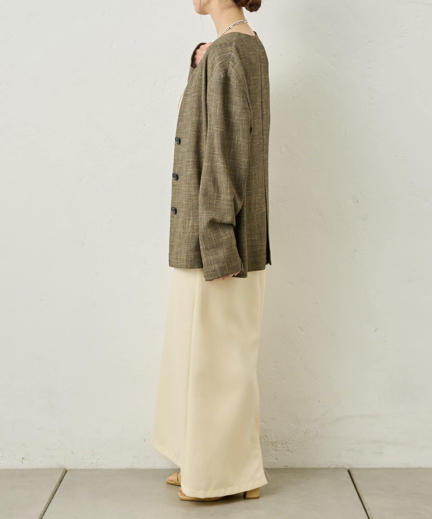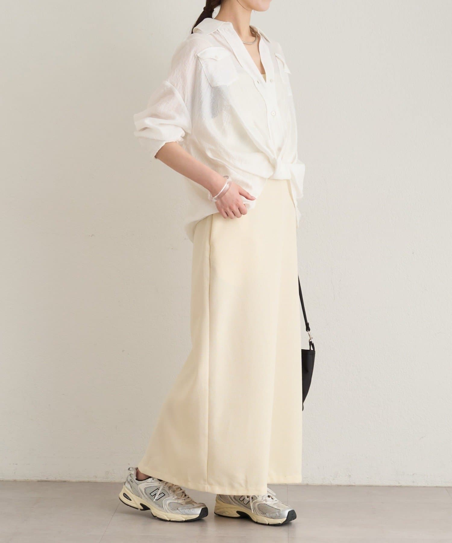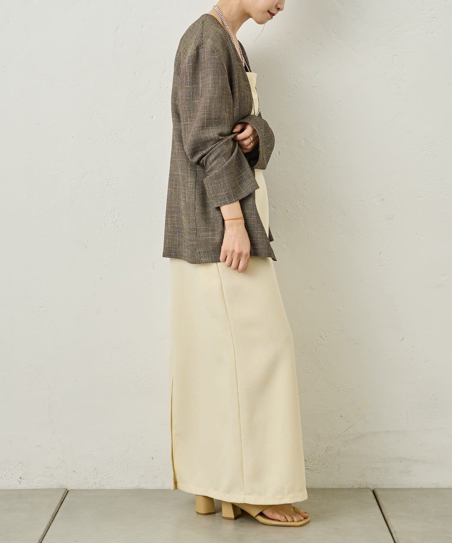 ・裾は後ろスリットで脚捌きも良く、抜け感も叶うデザイン。