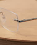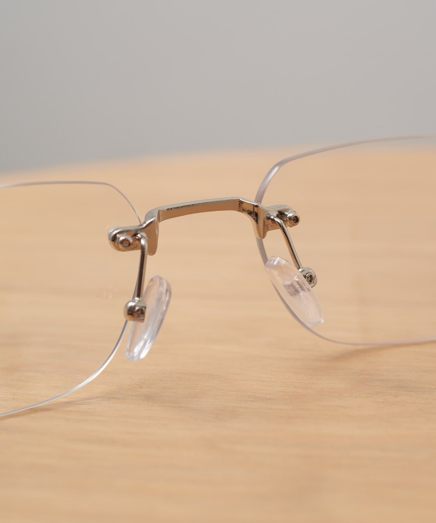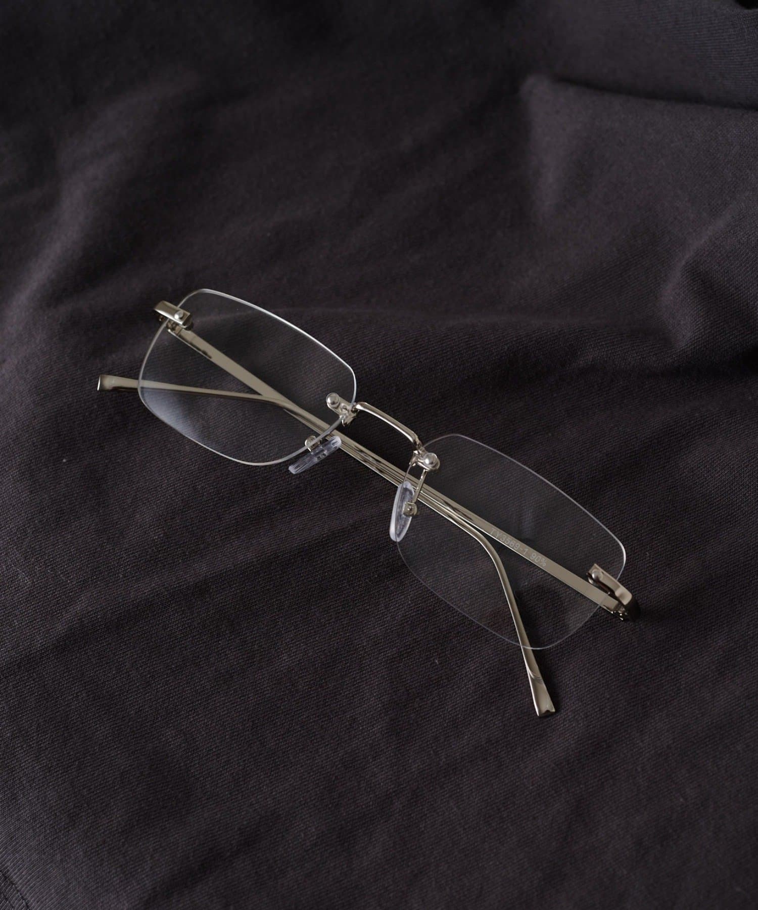 ・フレームがないスタイリッシュな印象のスクエア型クリアメガネ