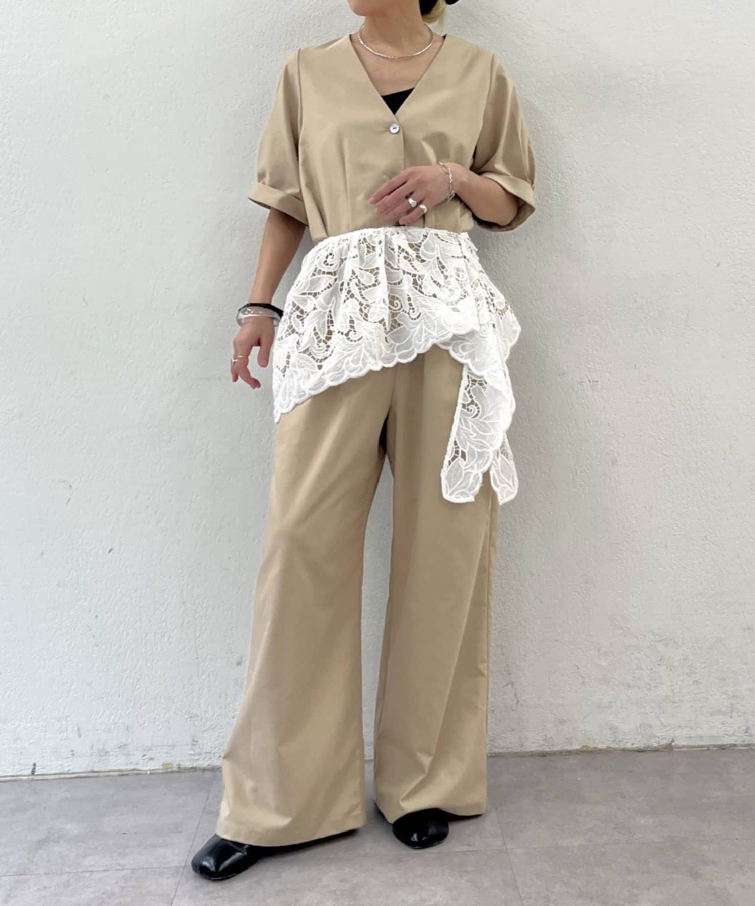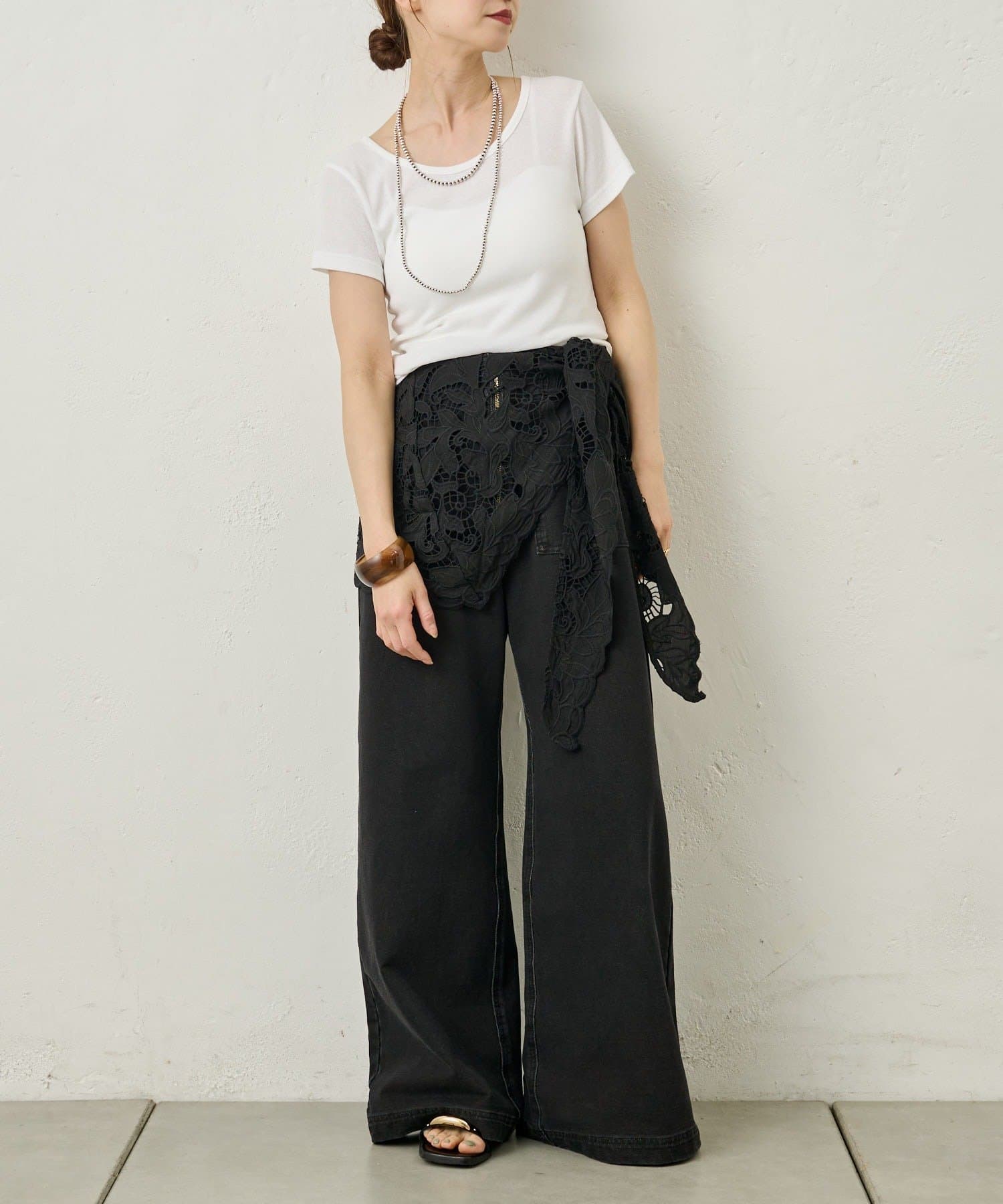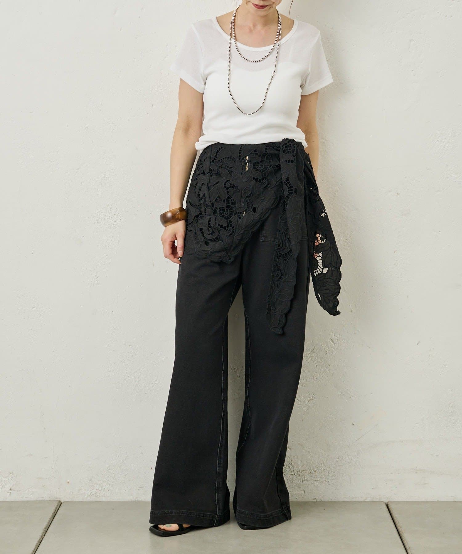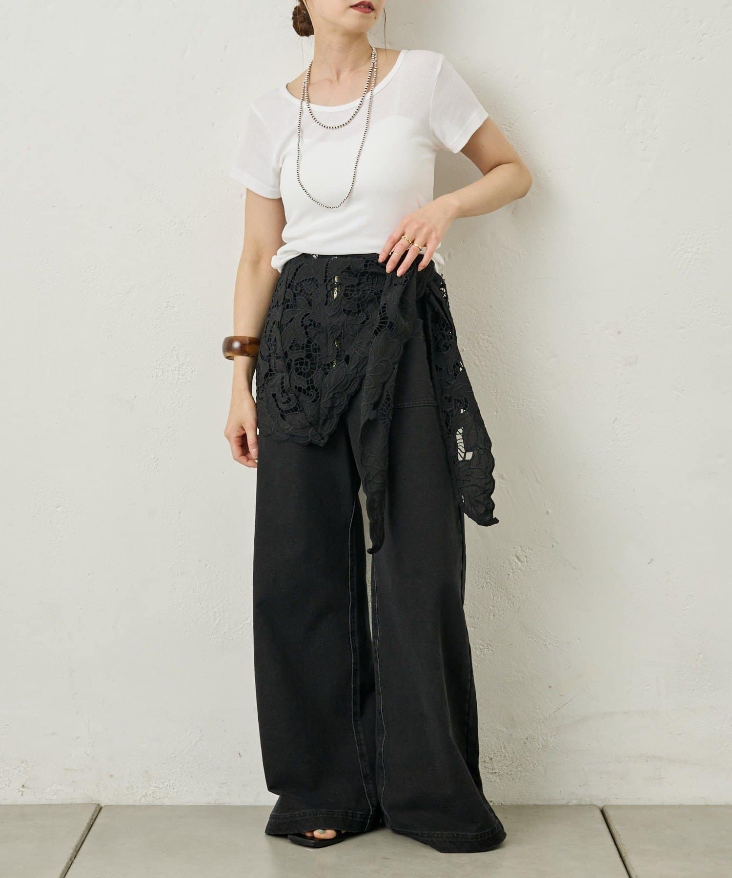 ・腰に巻いたり、肩にかけてつけ襟のようにアレンジしたり、マルチに活躍します。