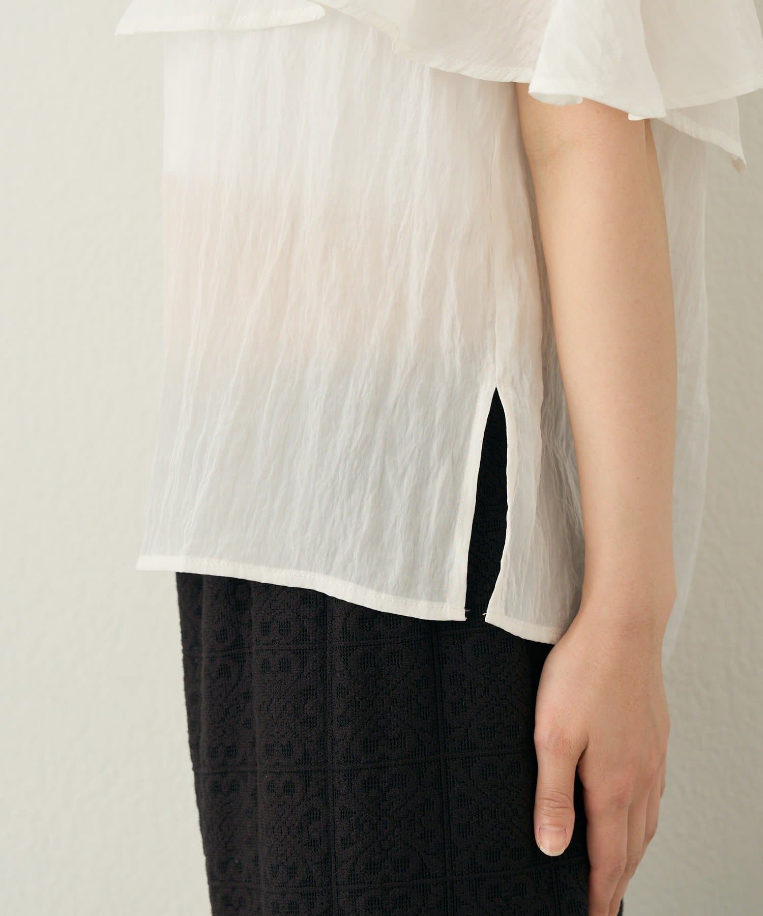 ・さらりとしていて落ち感がありきれいめな雰囲気。独特のしわがある生地なので、しわにも気になりにくくお手入れが楽ちん◎