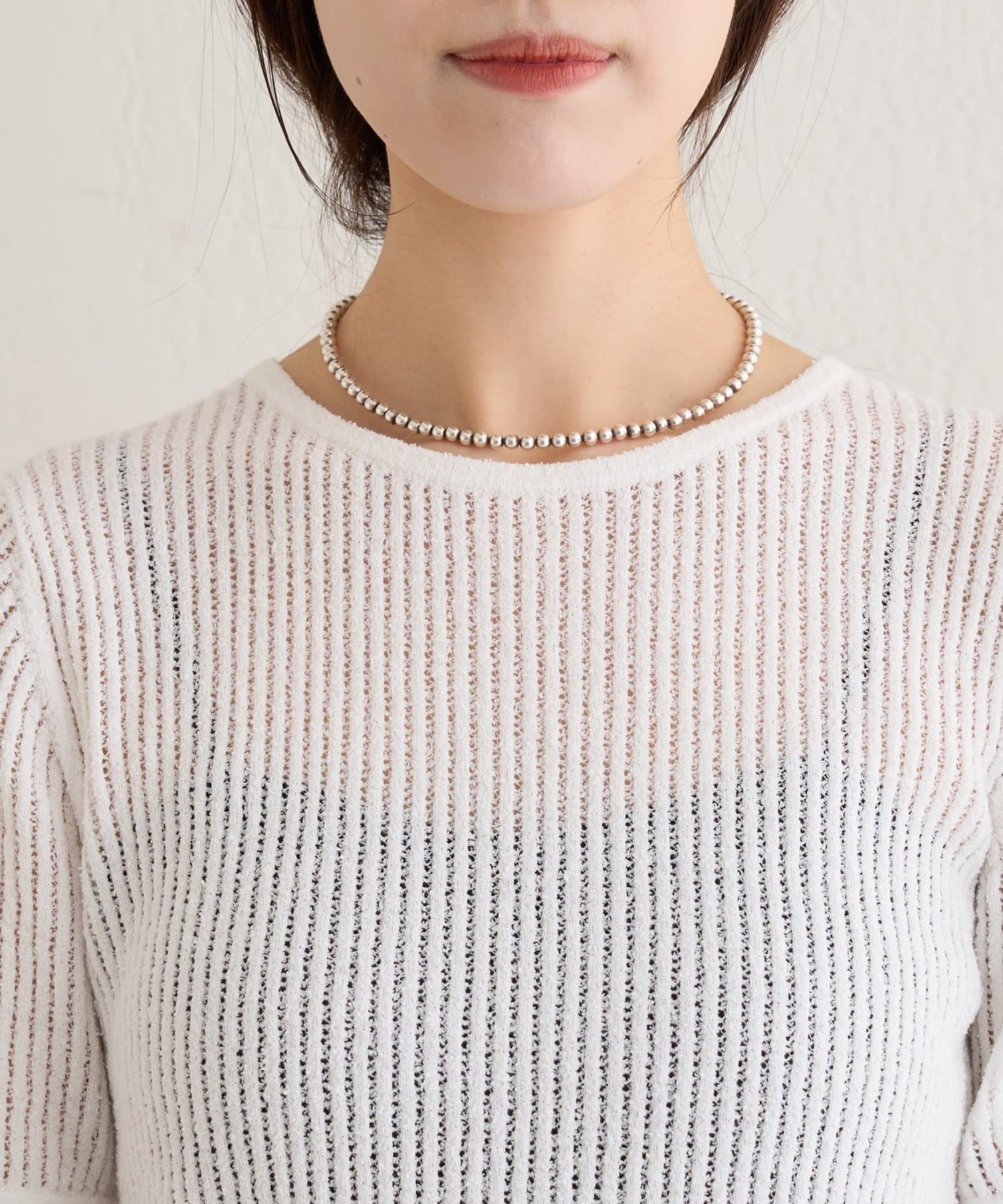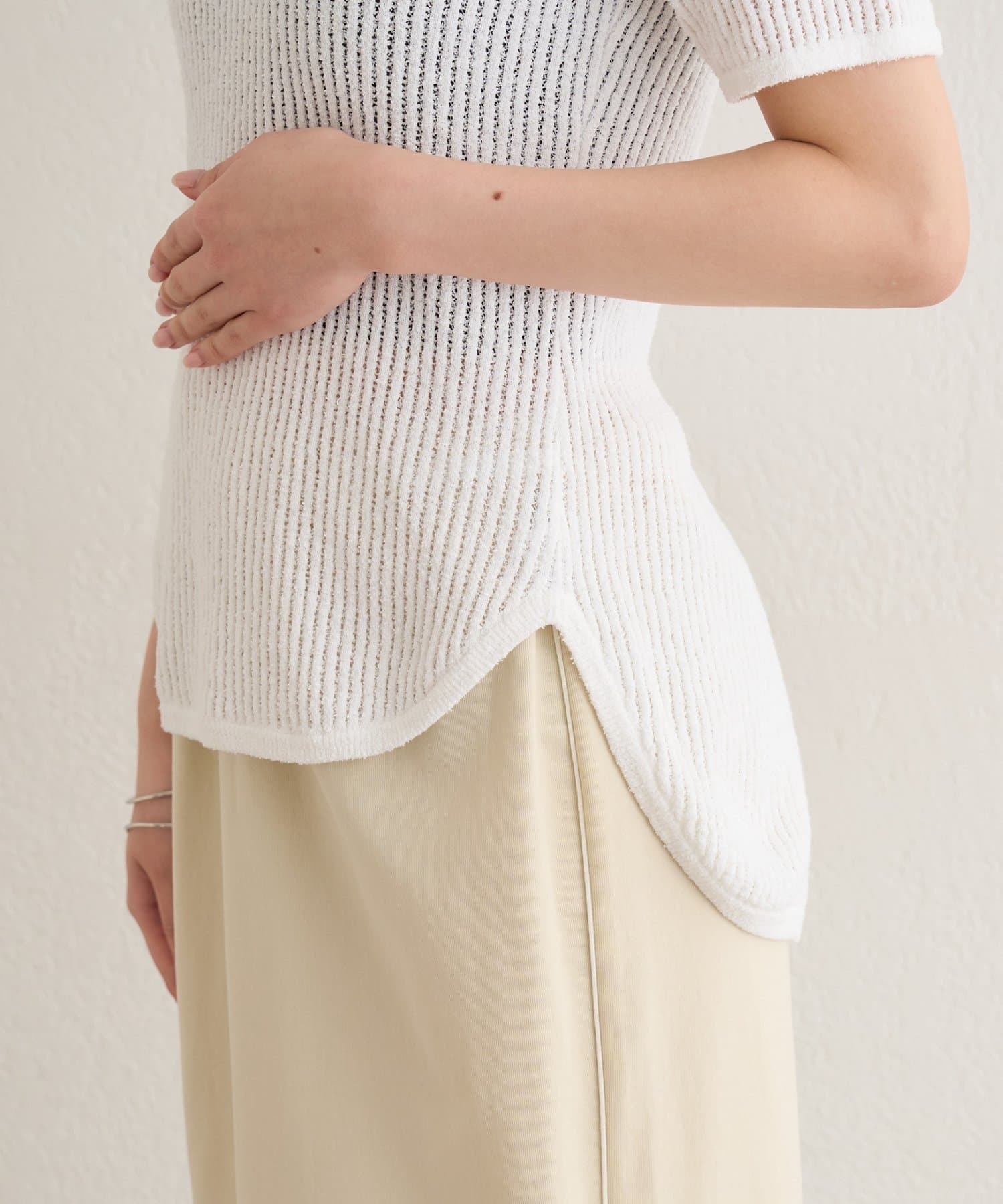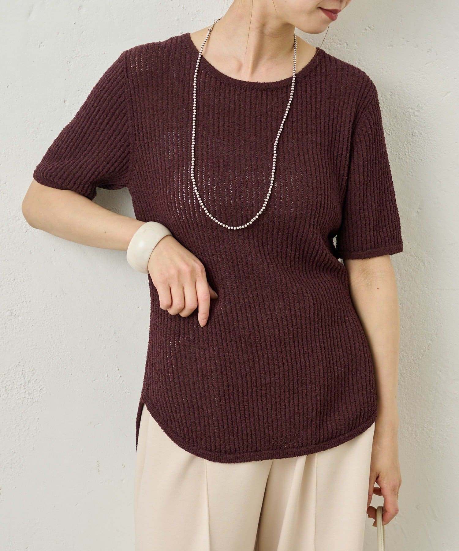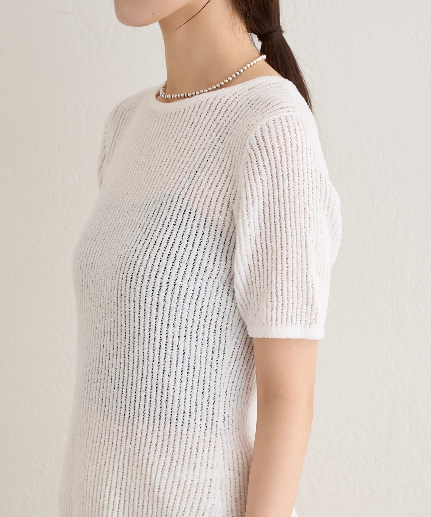半袖シアーニットリブプルオーバー
