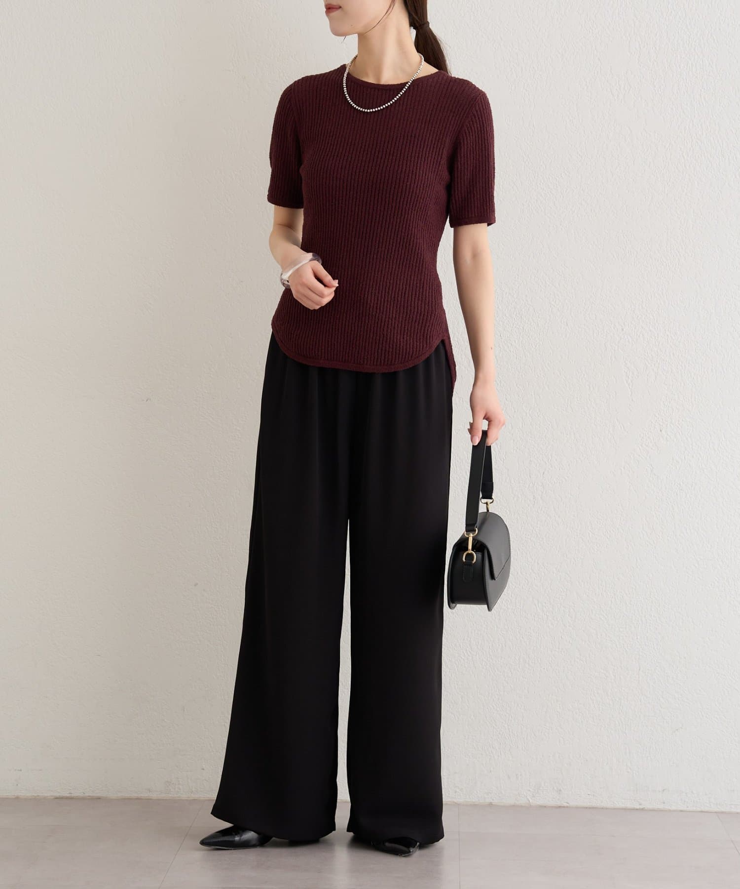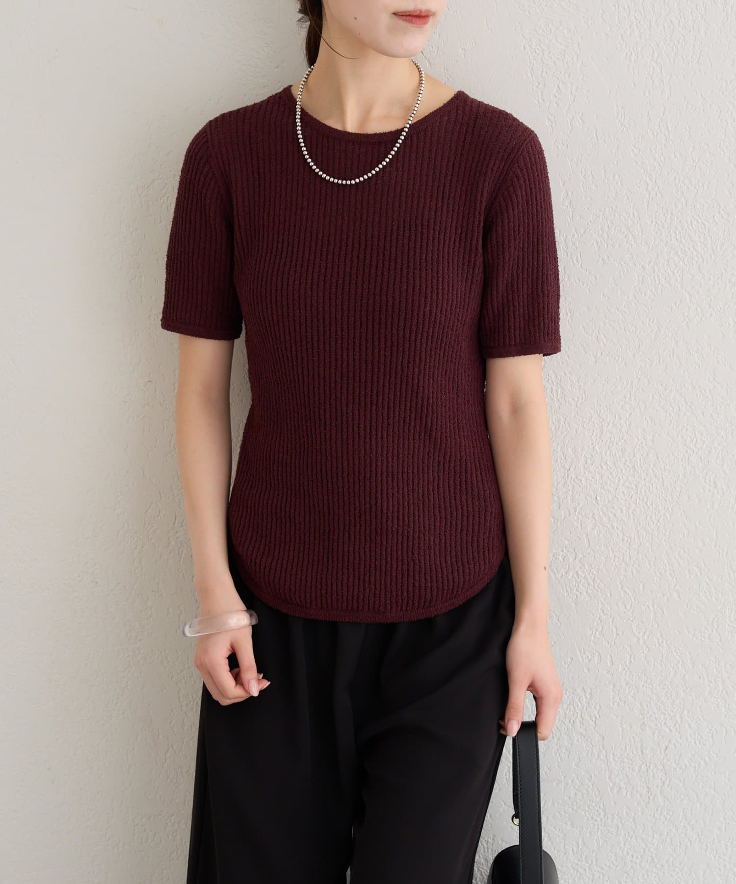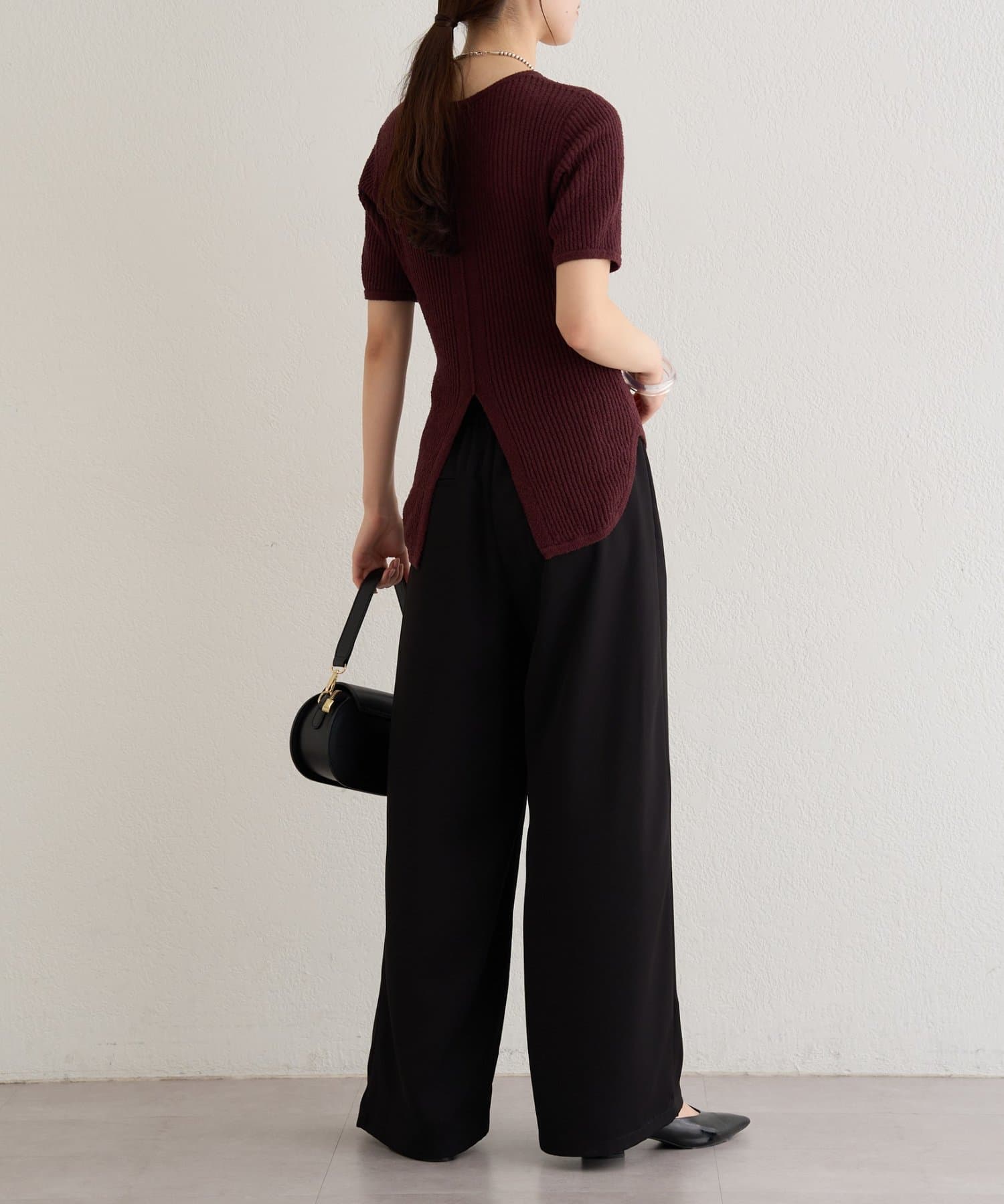 ・ややコンパクトなサイズ感とリブ素材が華奢見えするデザイン。