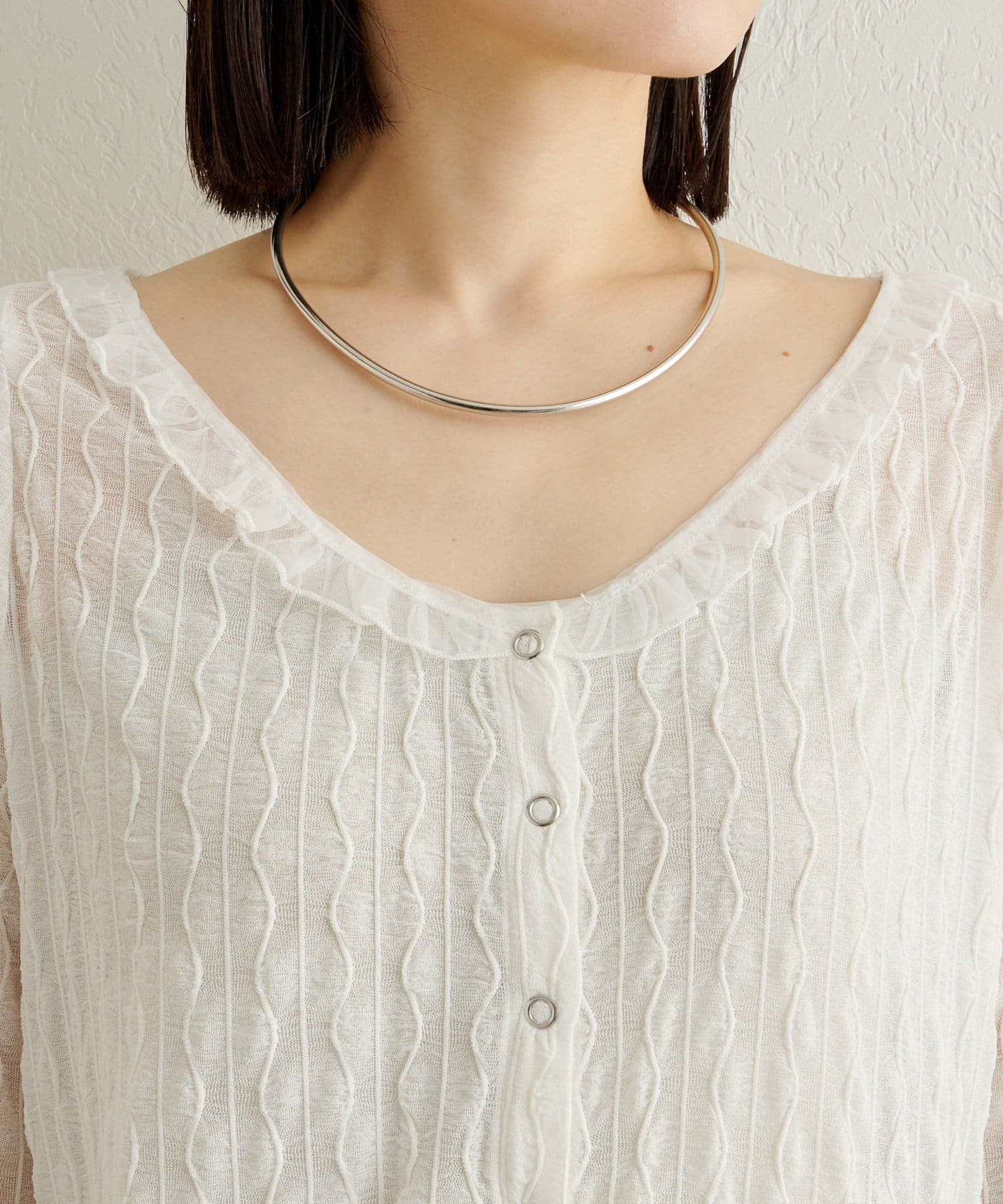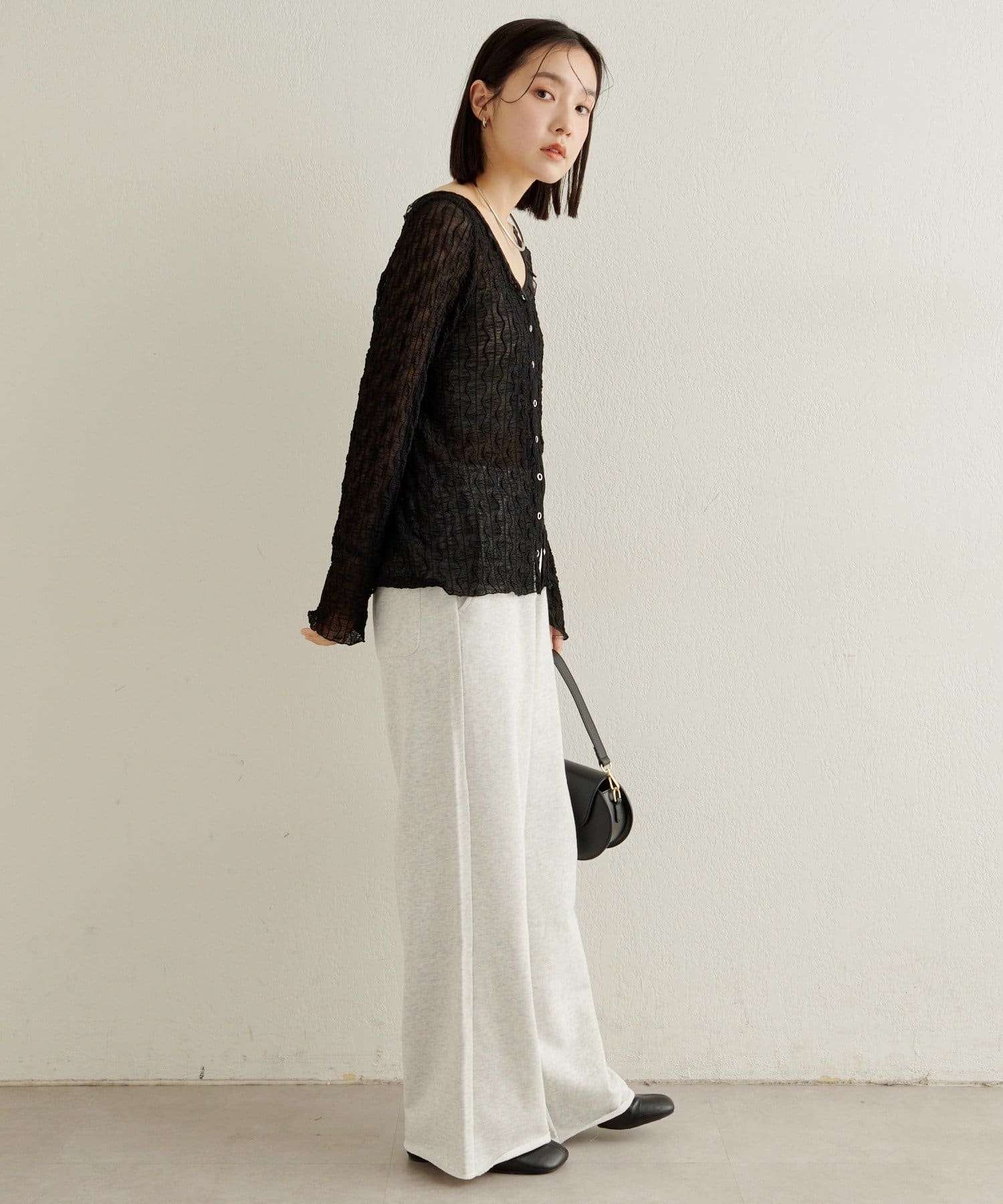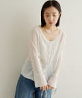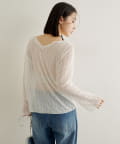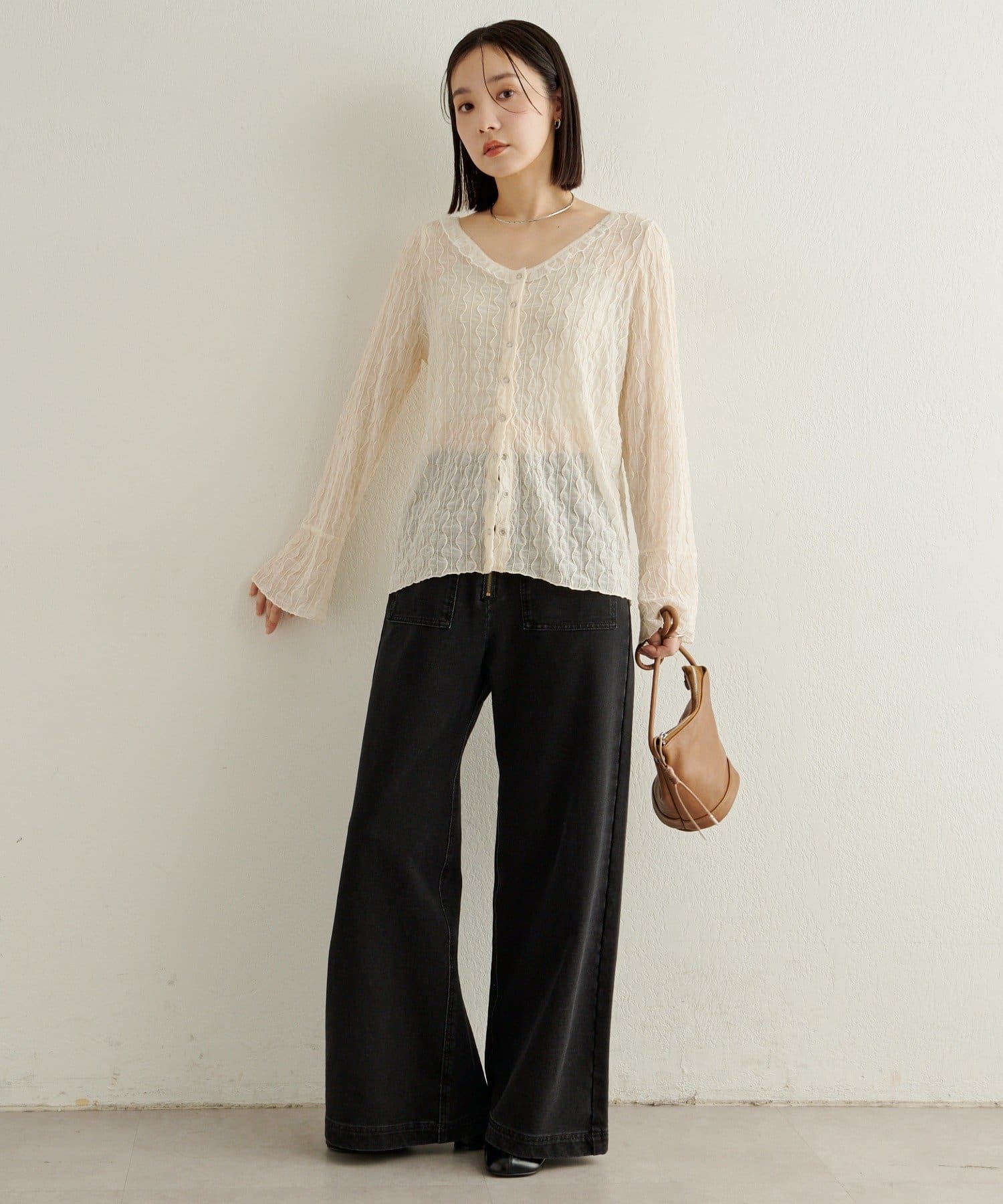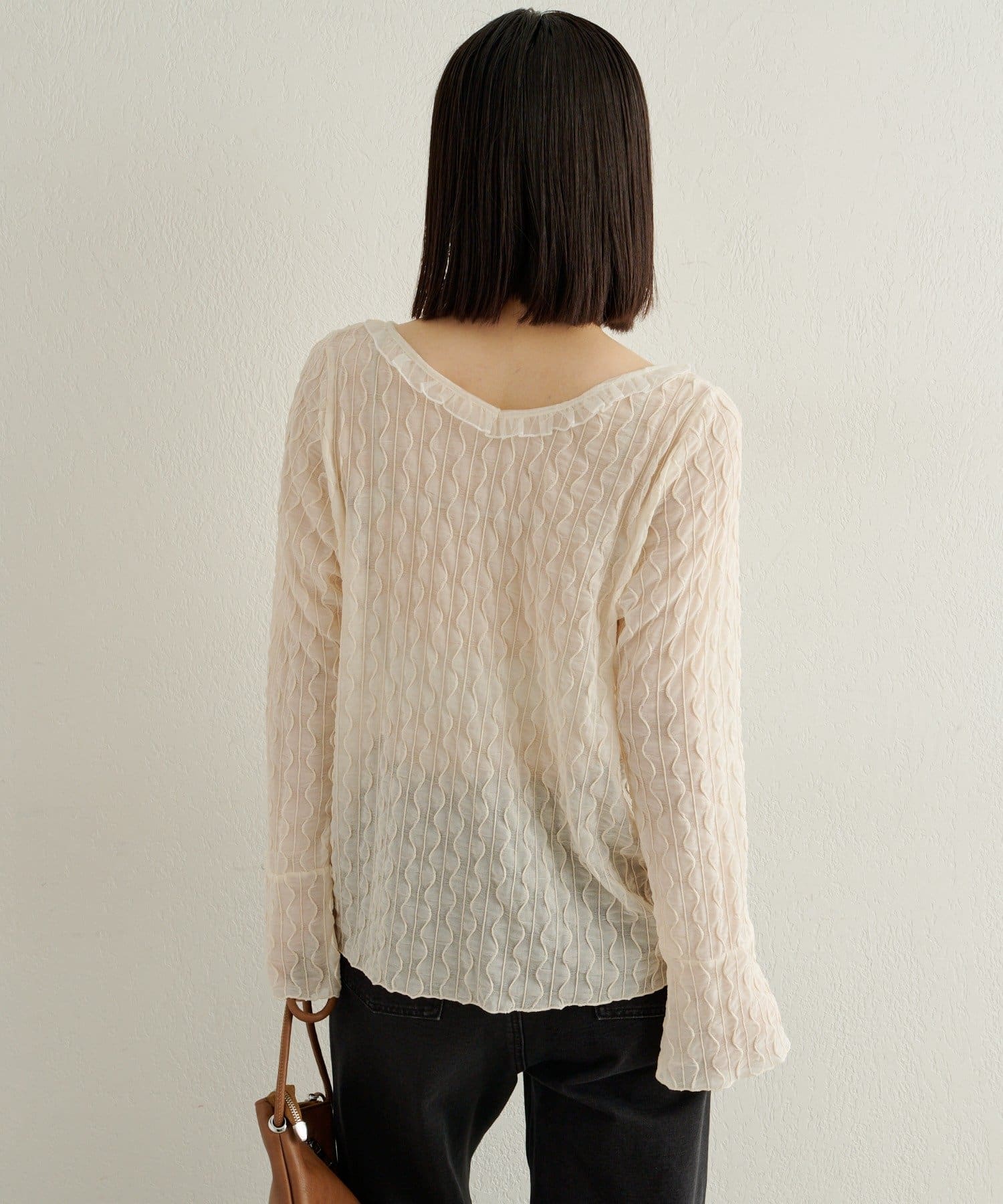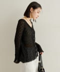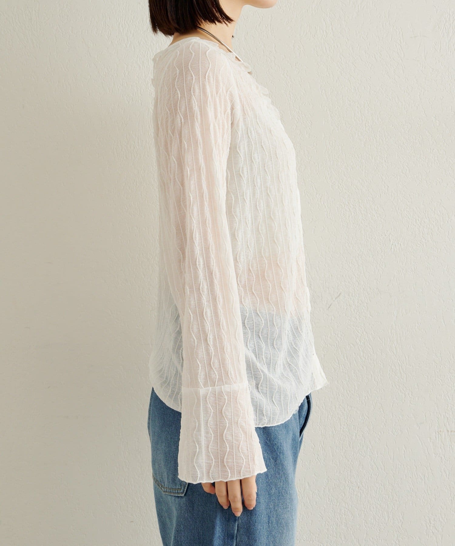 ・ウェーブの独特な柄とシアー感、フリルデザインが、スタイリングにフェミニンな印象をプラスしてくれるカーディガン
