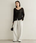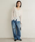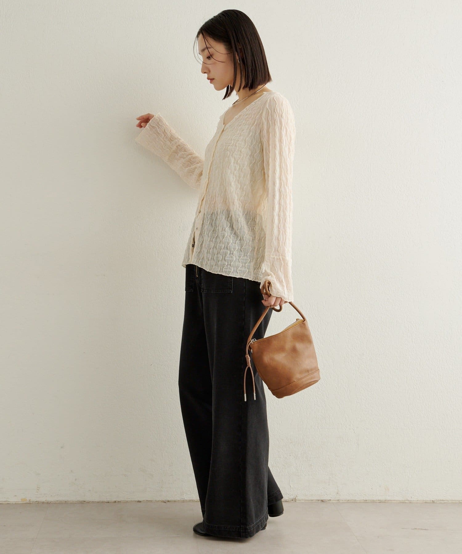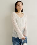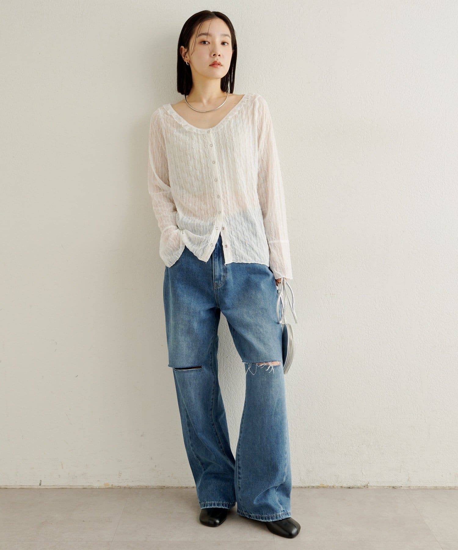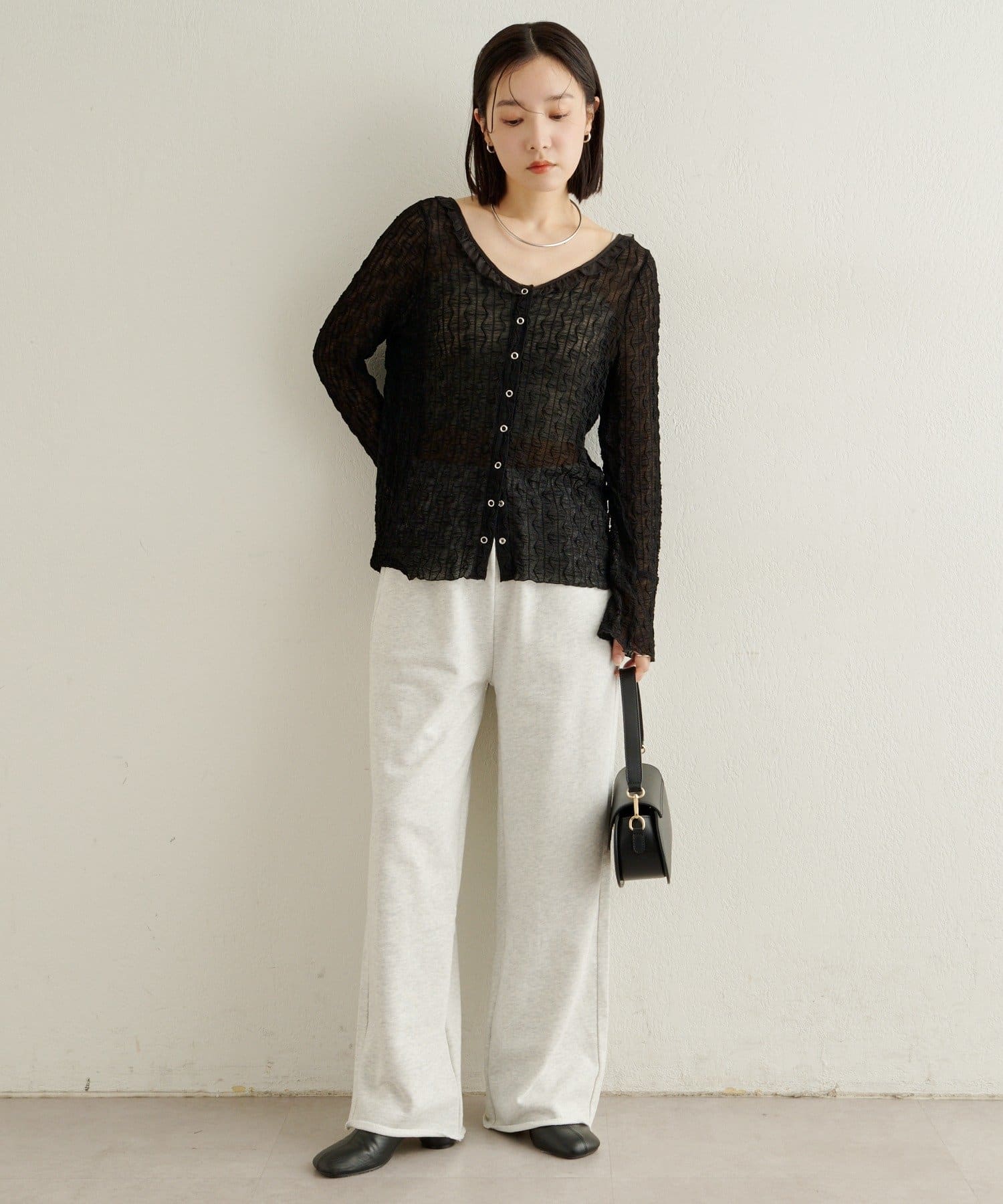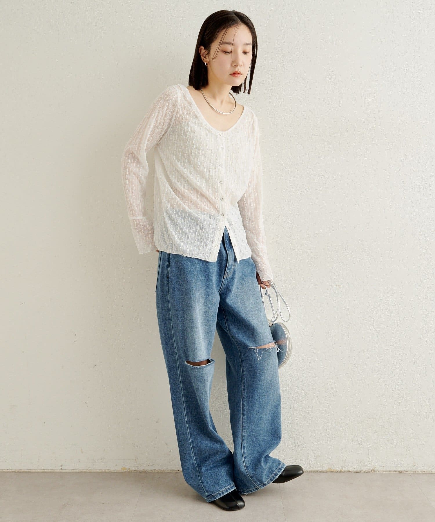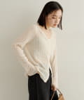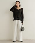 ・ウェーブの独特な柄とシアー感、フリルデザインが、スタイリングにフェミニンな印象をプラスしてくれるカーディガン