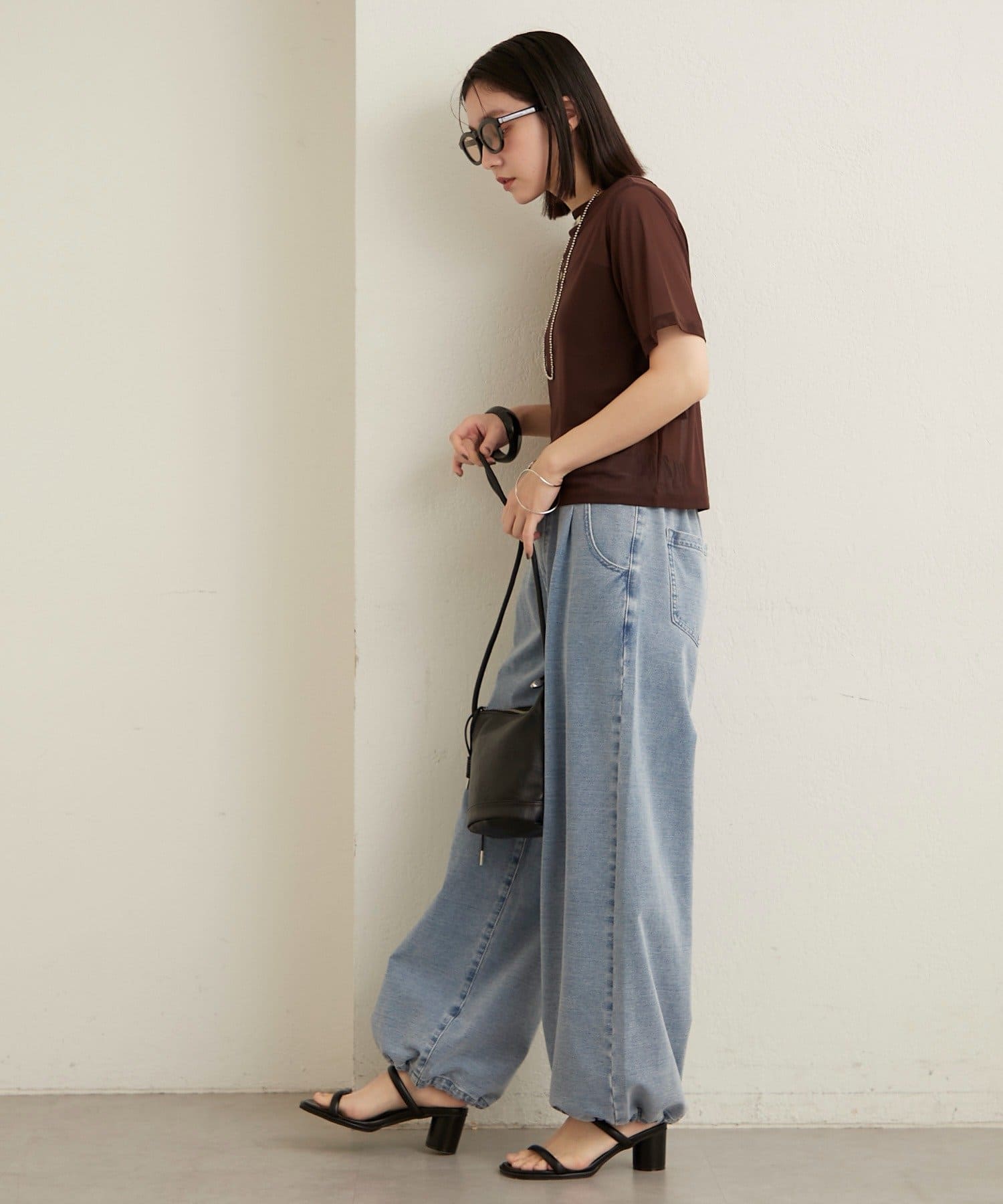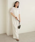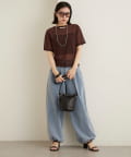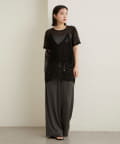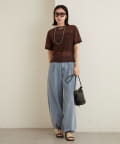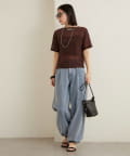 ・ベーシックなTシャツのシルエットなので、スラックスはもちろんフレアスカートなどのボリュームのあるボトムスにも相性良く着ていただけます!