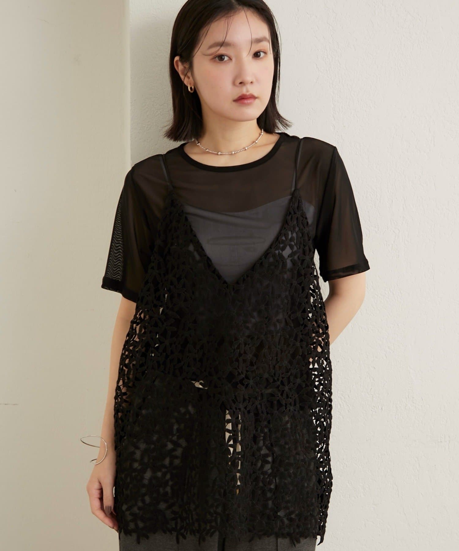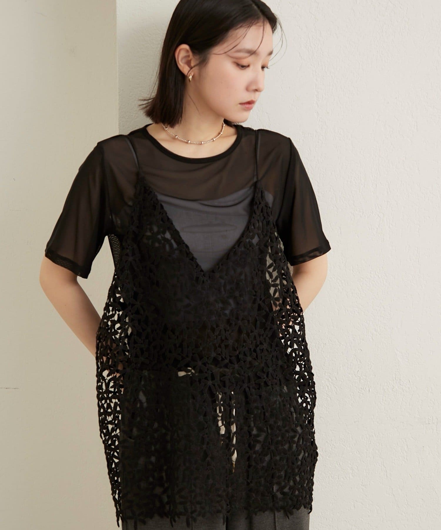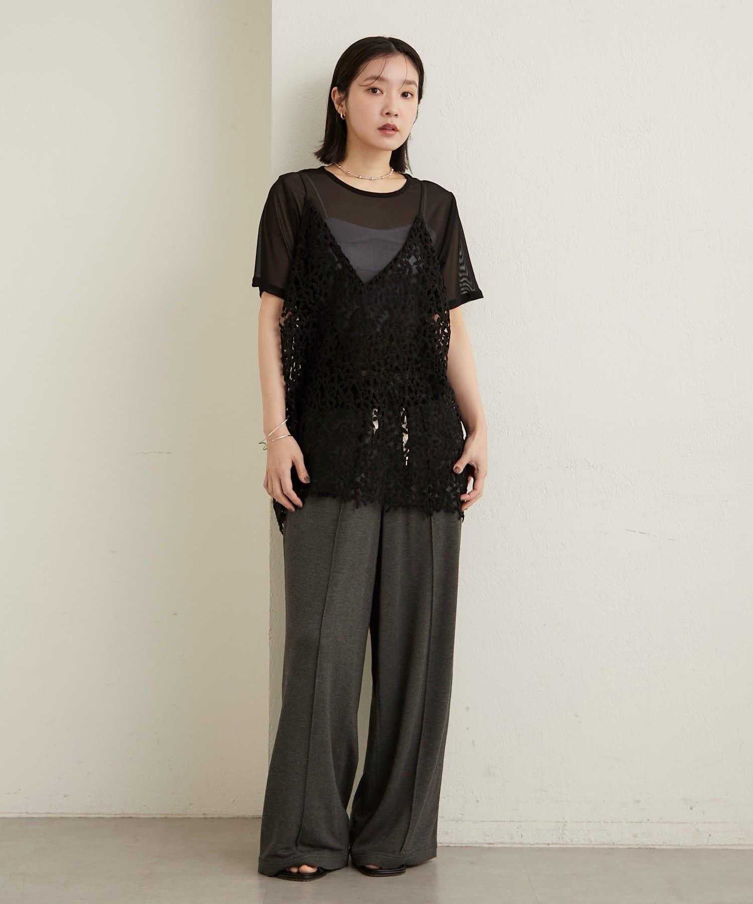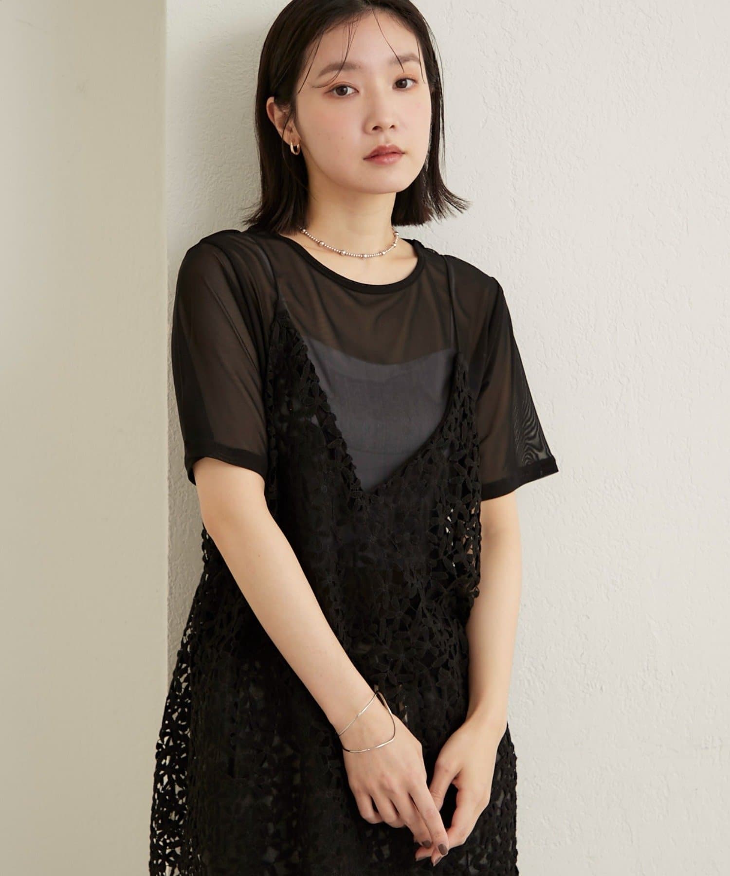 ・チュール素材が程よい透け具合で、抜け感のある着こなしが叶います◎
